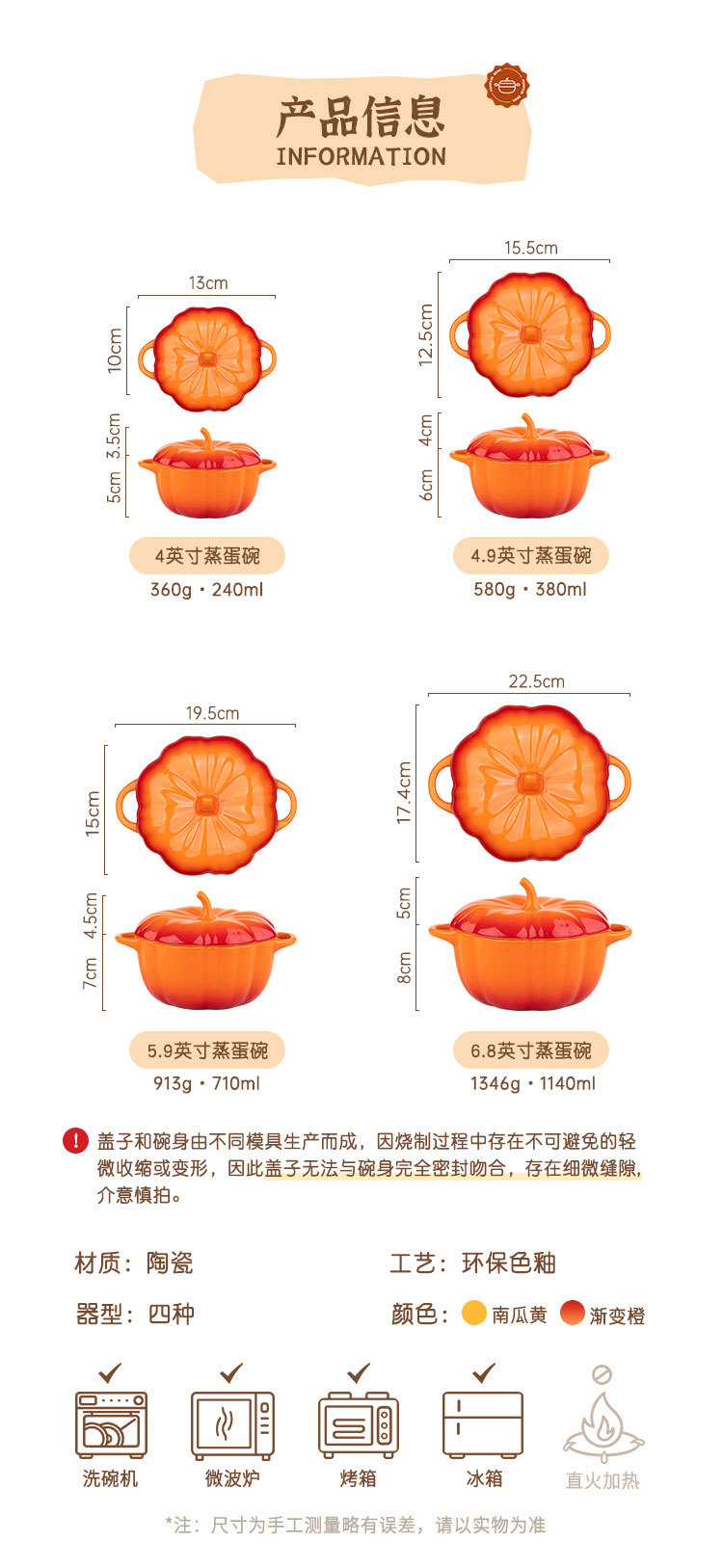 pumpkin yellow-4.9 inch · slow cooker