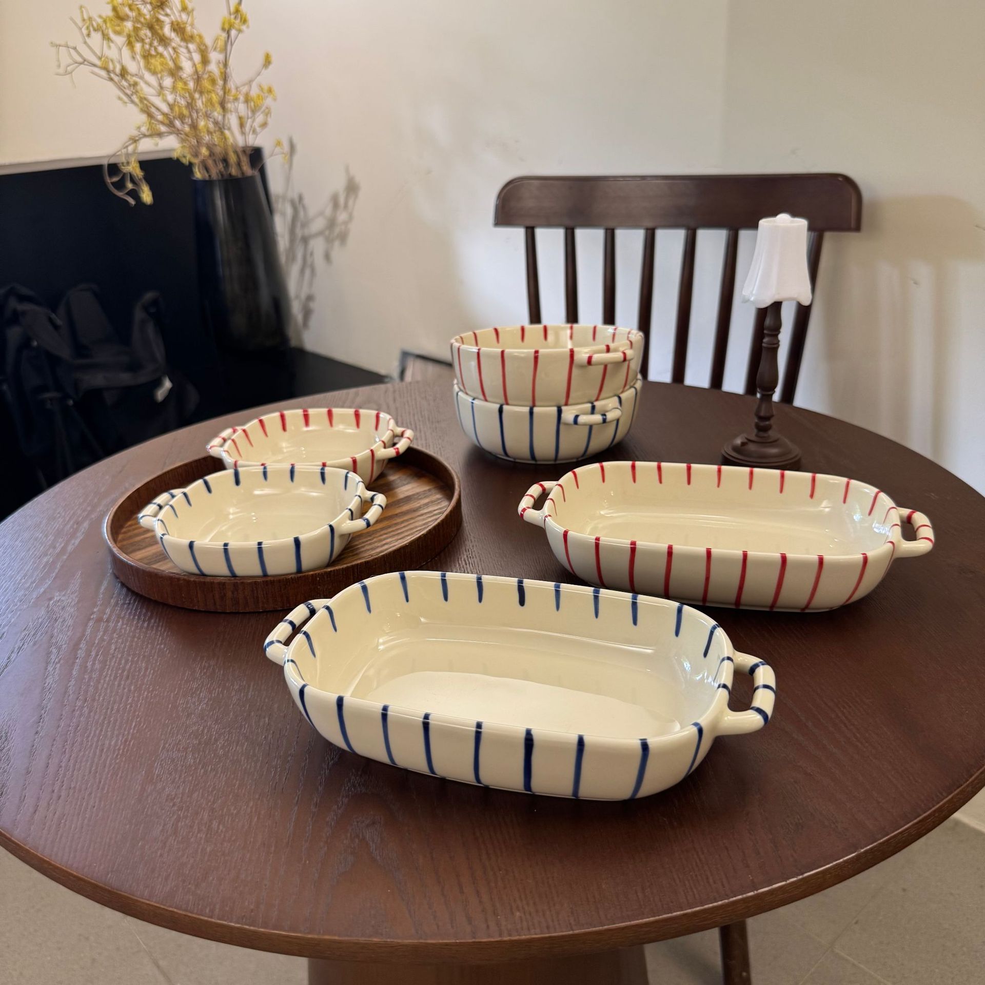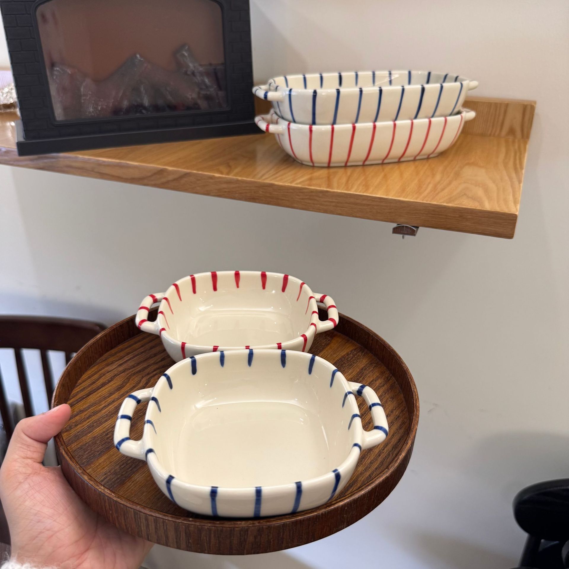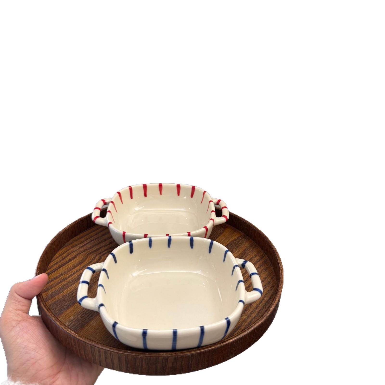 m66-8-inch round binaural baking bowl-striped red