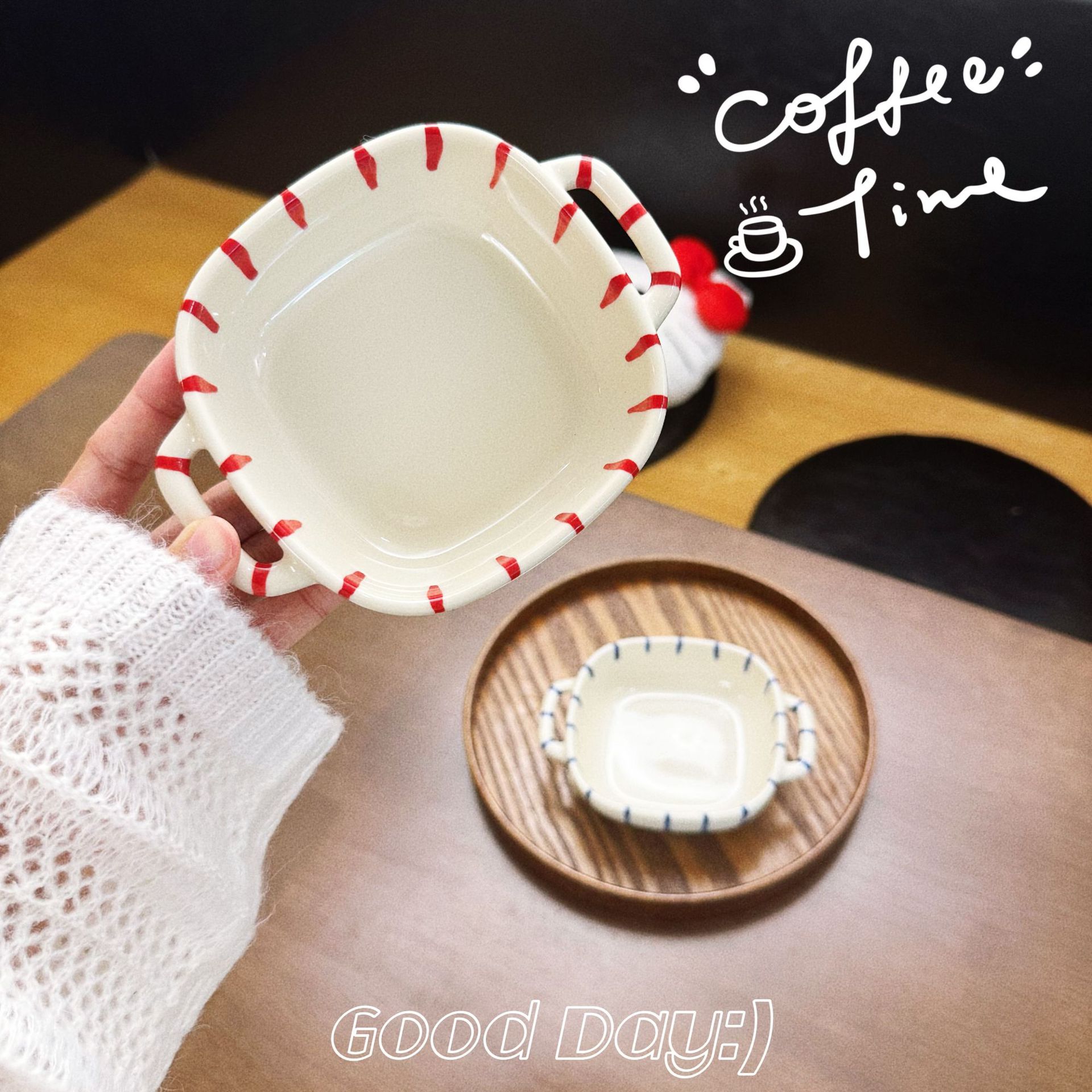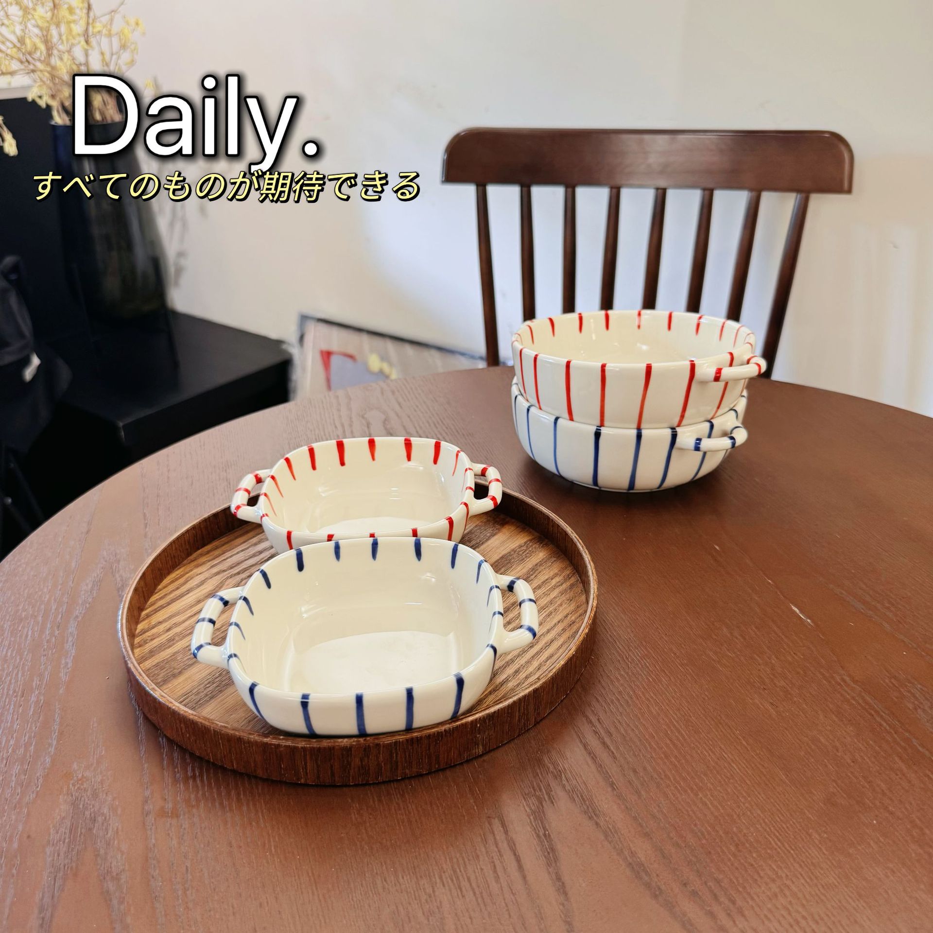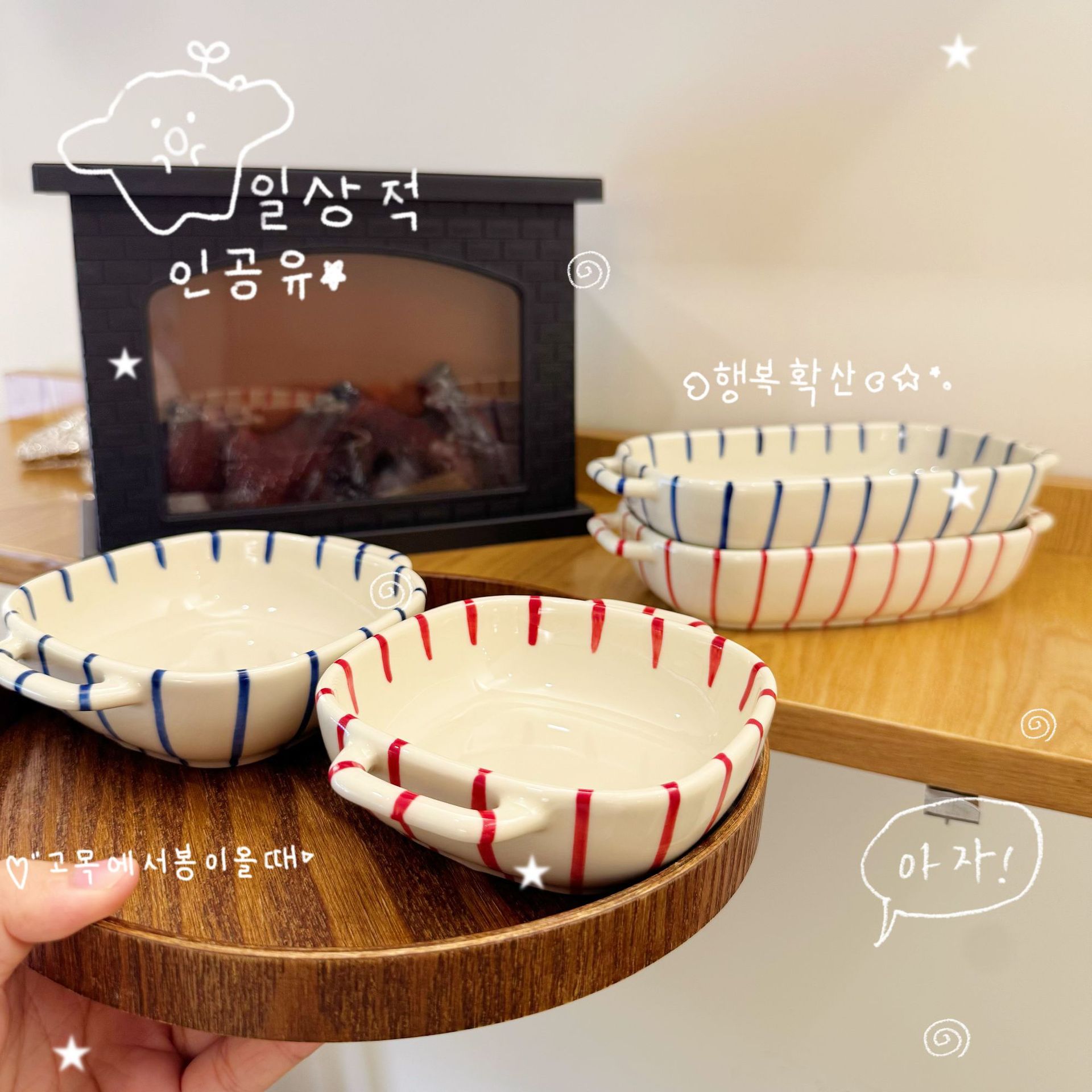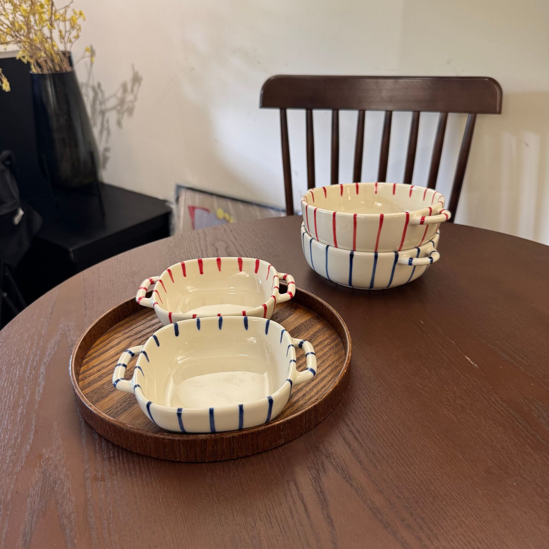 m66-8-inch round binaural baking bowl-striped red