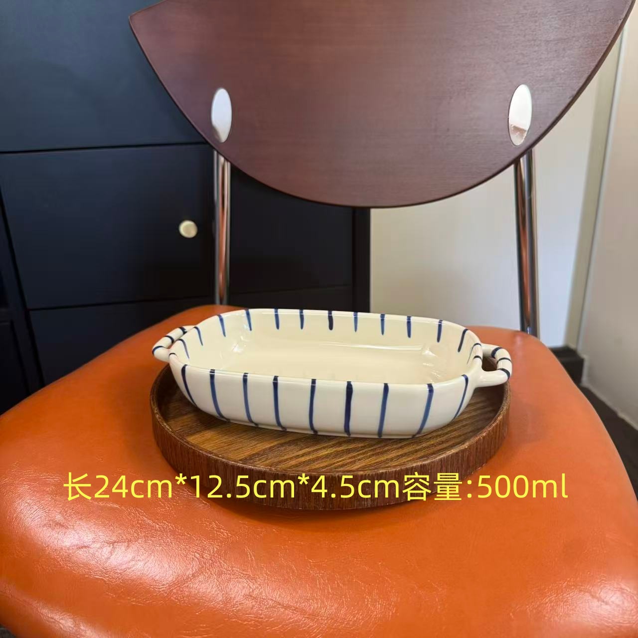 m67-9.5-inch double-ear rectangular baking bowl-striped blue