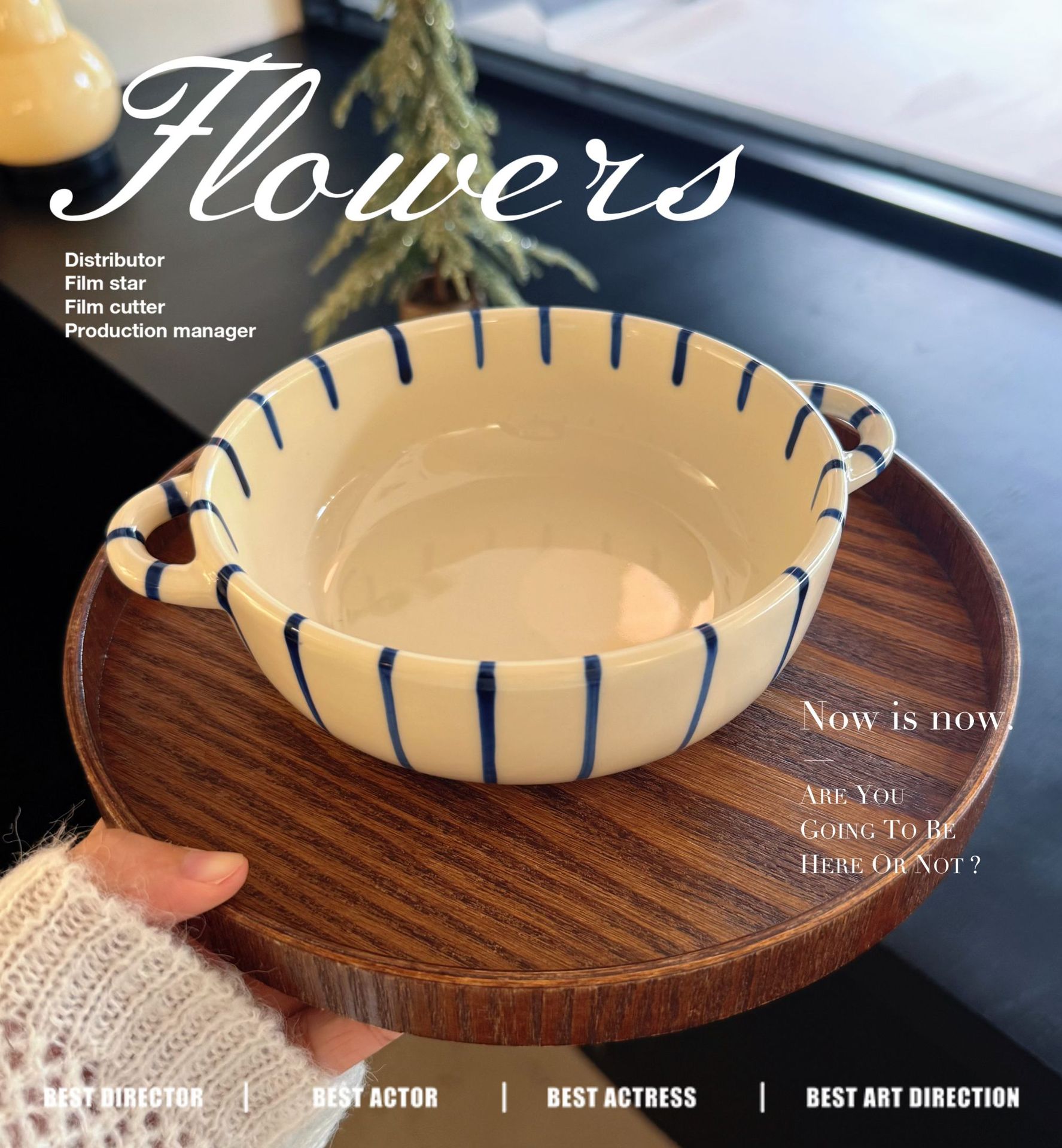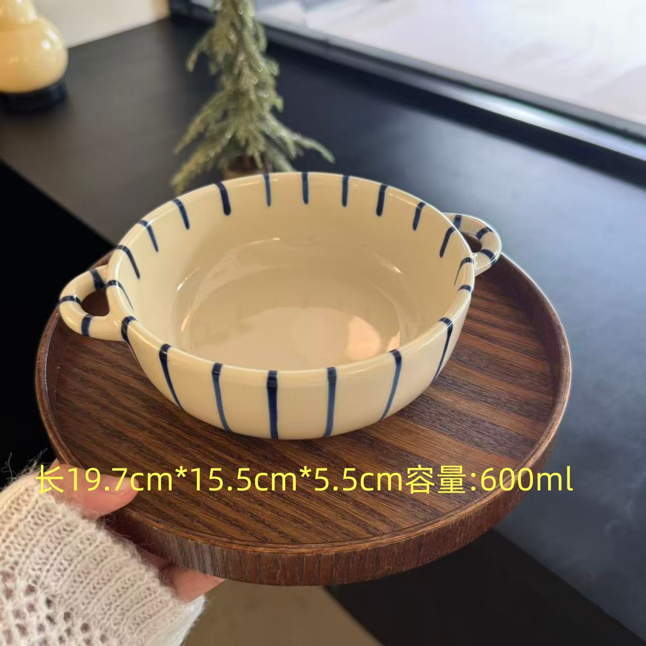m66-8-inch round binaural baking bowl-striped blue