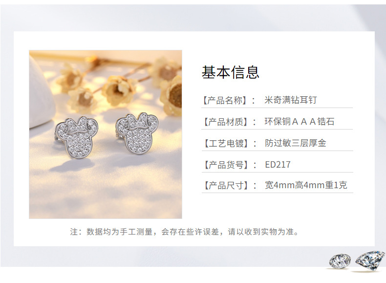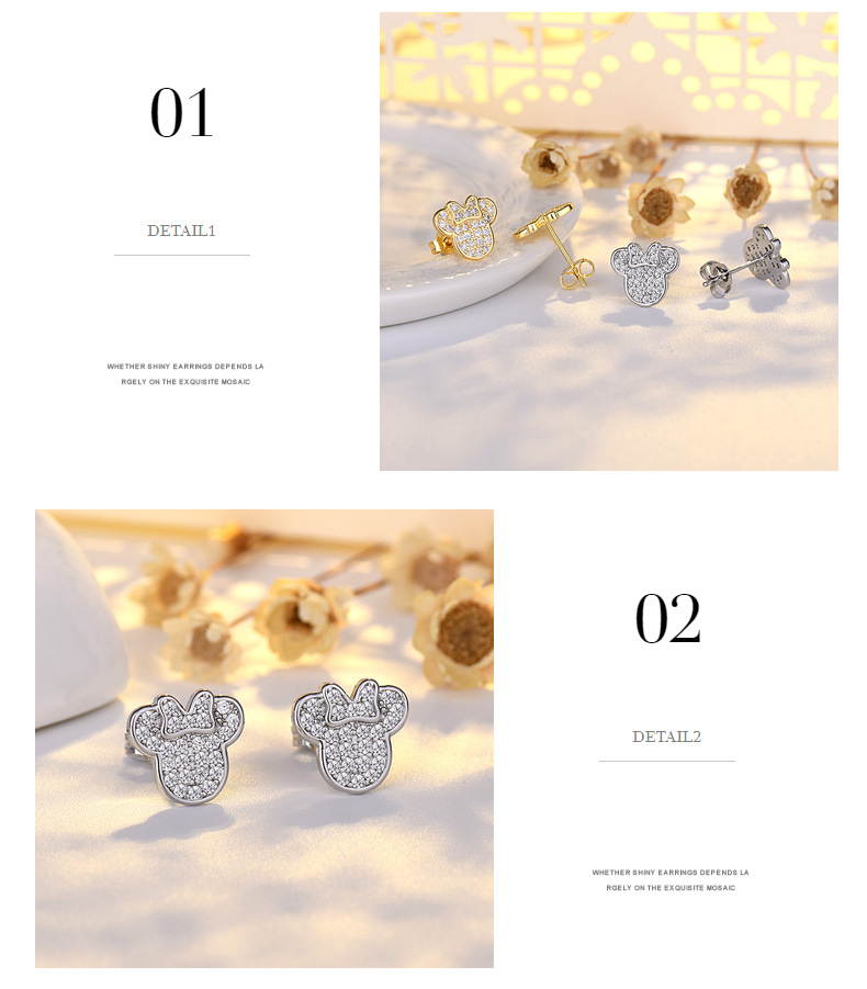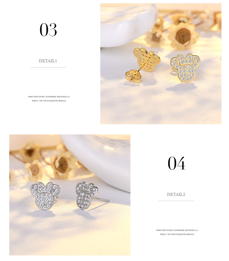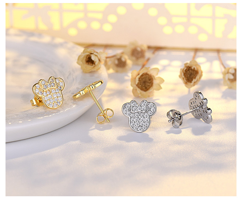 mickey stud earrings (white gold color)