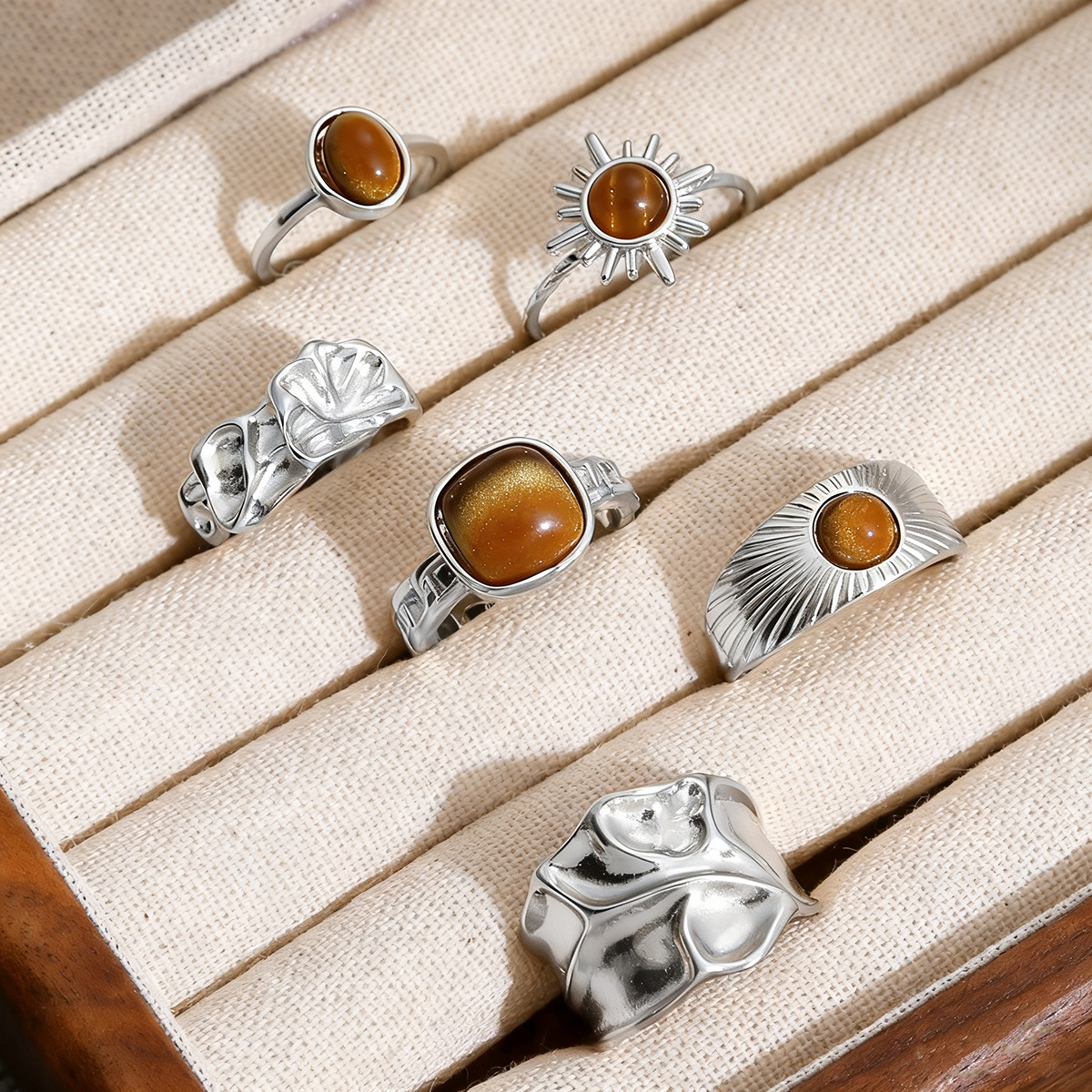 set of 6 silver vintage rings