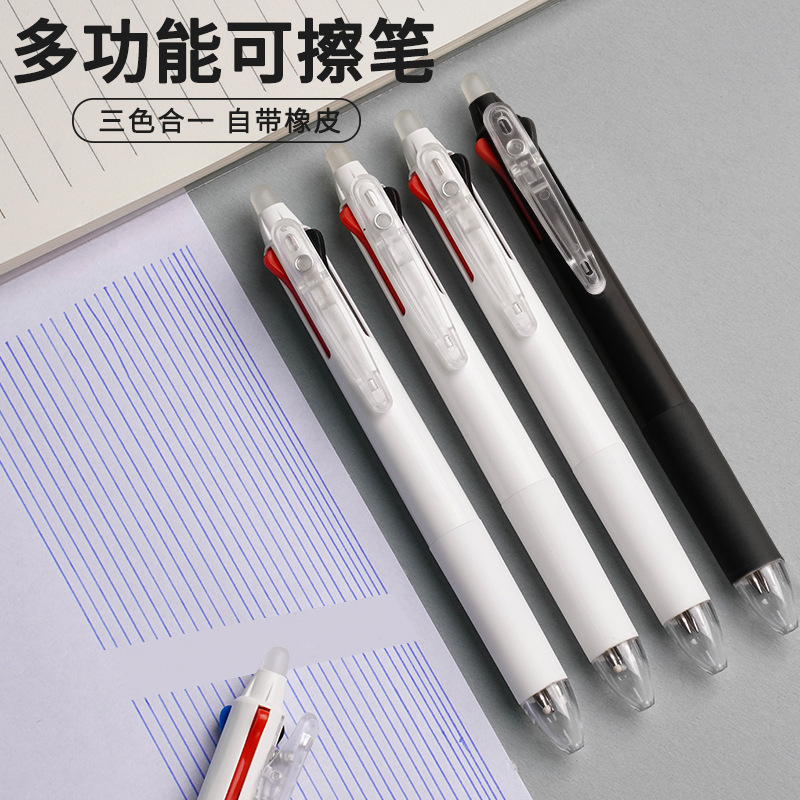 refill color: three colors erasable pen white penholder, three colors erasable pen black stick