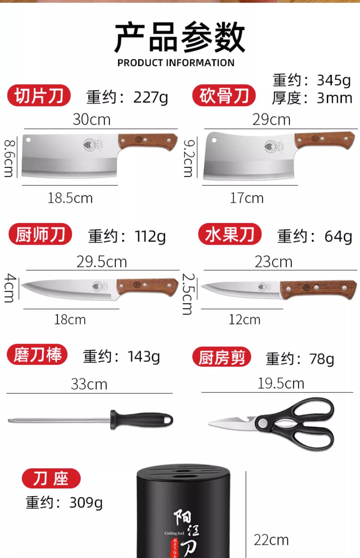 specifications: a07 fruit knife 1 [leather case], solid wood handle fruit