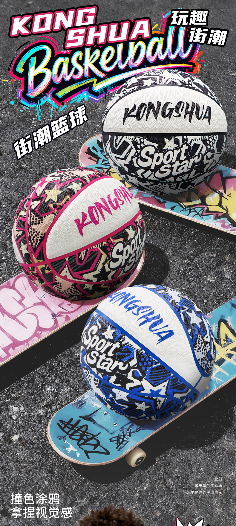 cross-border graffiti pu moisture-absorbing basketball no. 6 indoor and outdoor non-slip wear-resistant stain-resistant basketball no. 7 school training camp dedicated