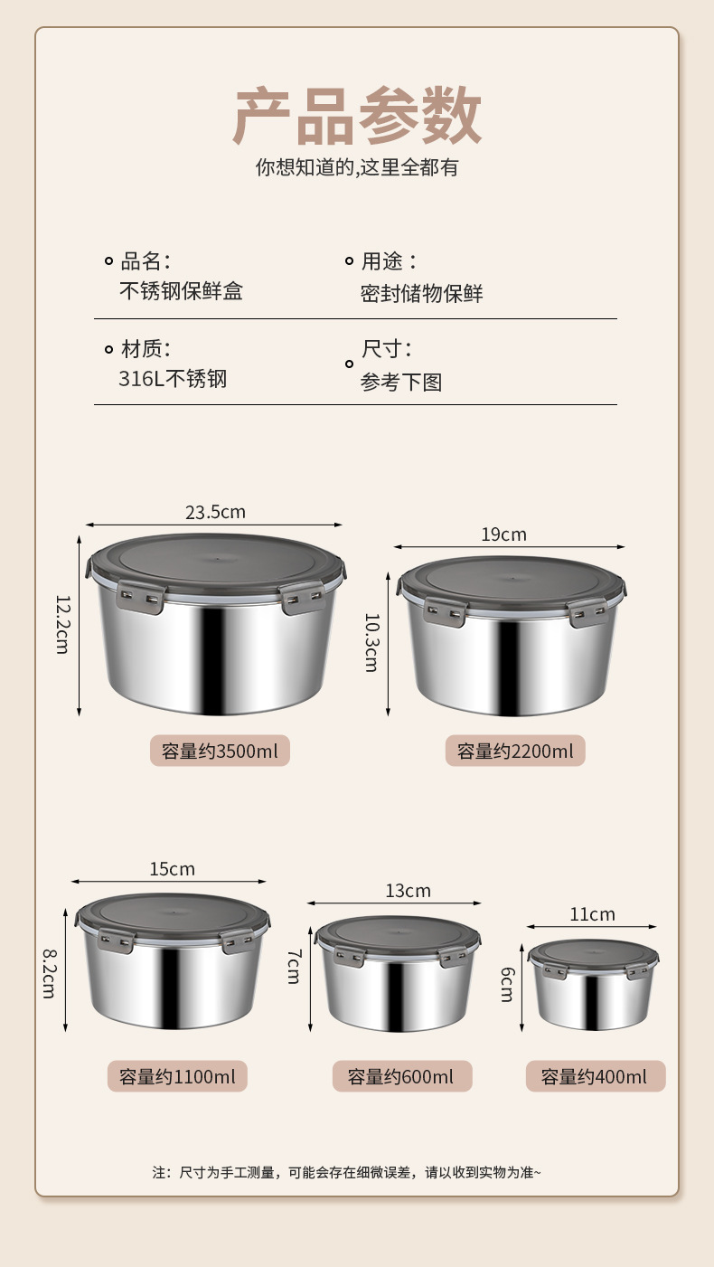 [22.5x22.5x12.5cm] 3500ml round preservation box