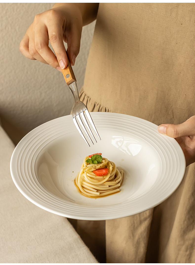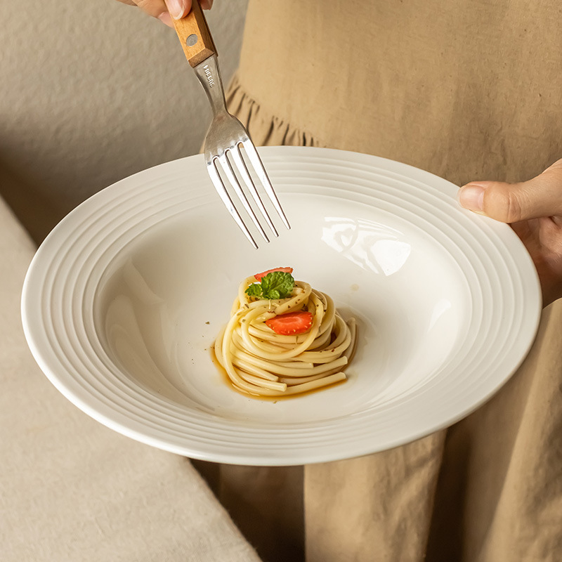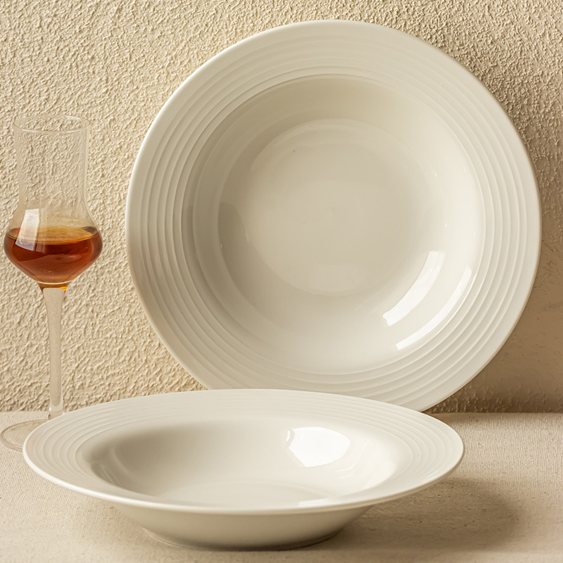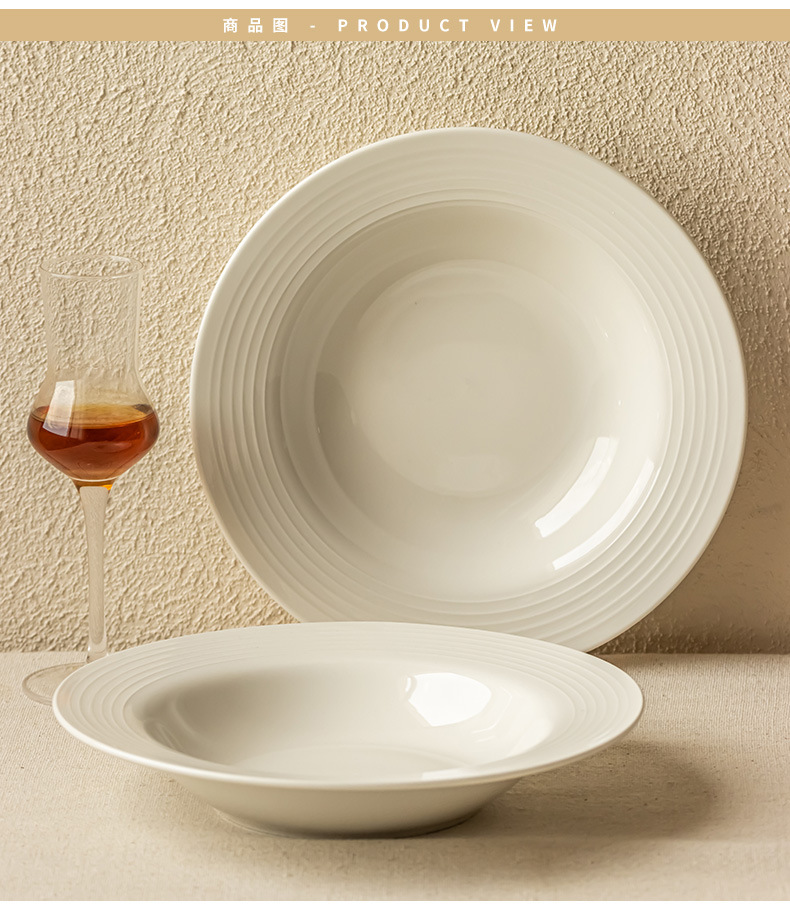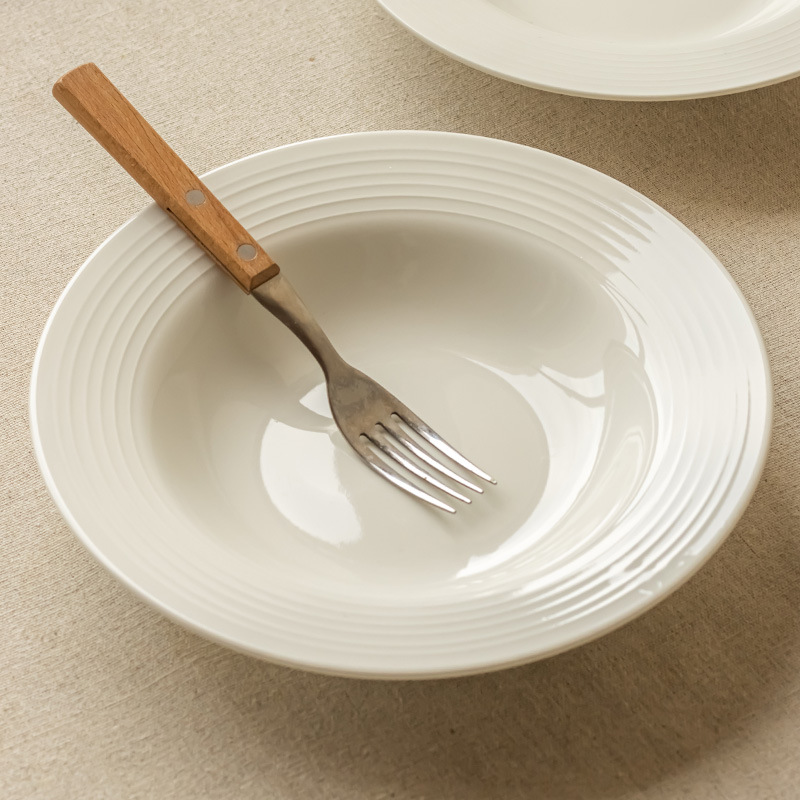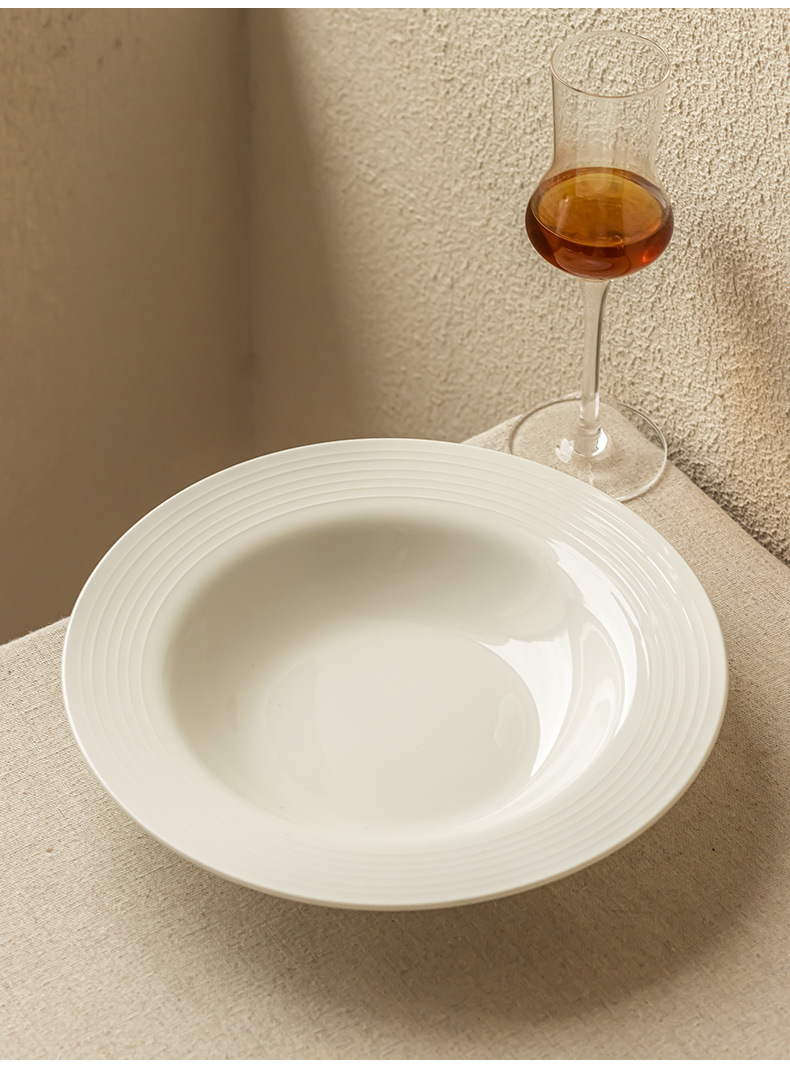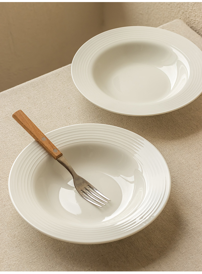 annual ring thread shallow plate white 8 inch