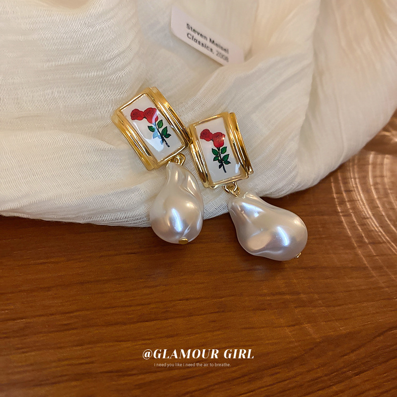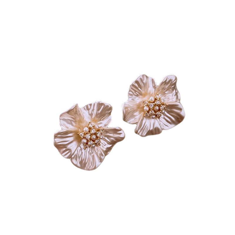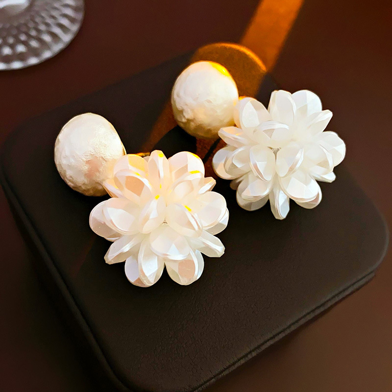22# silver needle resin flower pearl eardrops stud earrings