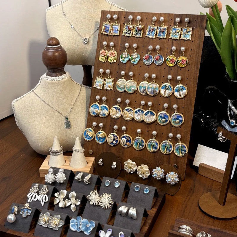 15# silver needle pearl color-block crystal butterfly studs
