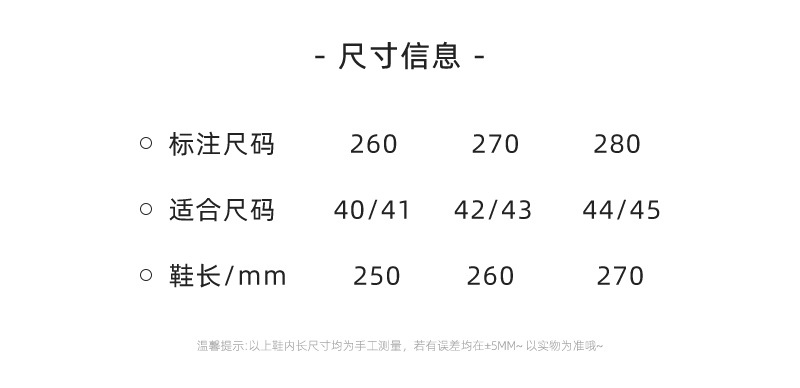 | 42-43 (suitable for size 41-42 feet) | CN¥ 0.0 |