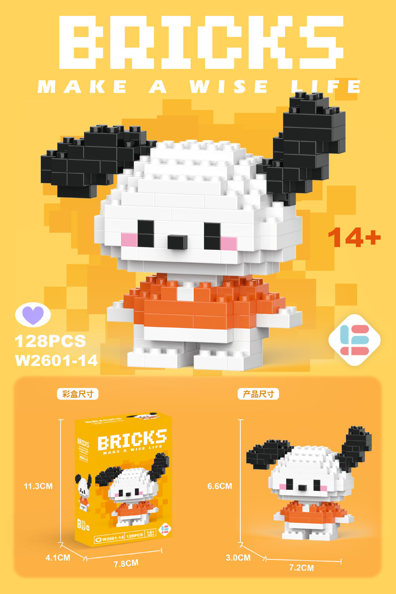 w-014 mini cha cha dog 128pcs