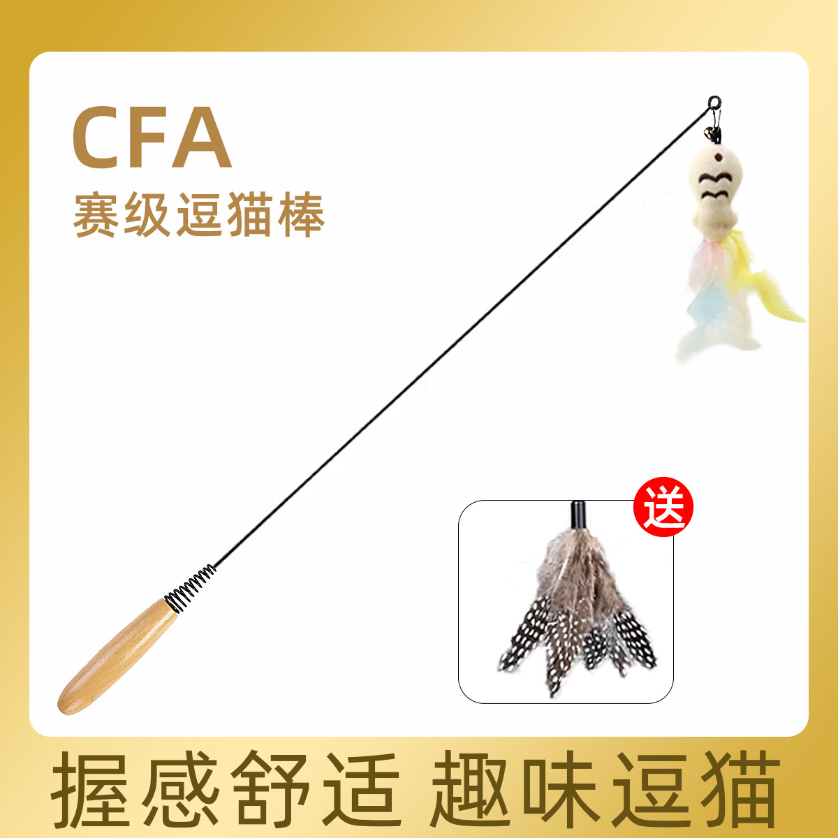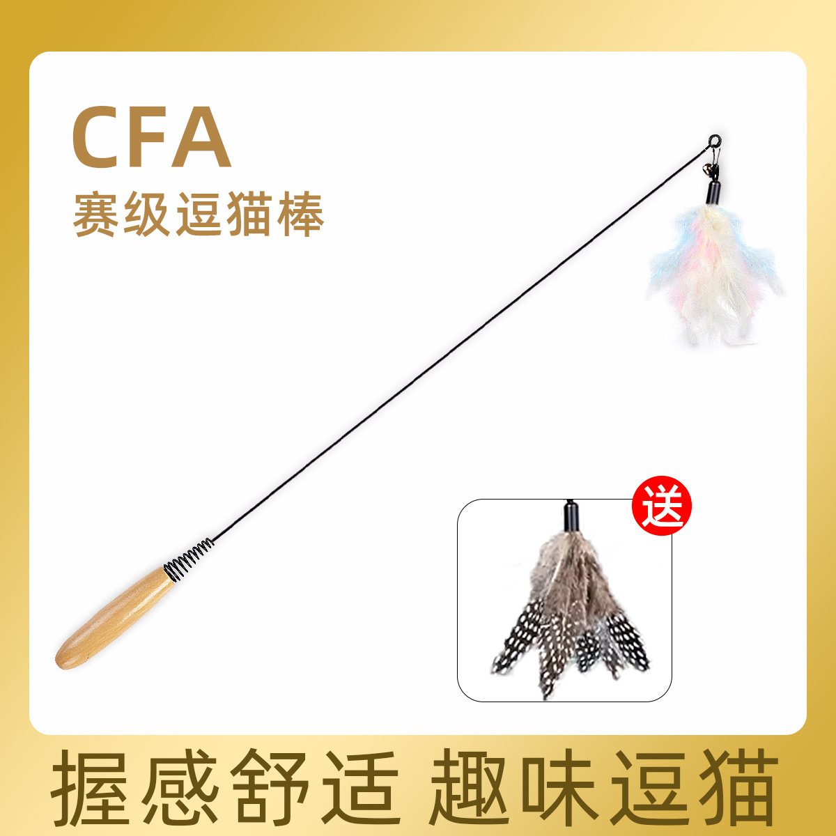 hot-selling cfa competition-grade cat teaser + orange large feather + colorful large feather [3 feathers in total]