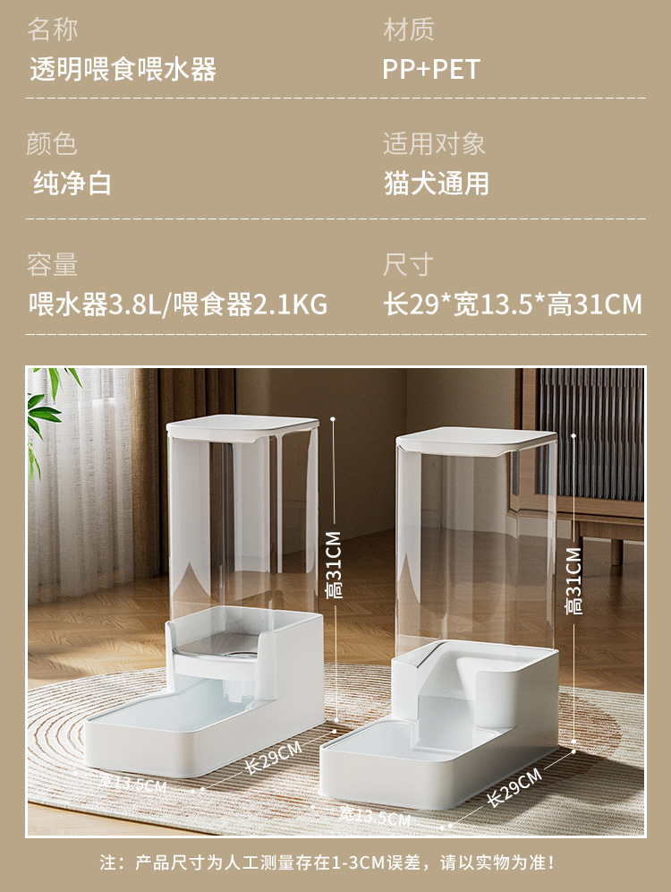 automatic pet feeder + automatic water dispenser set 3.3l water + 1.3kg