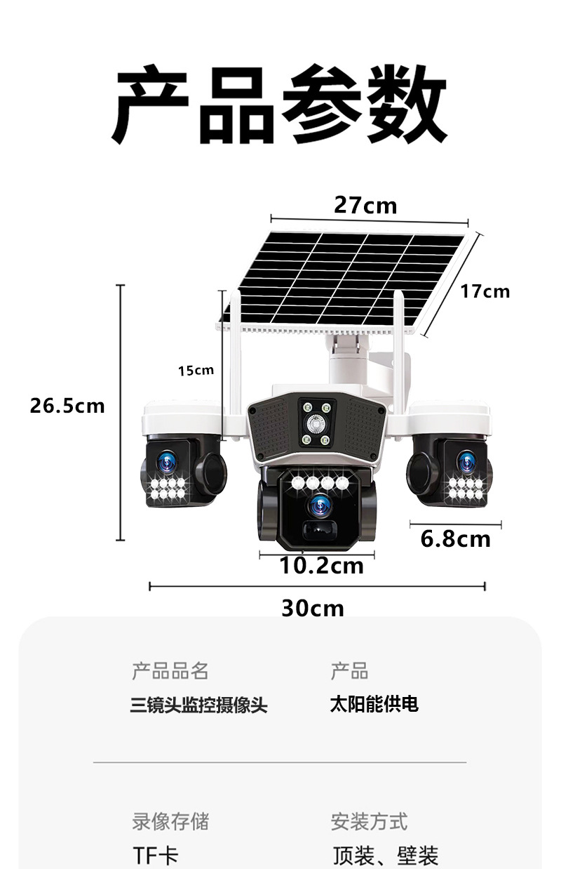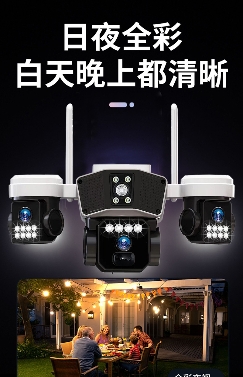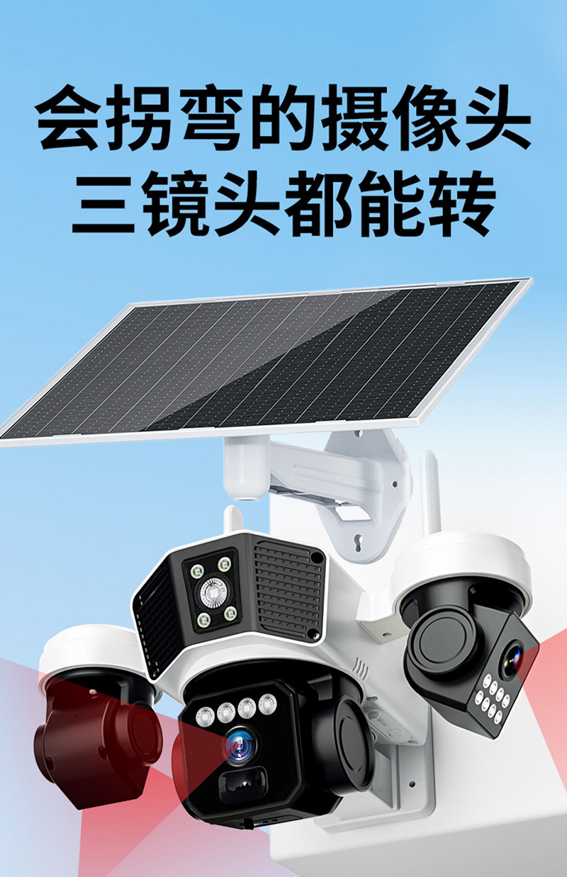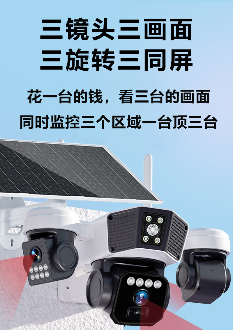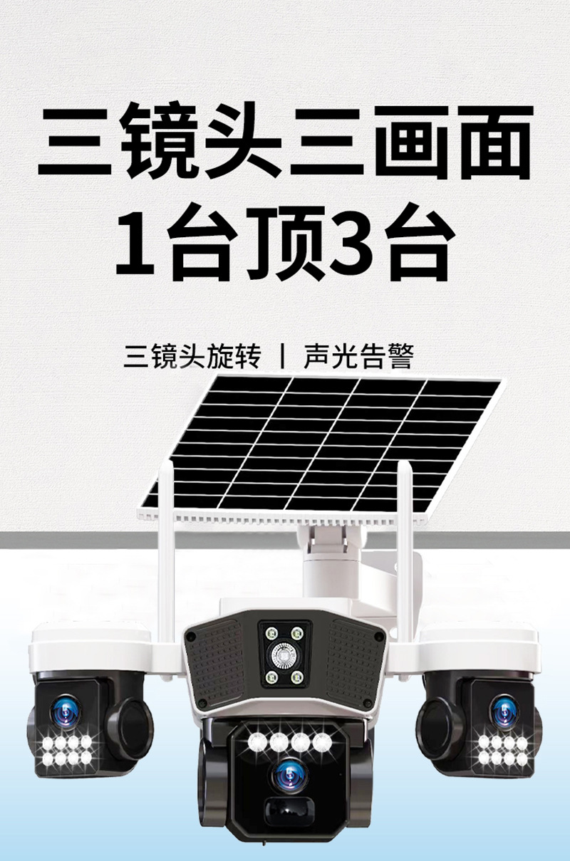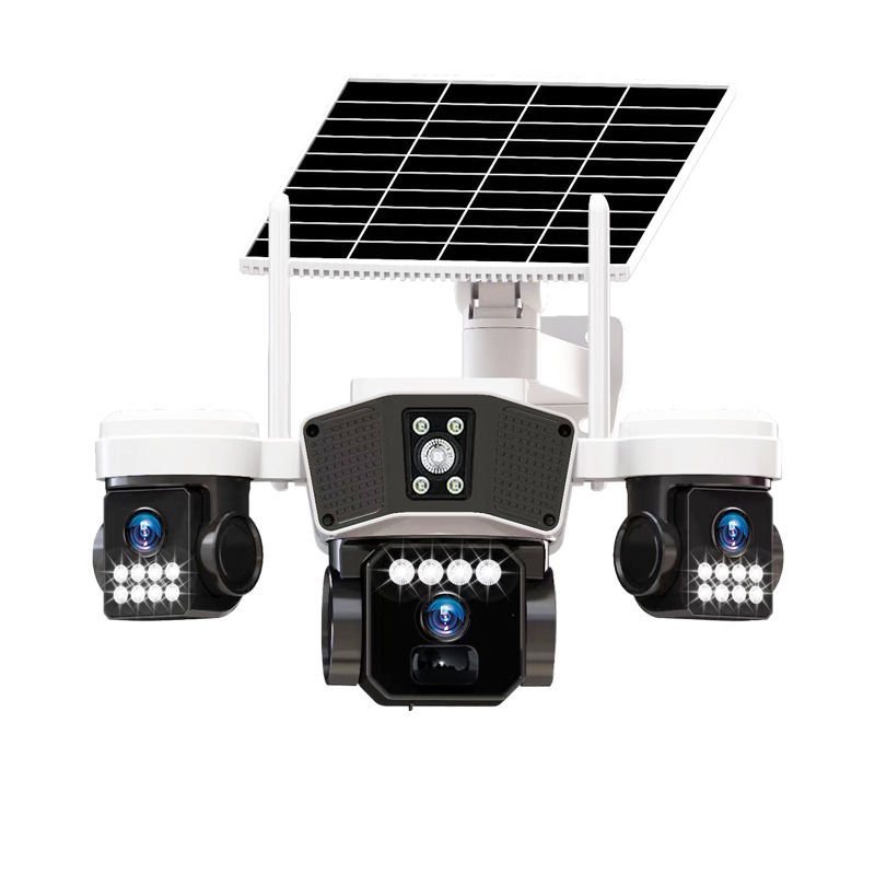 cross-border 4g solar three-lens surveillance outdoor waterproof camera night vision video mobile phone remote intelligent security