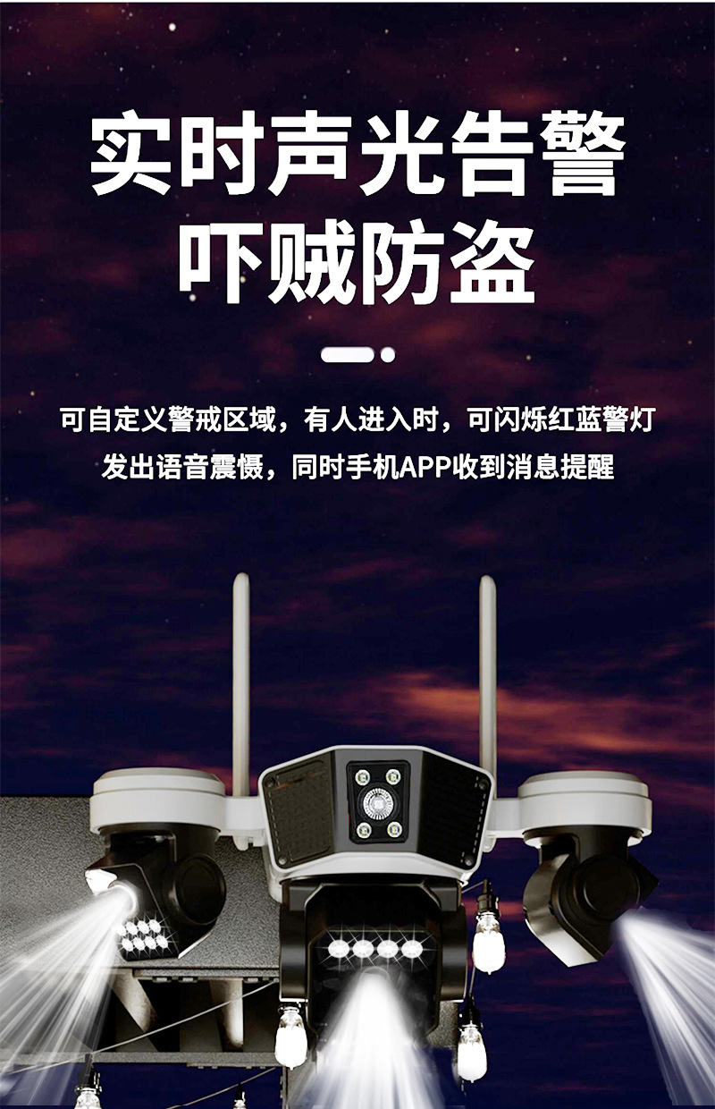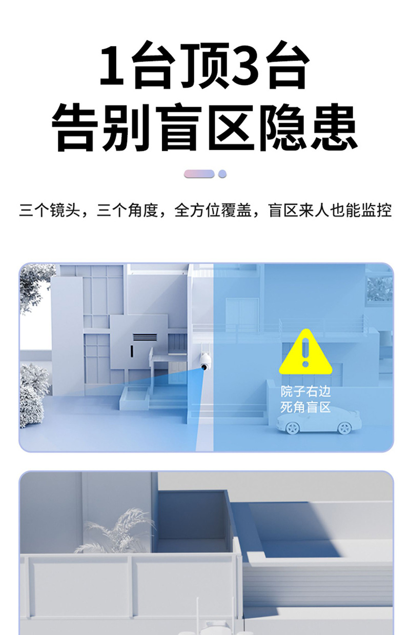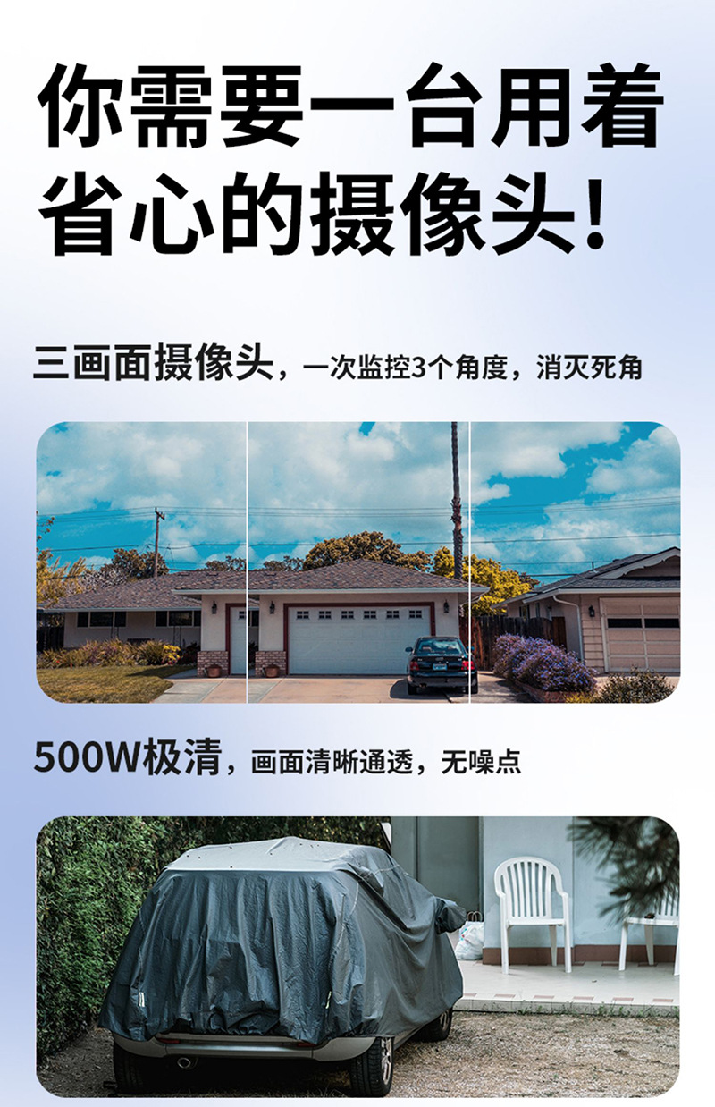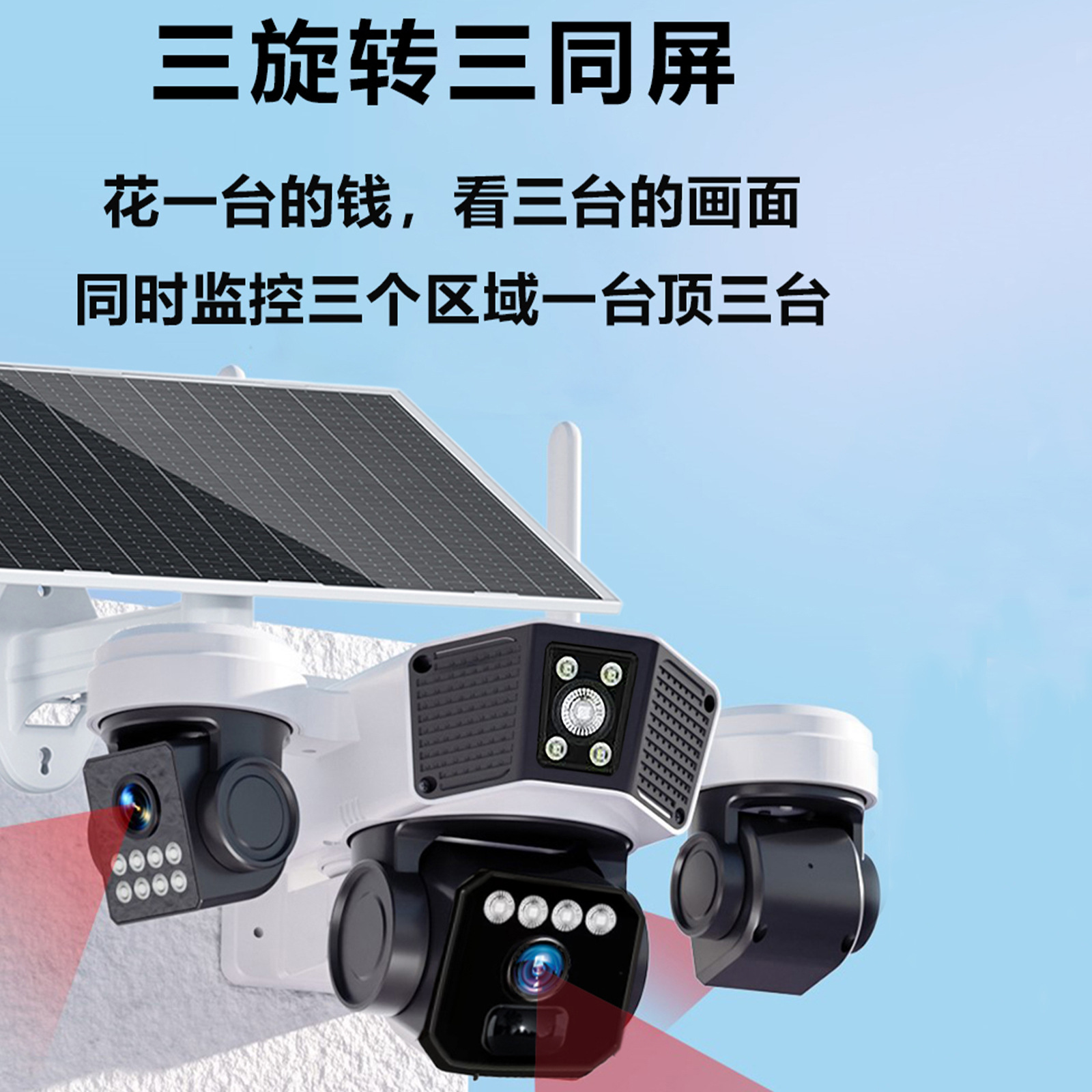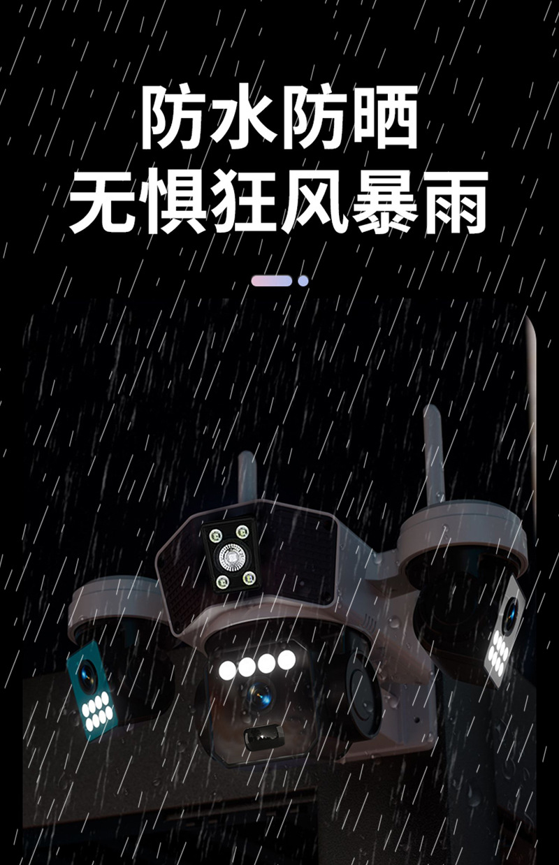 cross-border 4g solar three-lens surveillance outdoor waterproof camera night vision video mobile phone remote intelligent security