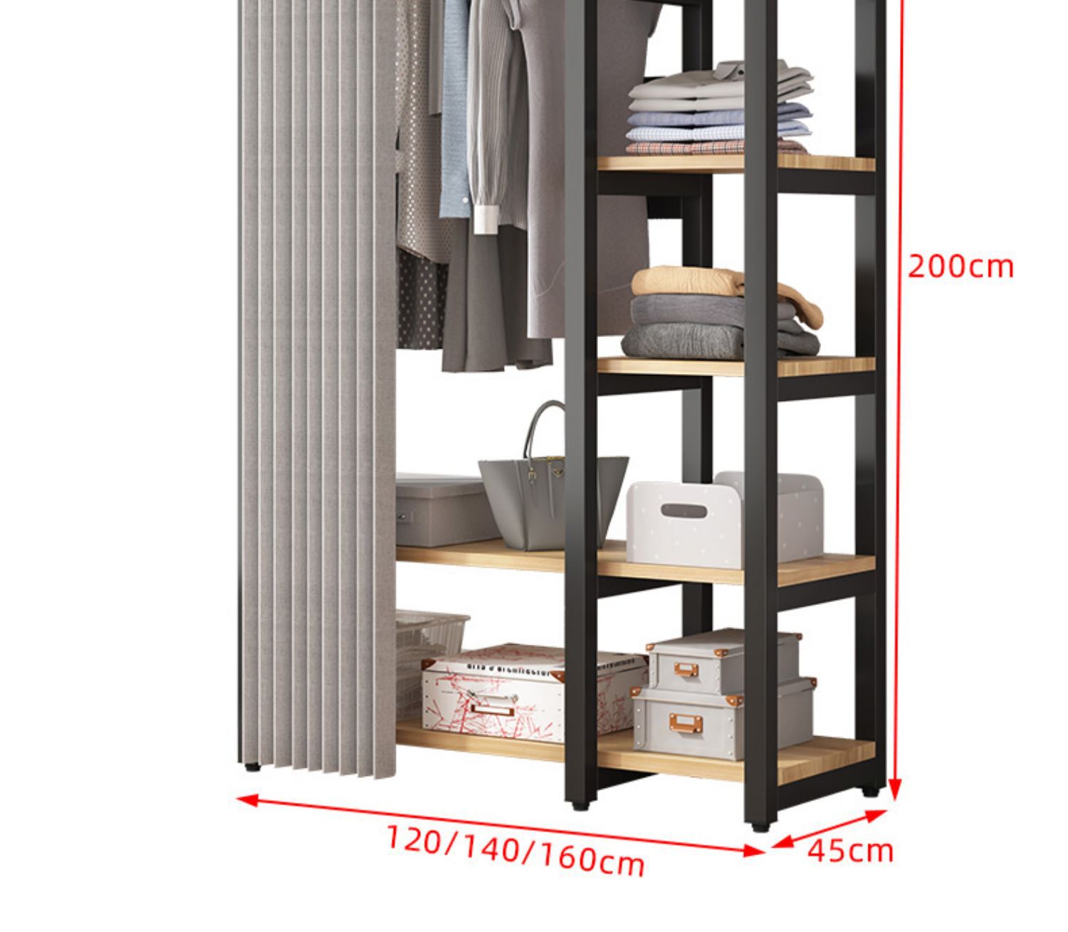 style a: 160cm long, 45cm wide, 200cm high; gray front curtain.