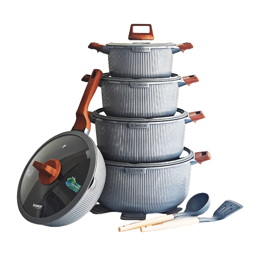 Silicone lid, 3 pot mats, silicone spatula & spoon, bottom coating.