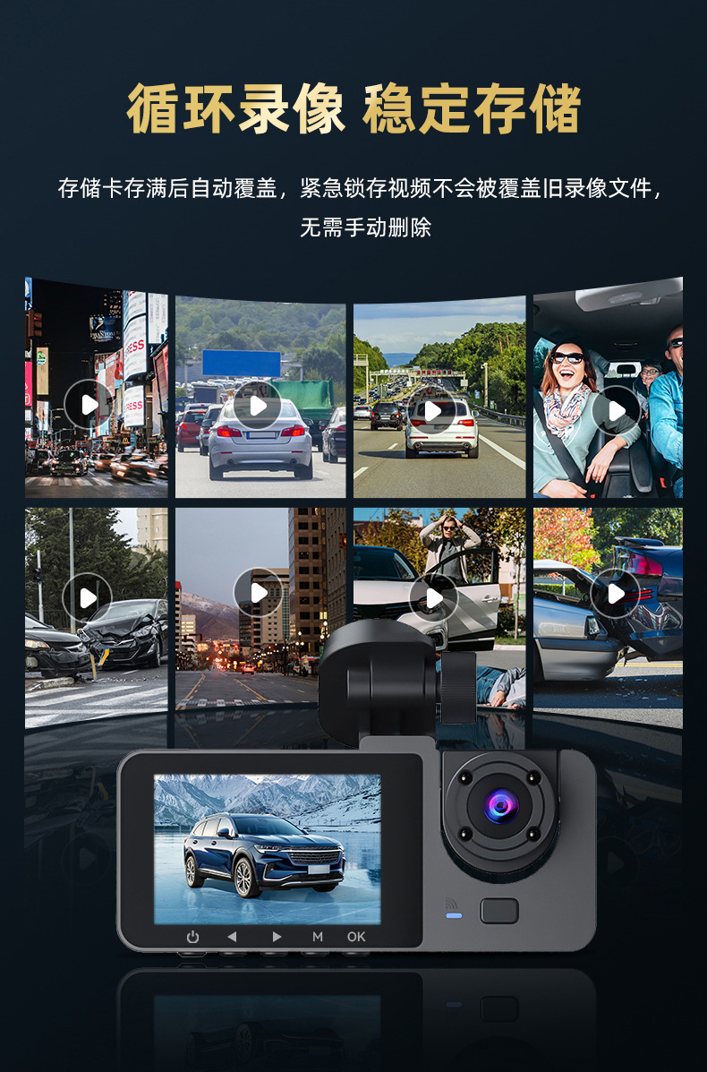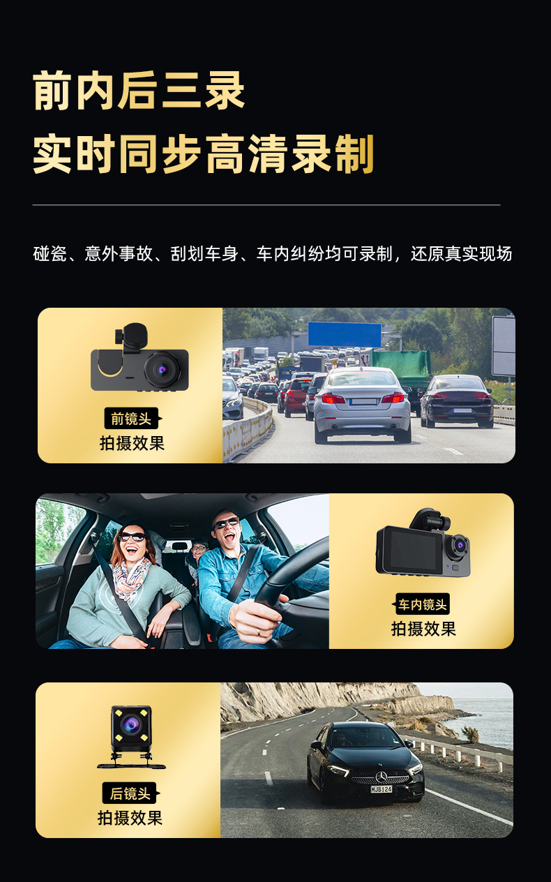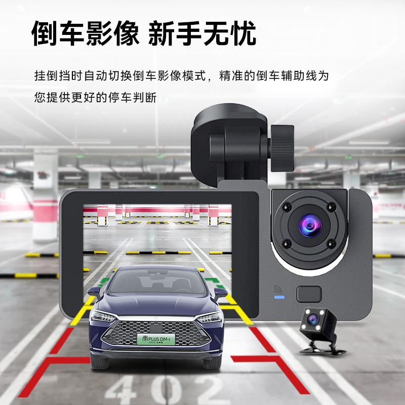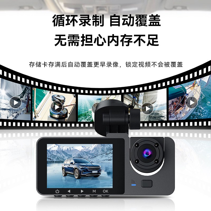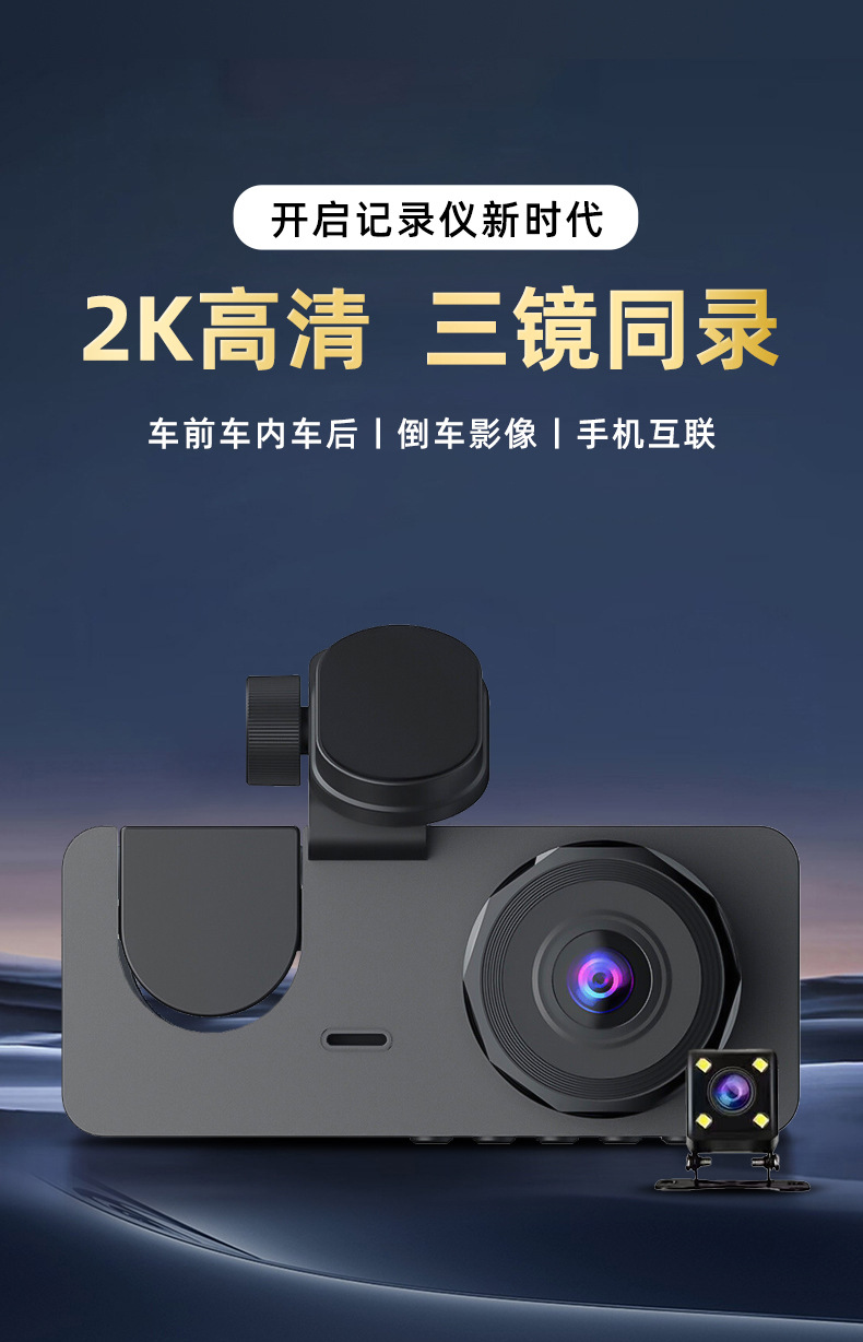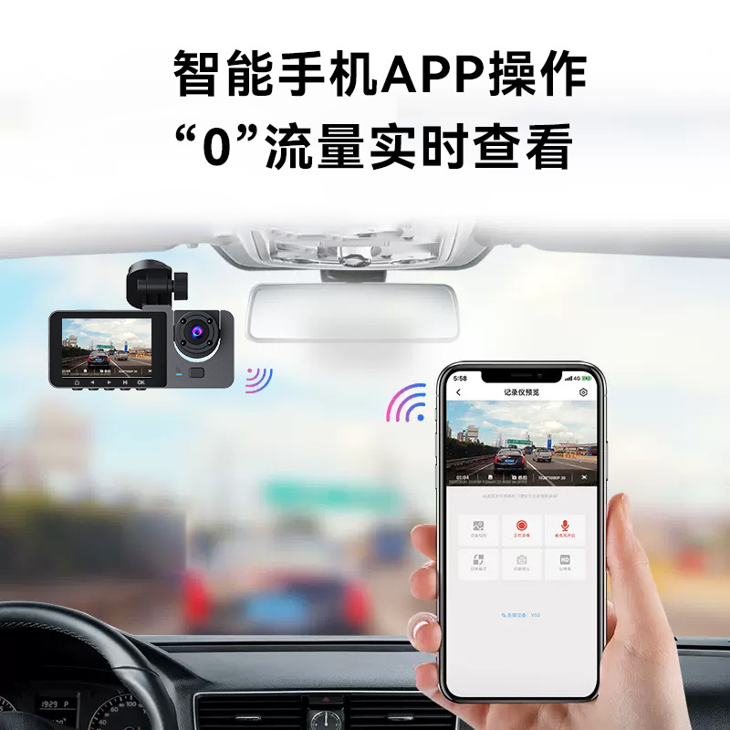 2026 new 1080p three-lens driving automobile recorder hd wifi interconnected on-vehicle automobile recorder
