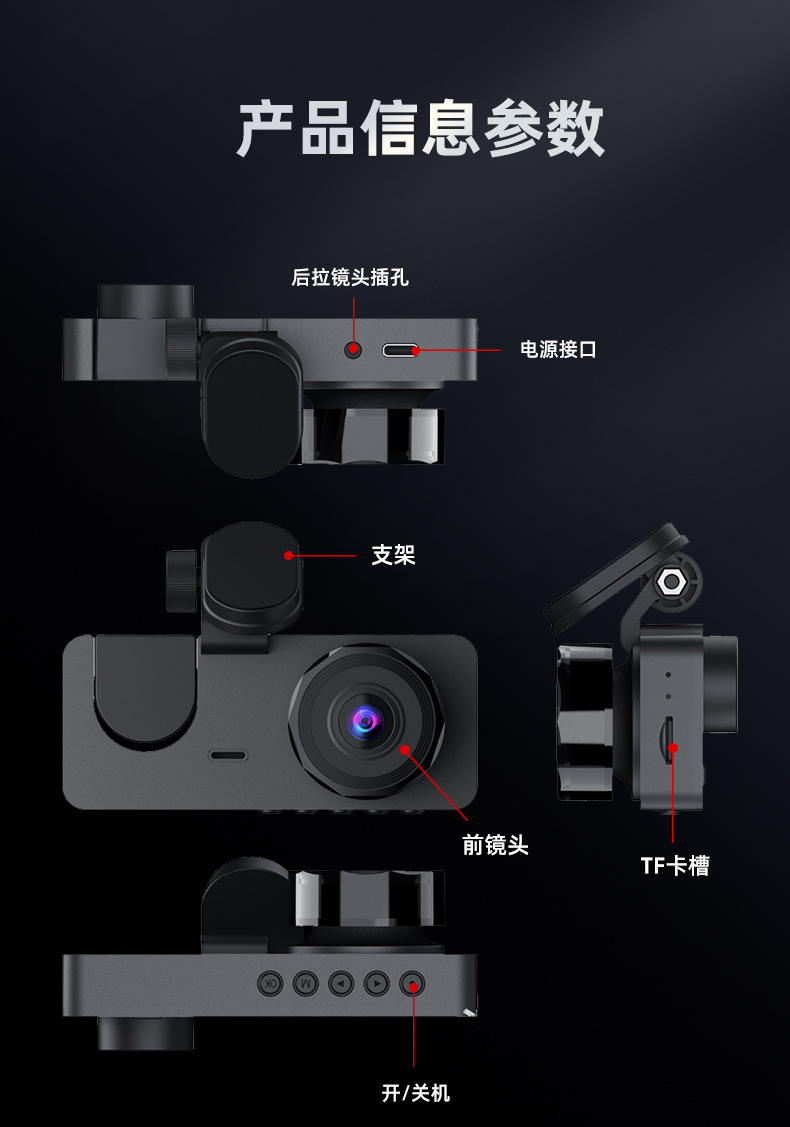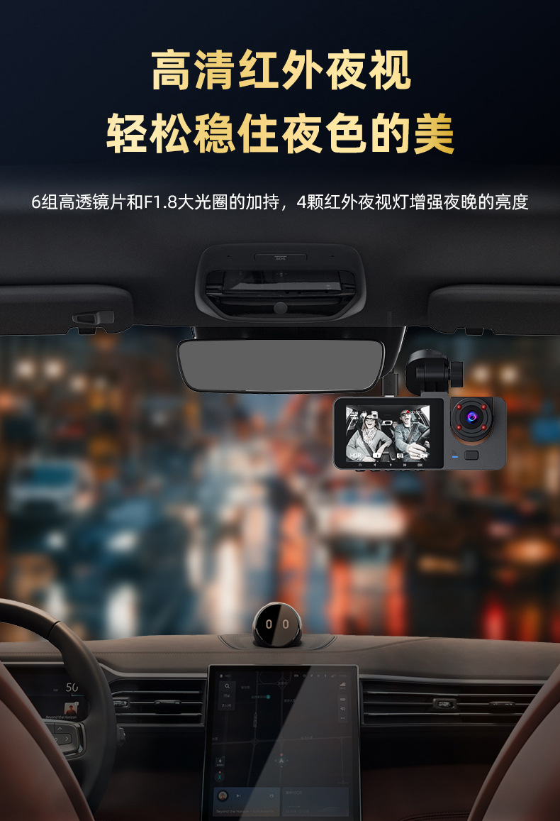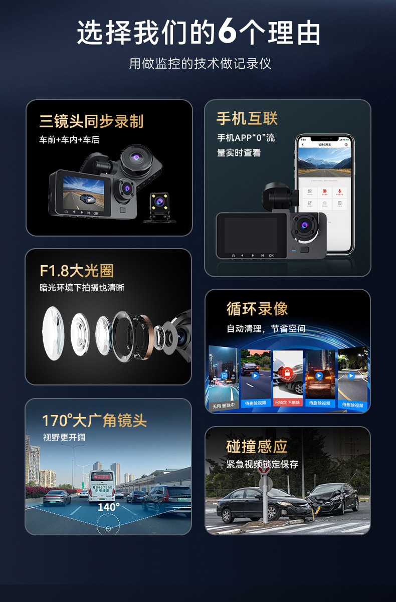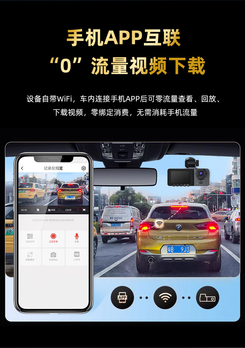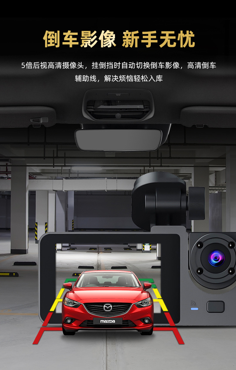 2026 new 1080p three-lens driving automobile recorder hd wifi interconnected on-vehicle automobile recorder