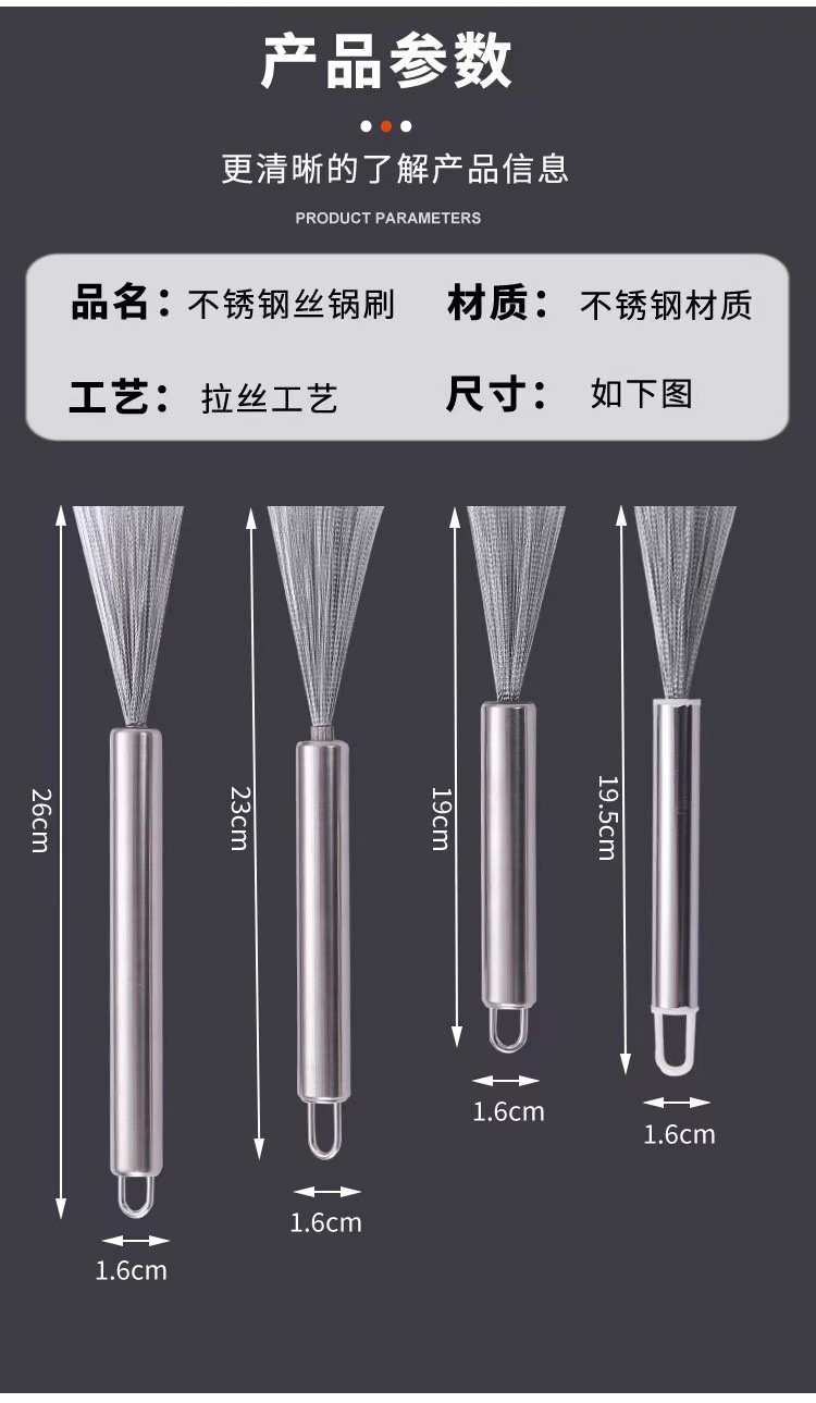 wok brush 21cm stainless steel hook