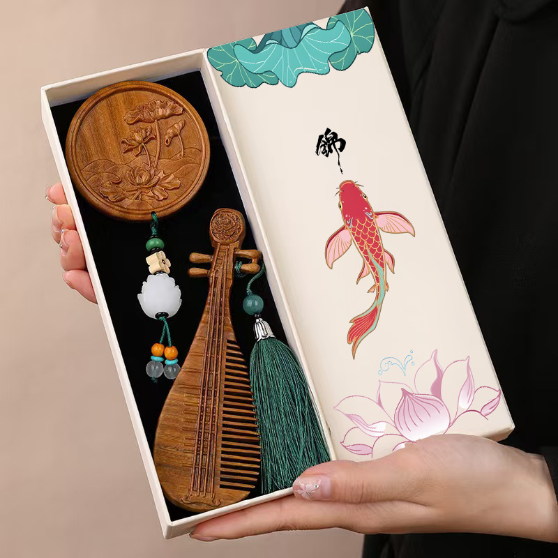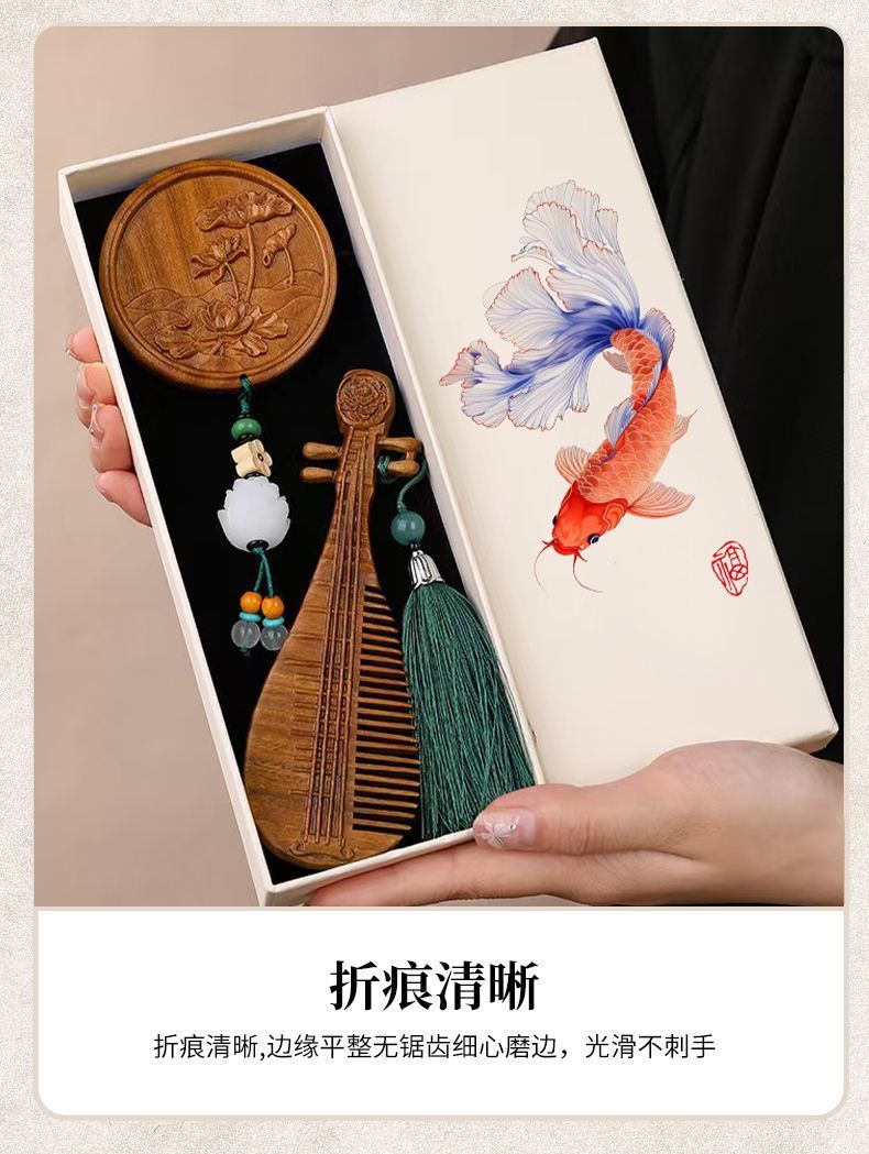 [lotus koi] wooden comb boxes; 22*8.5 * 4cm (connotation sponge + rubber band)