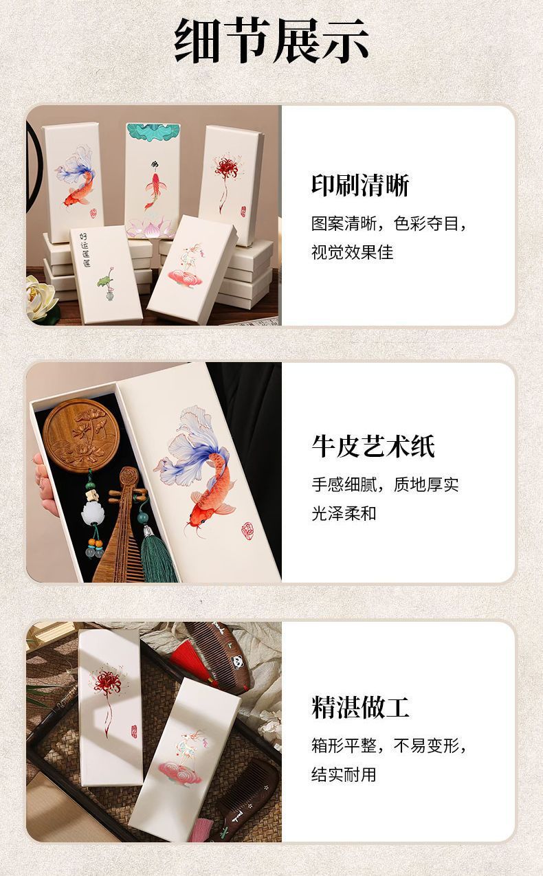 【good luck lotus】 wooden comb box; 22*8.5*4cm (includes sponge and rubber band)