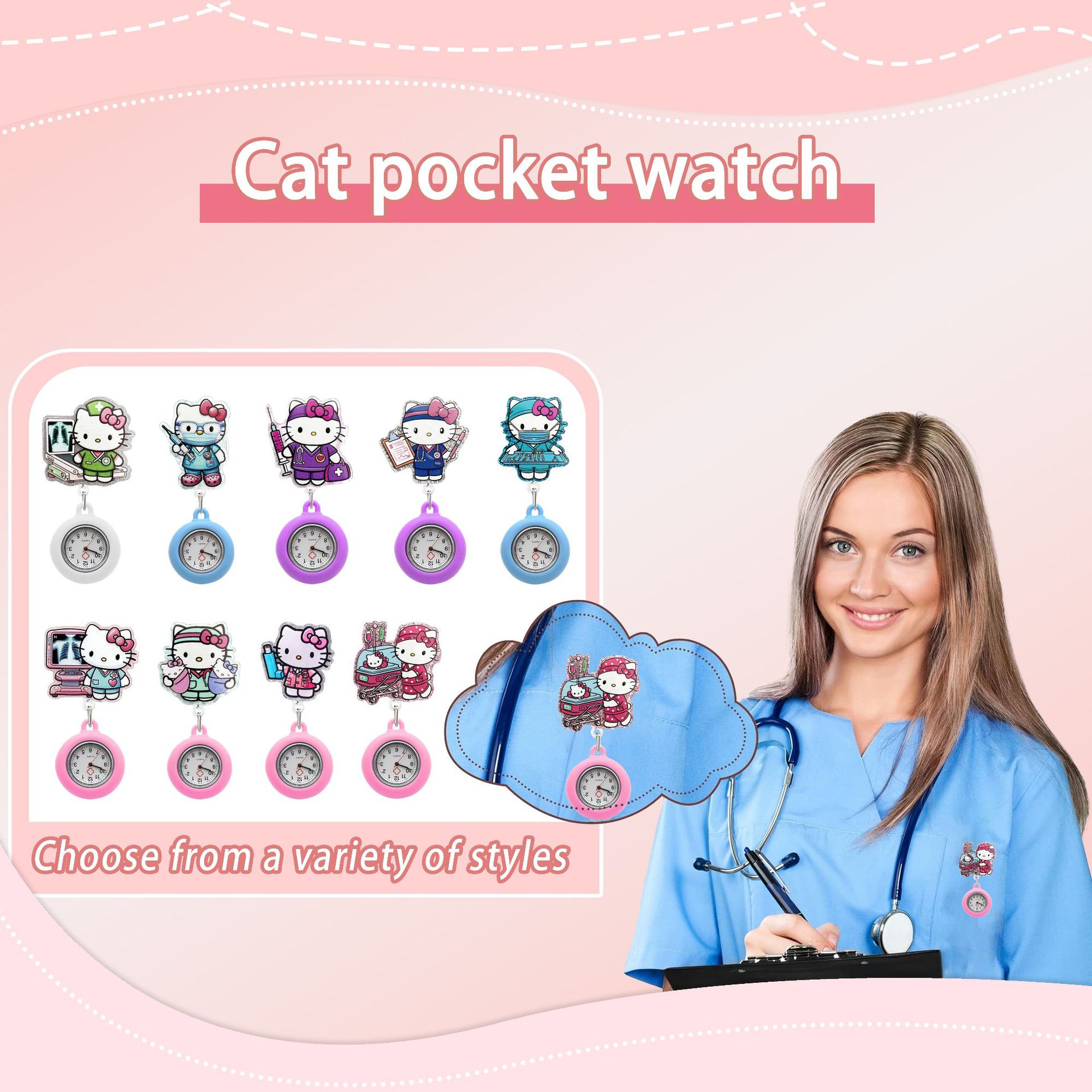 可伸缩护士胸章怀表