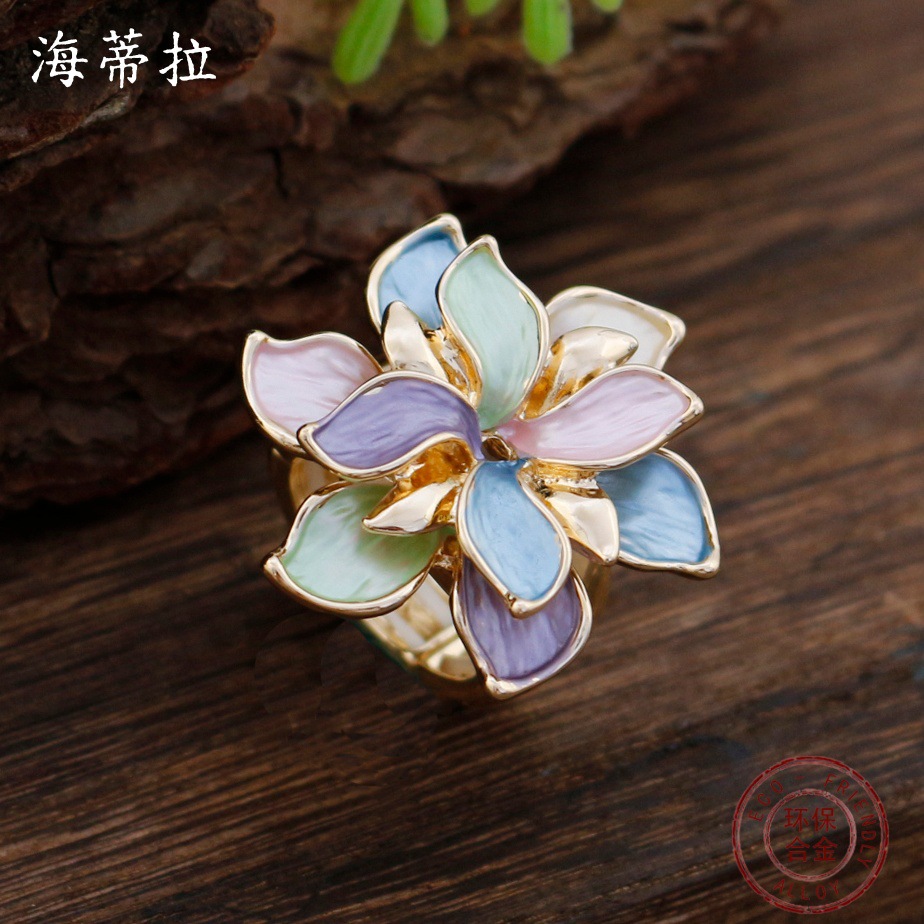 spring color daffodil flower elastic ring-gold