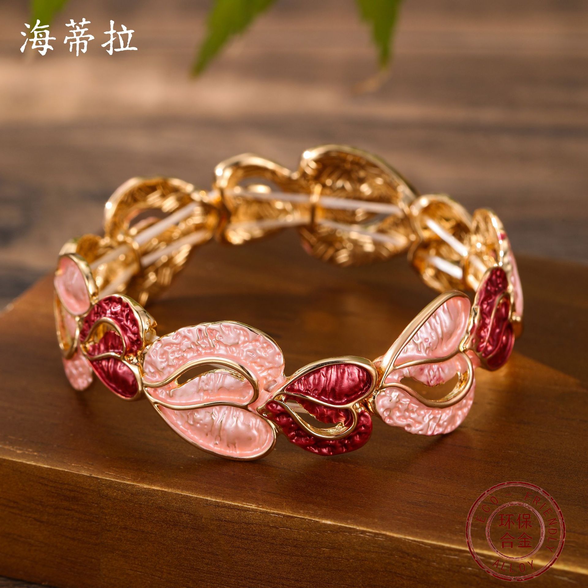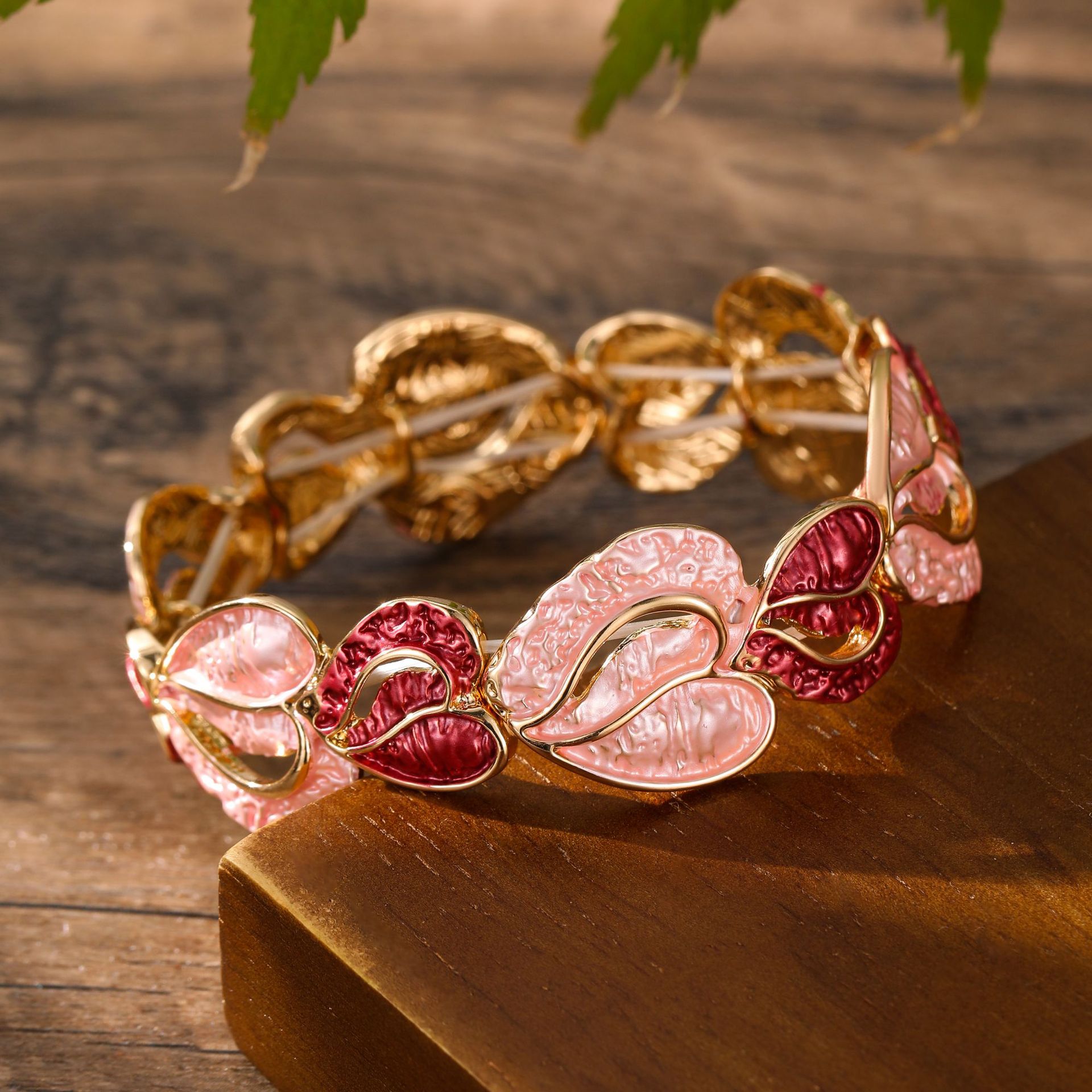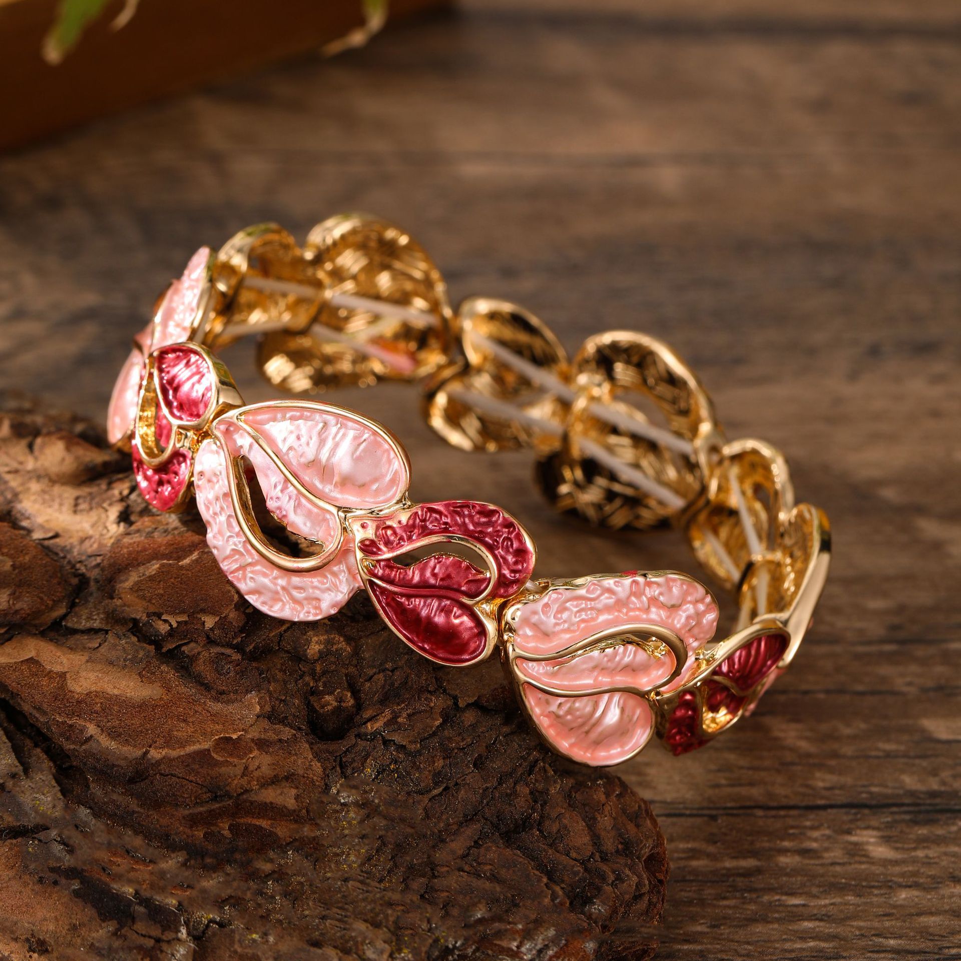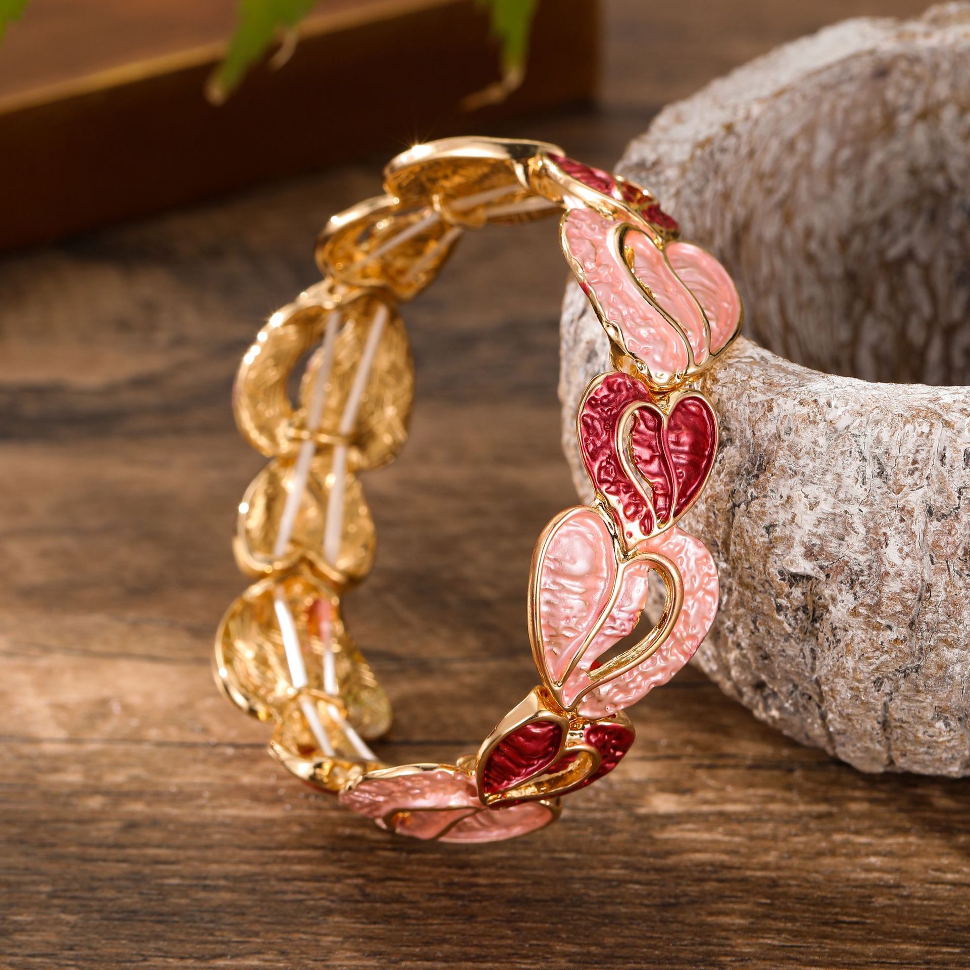 pink heart elastic bracelet-gold