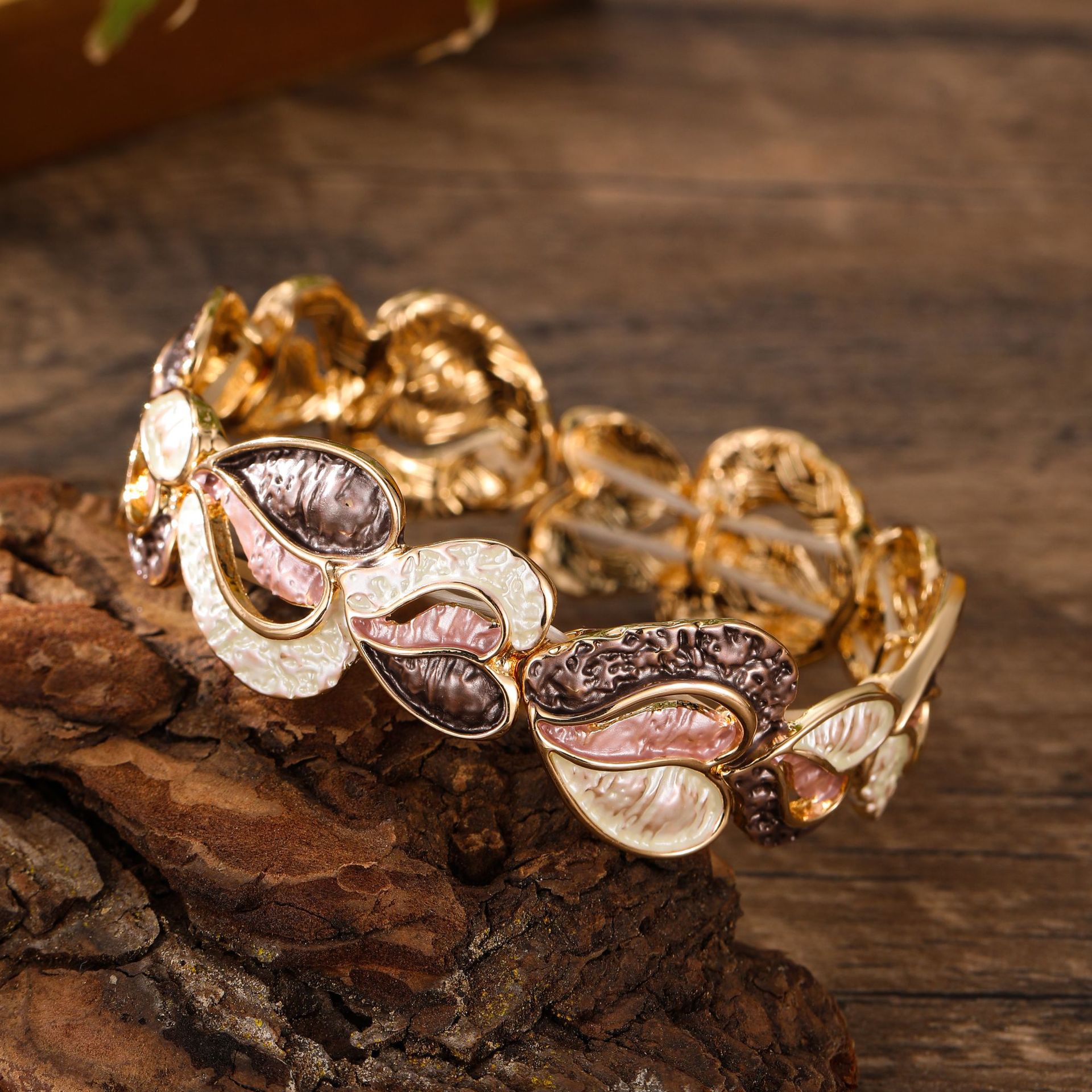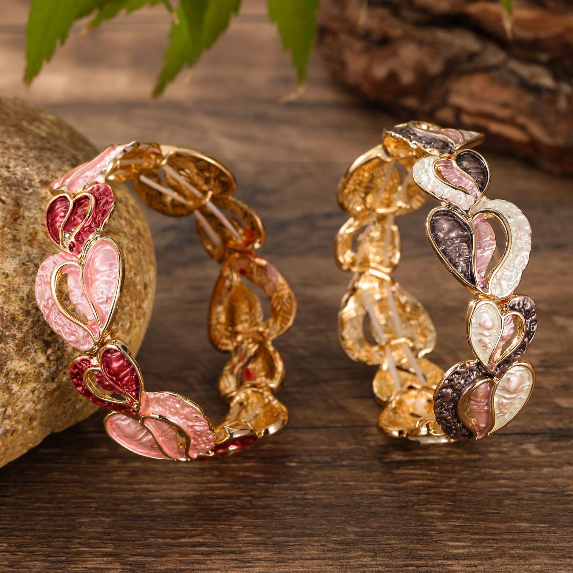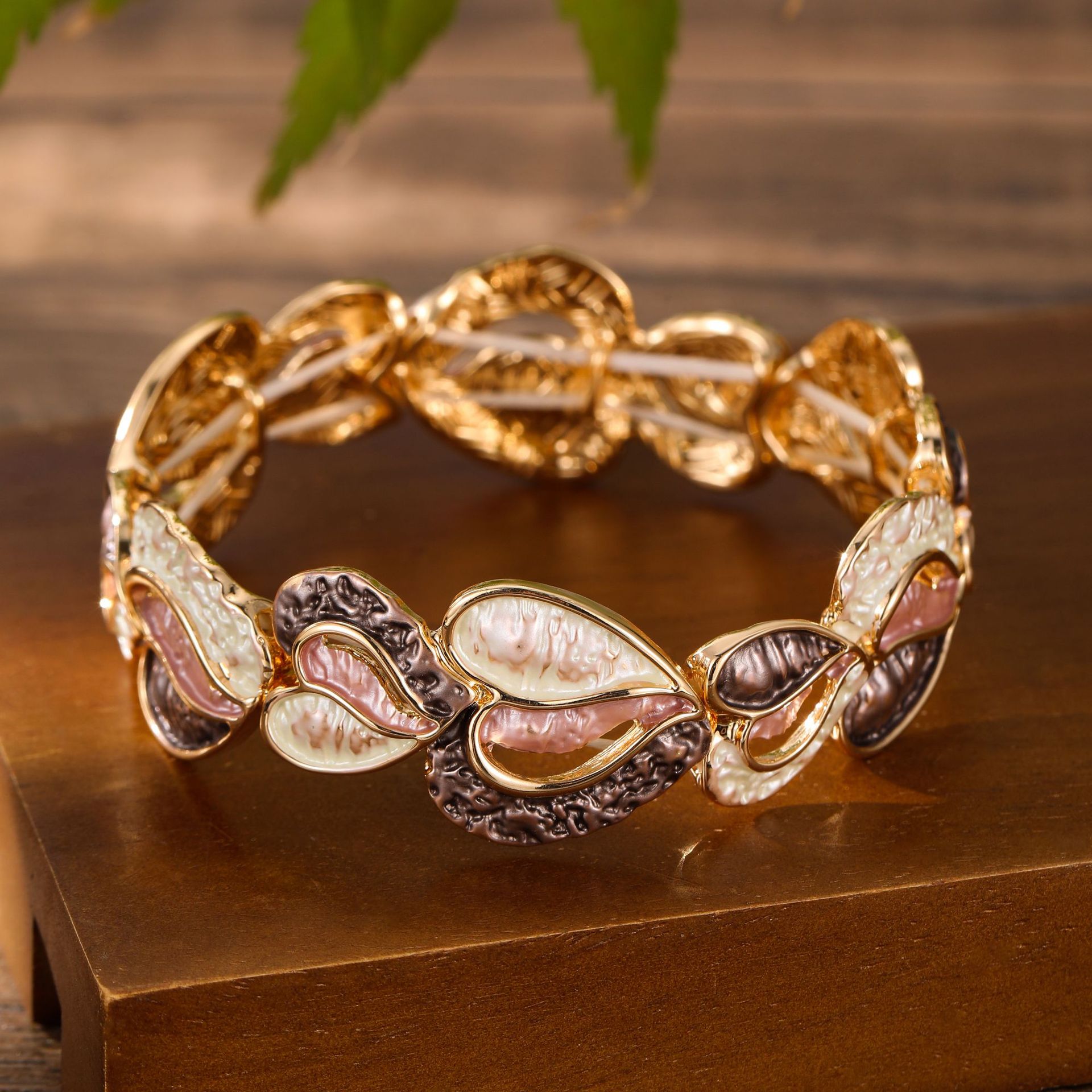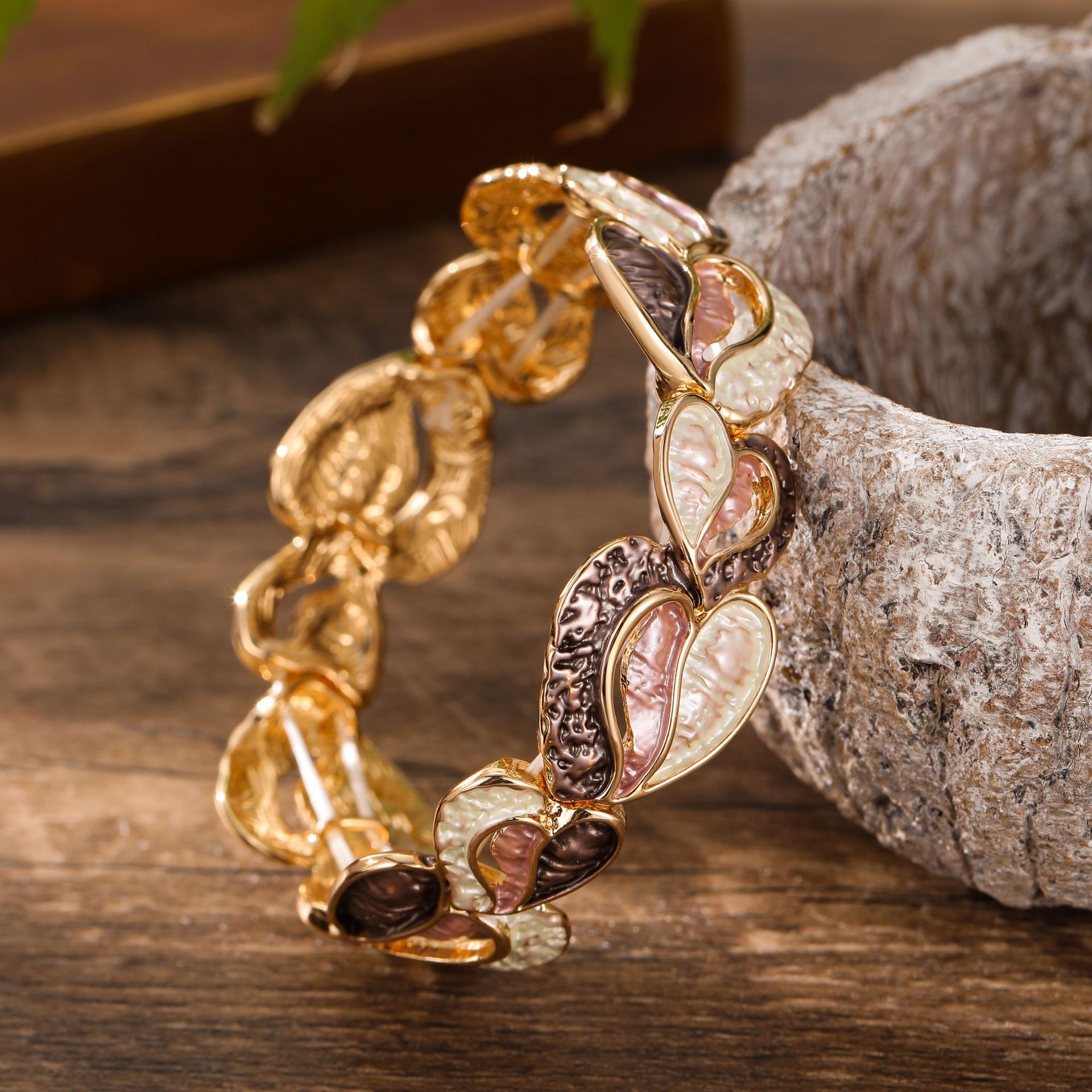 coffee-colored love-shape elastic bracelet-gold