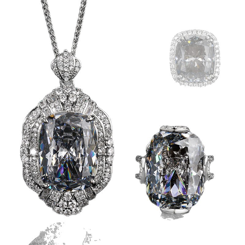 color: white gold black gray pendant with chopin chain, white gold black gray ring, white gold
