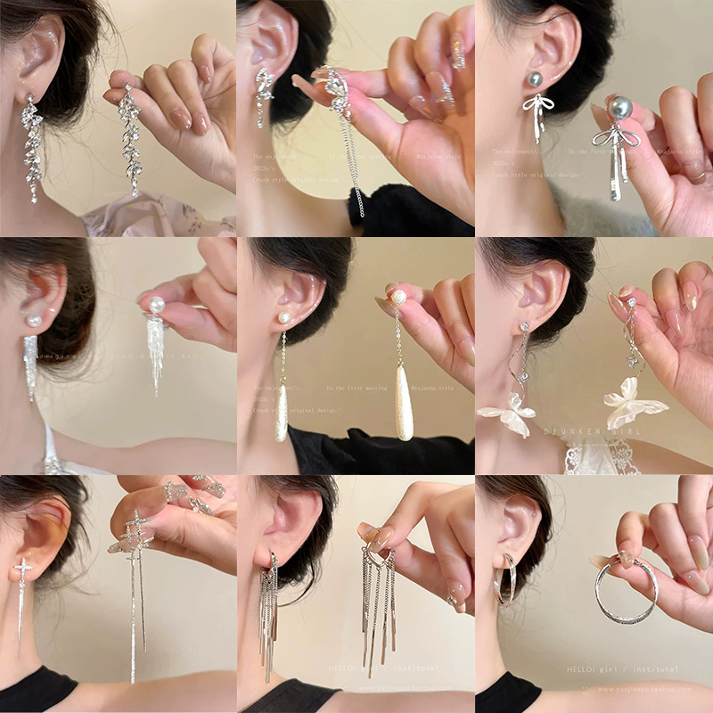 9# zhao lusi xu yan same style pearl tassel earrings