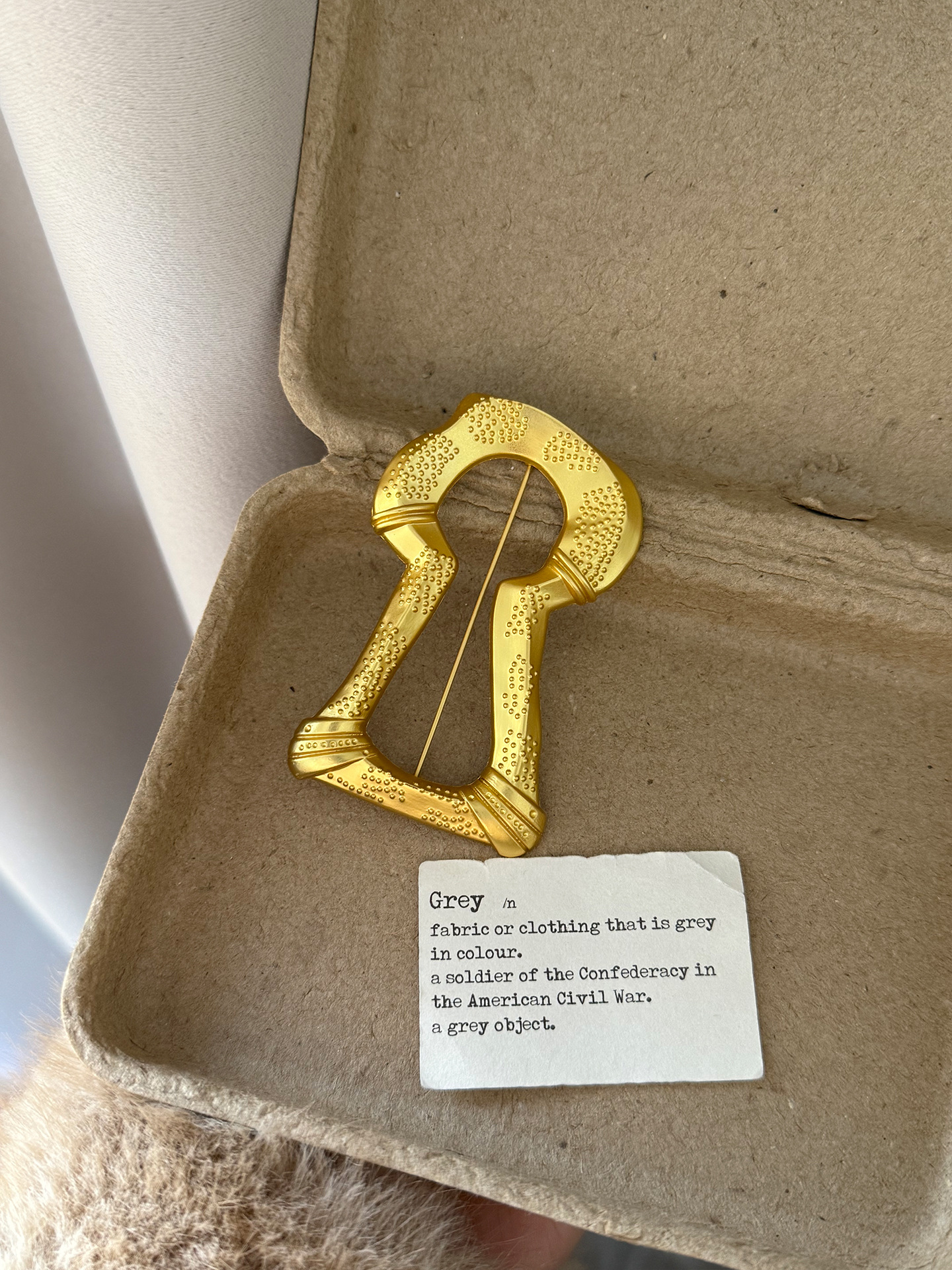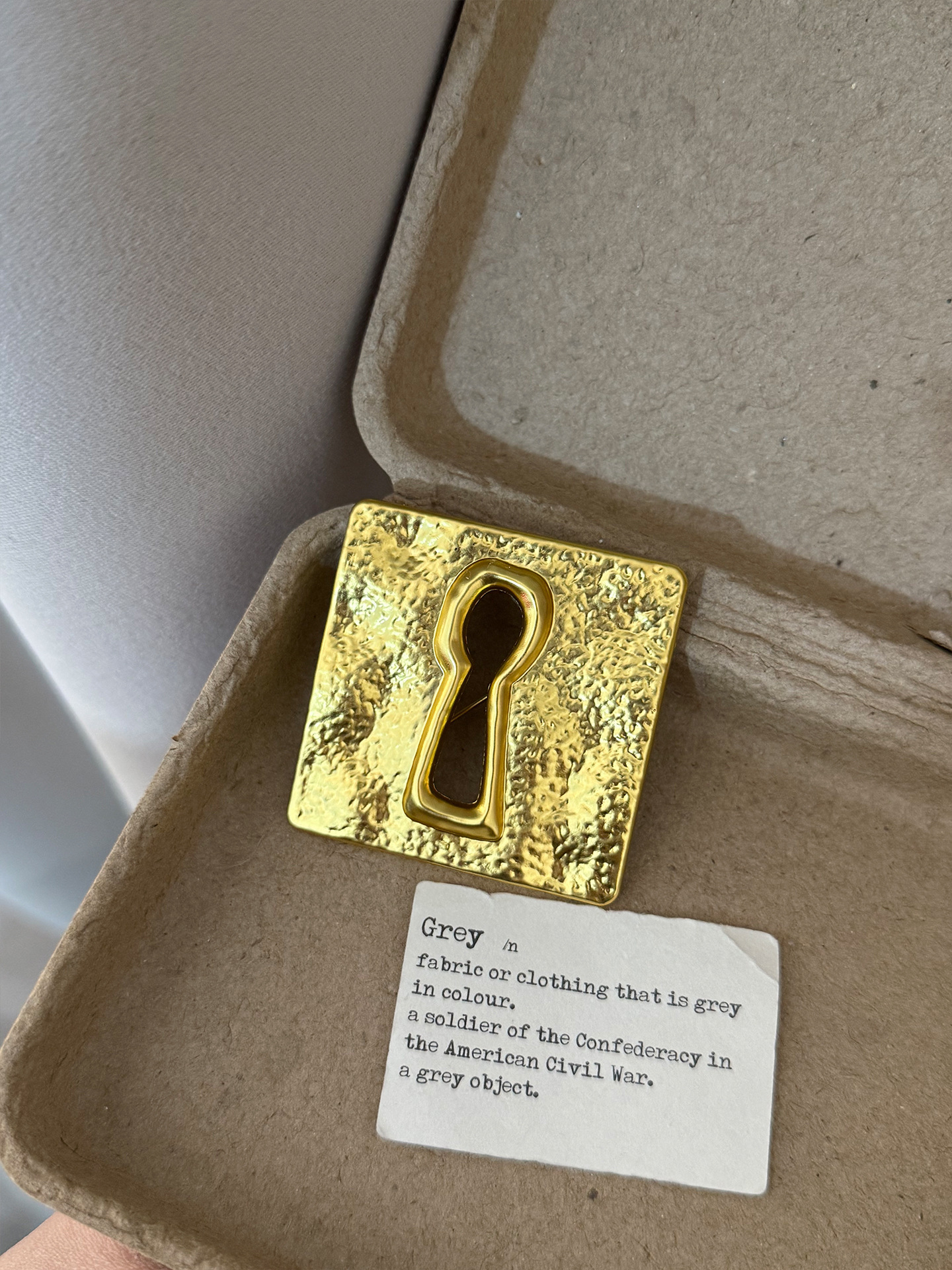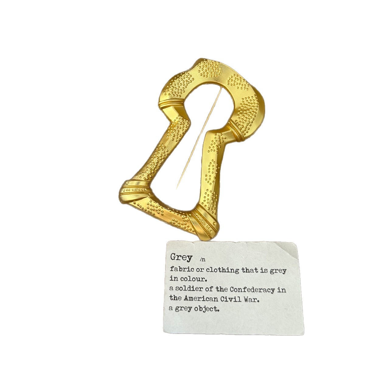 color: gold big keyhole brooch xz0100, gold keyhole square