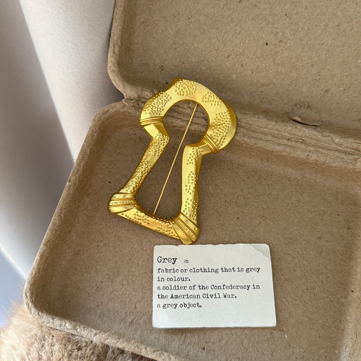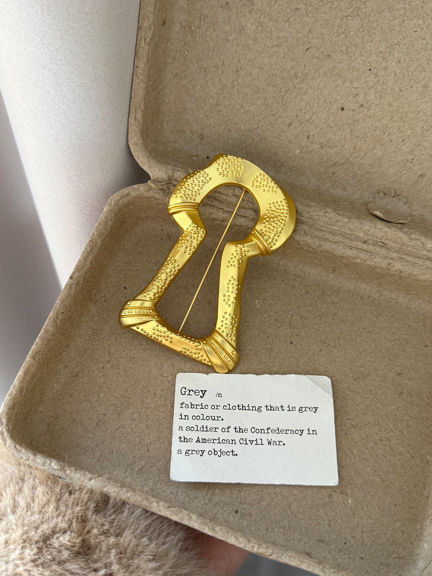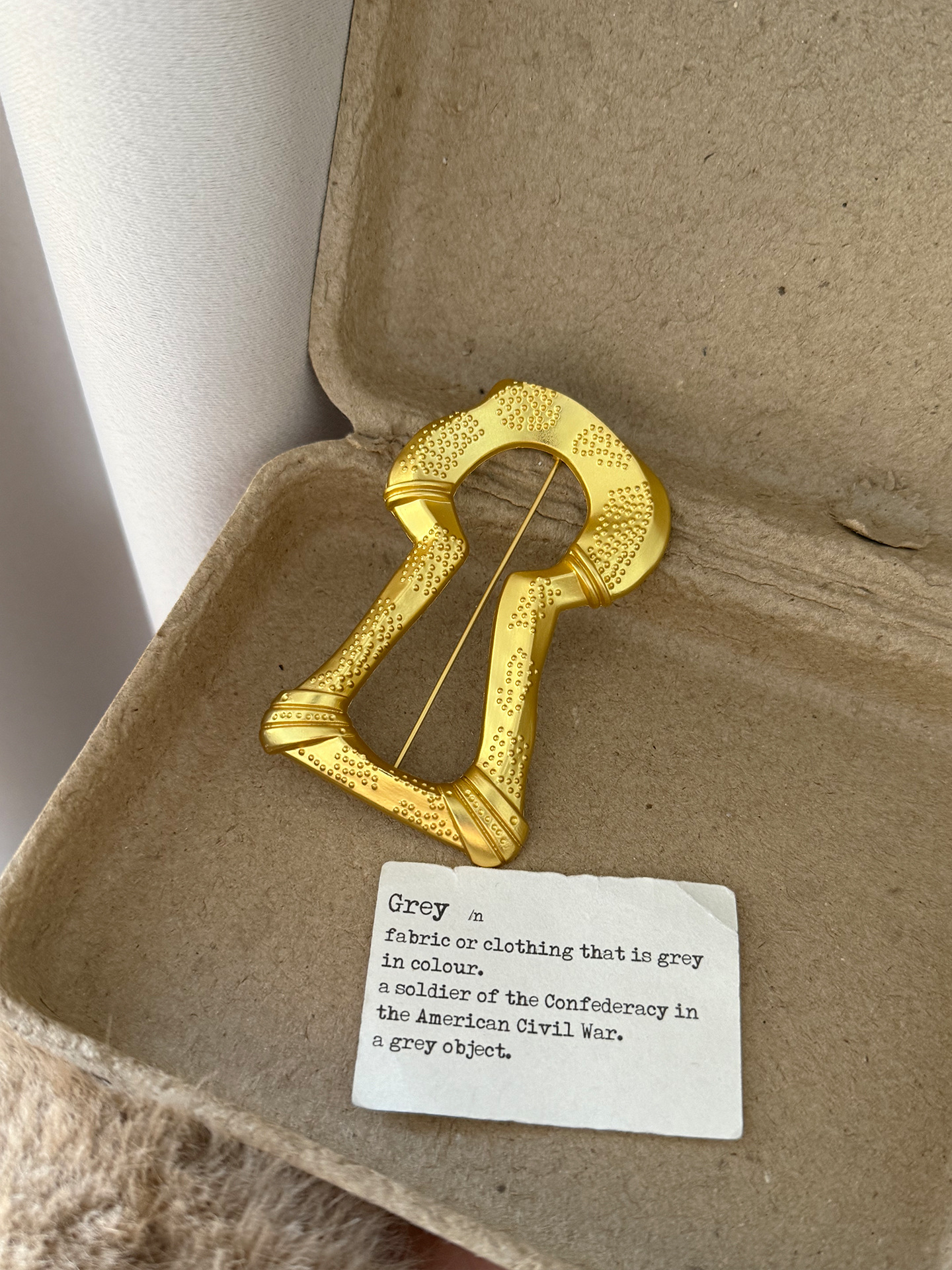 gold big keyhole brooch xz0100, gold keyhole square