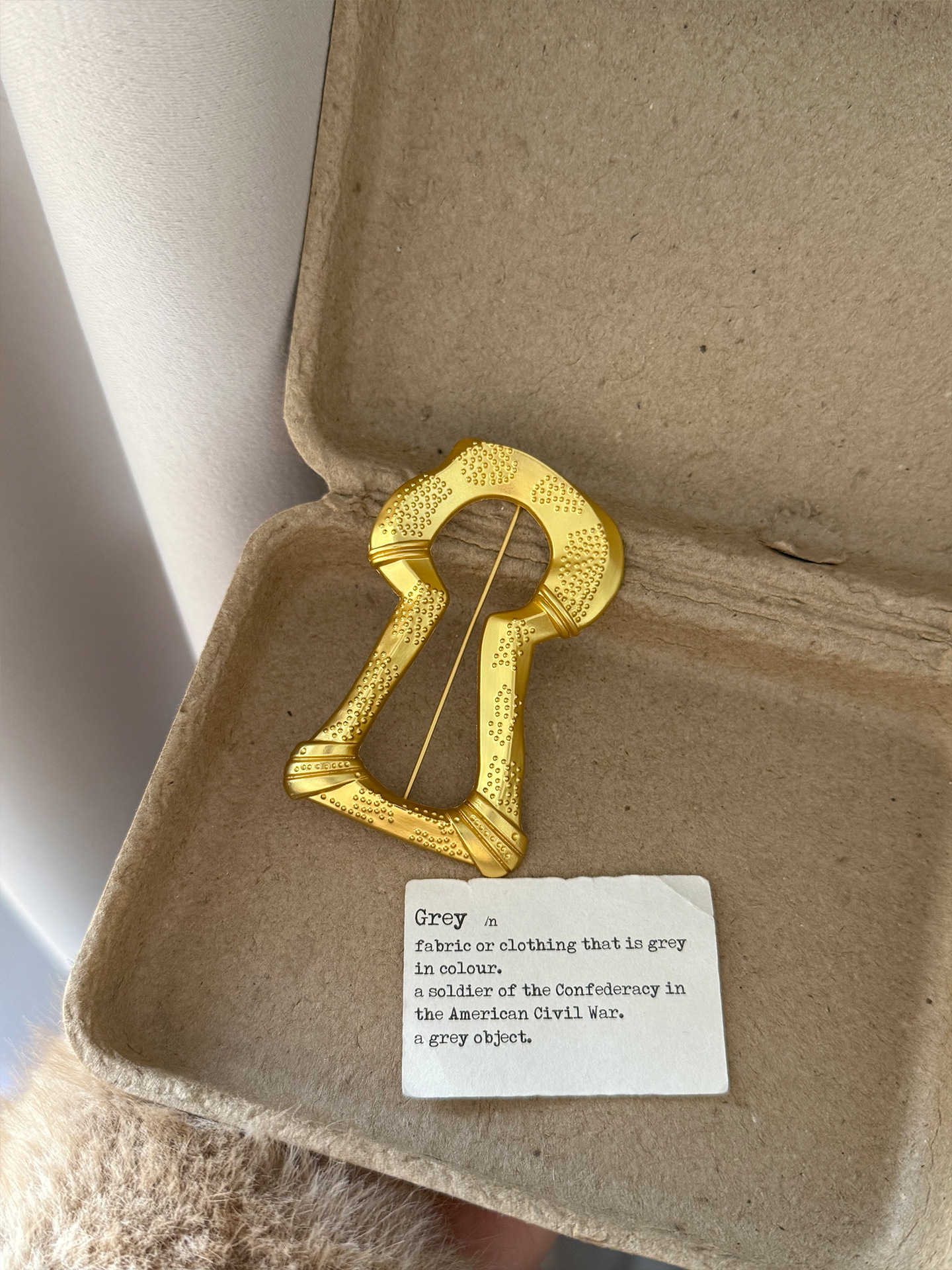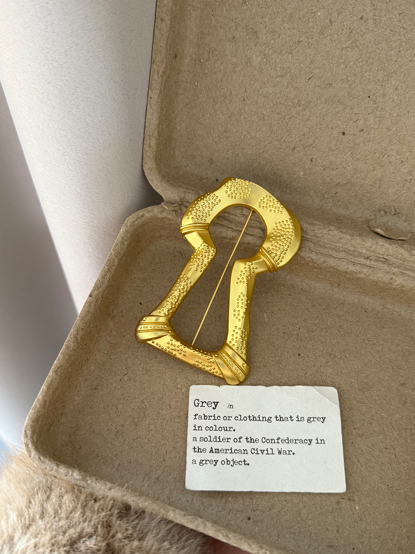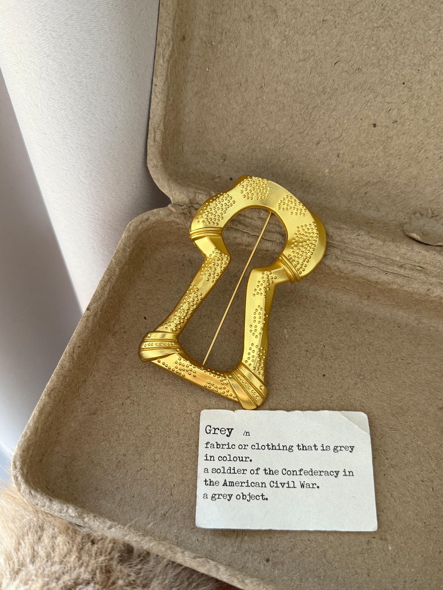 gold big keyhole brooch xz0100, gold keyhole square