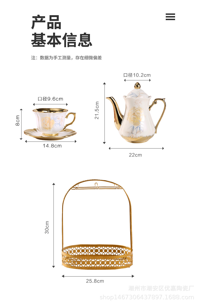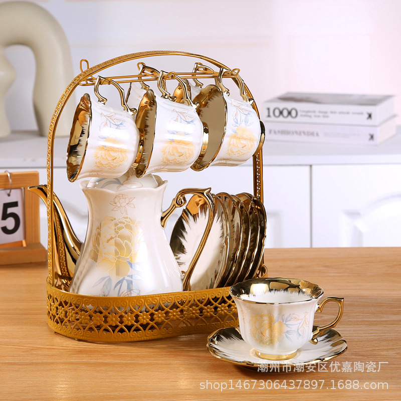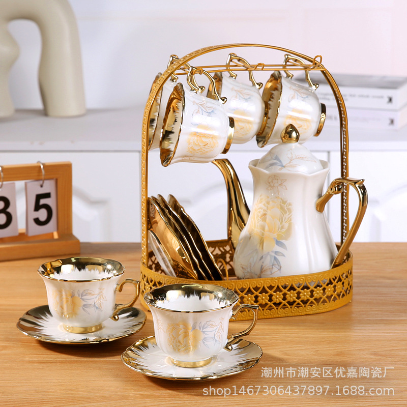 Product Name: 13-Piece Gold Edge Roasted Flower Coffee Set