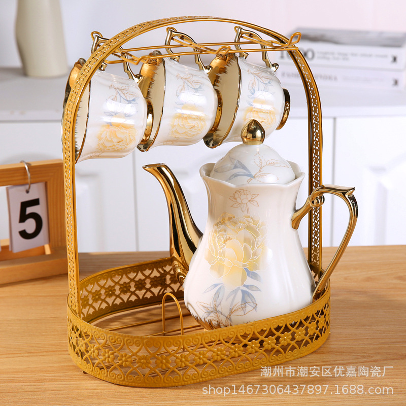 Set: 1 kettle, 6 cups, 6 plates, 1 stand