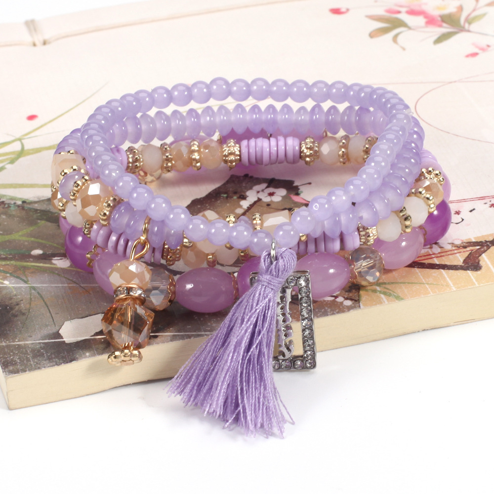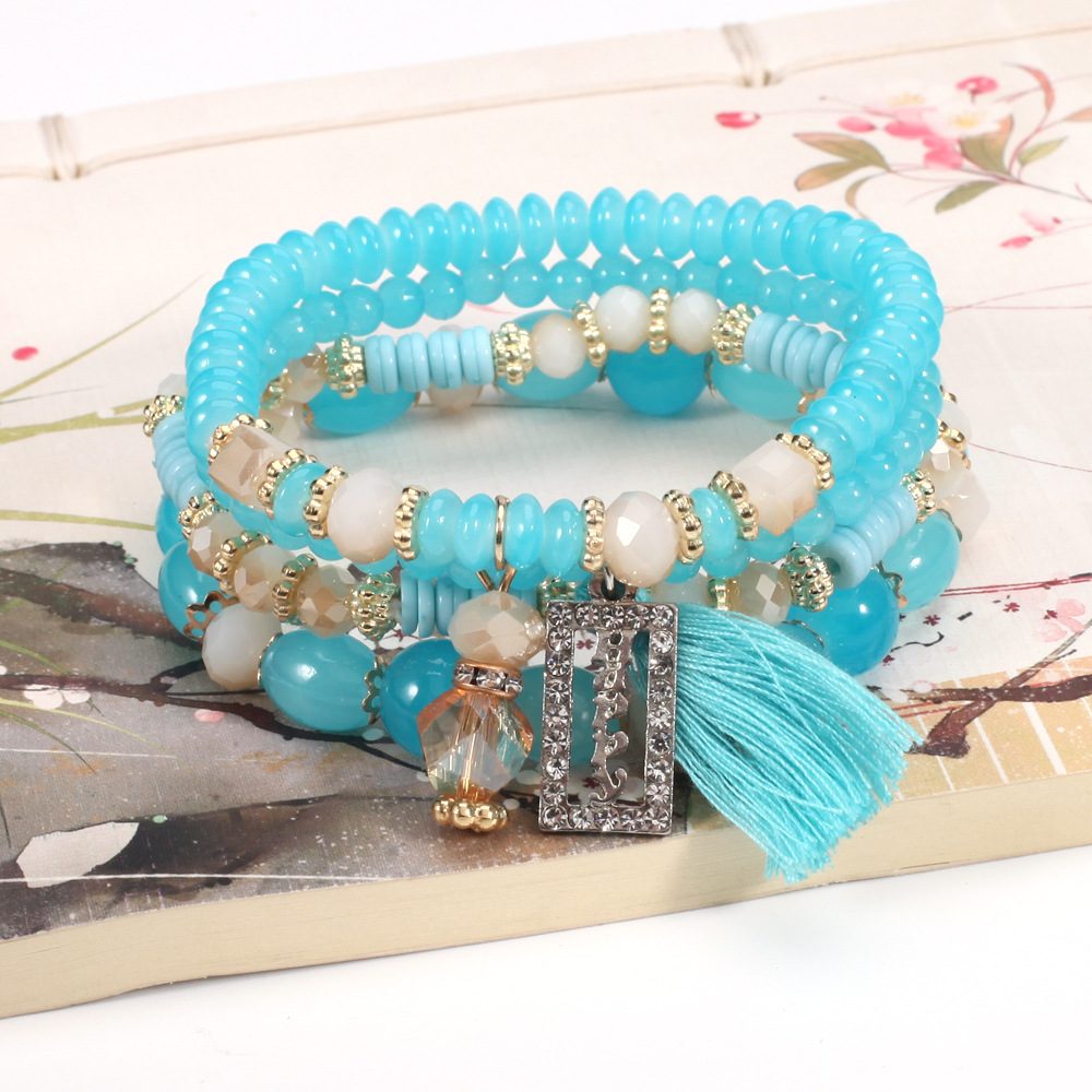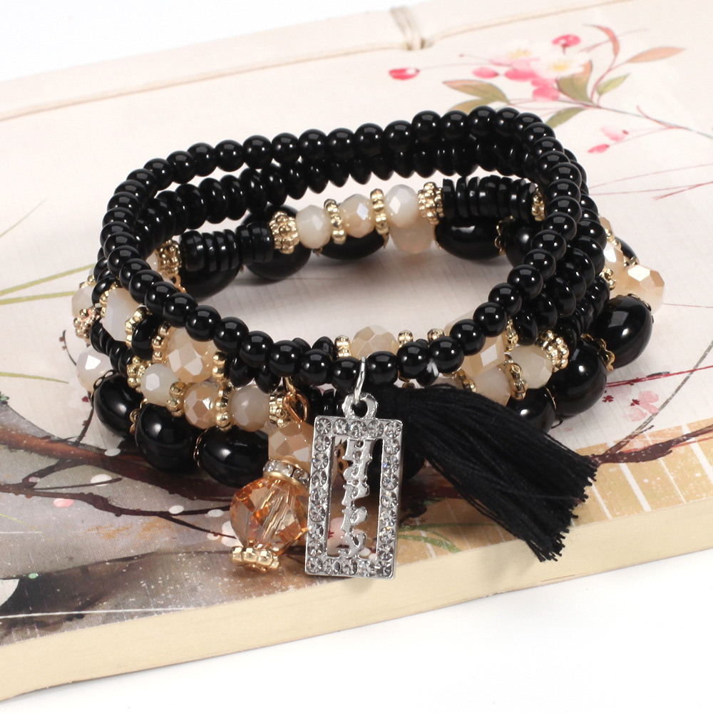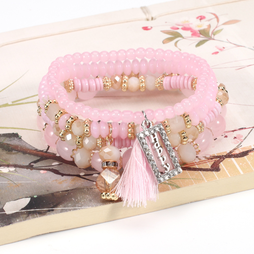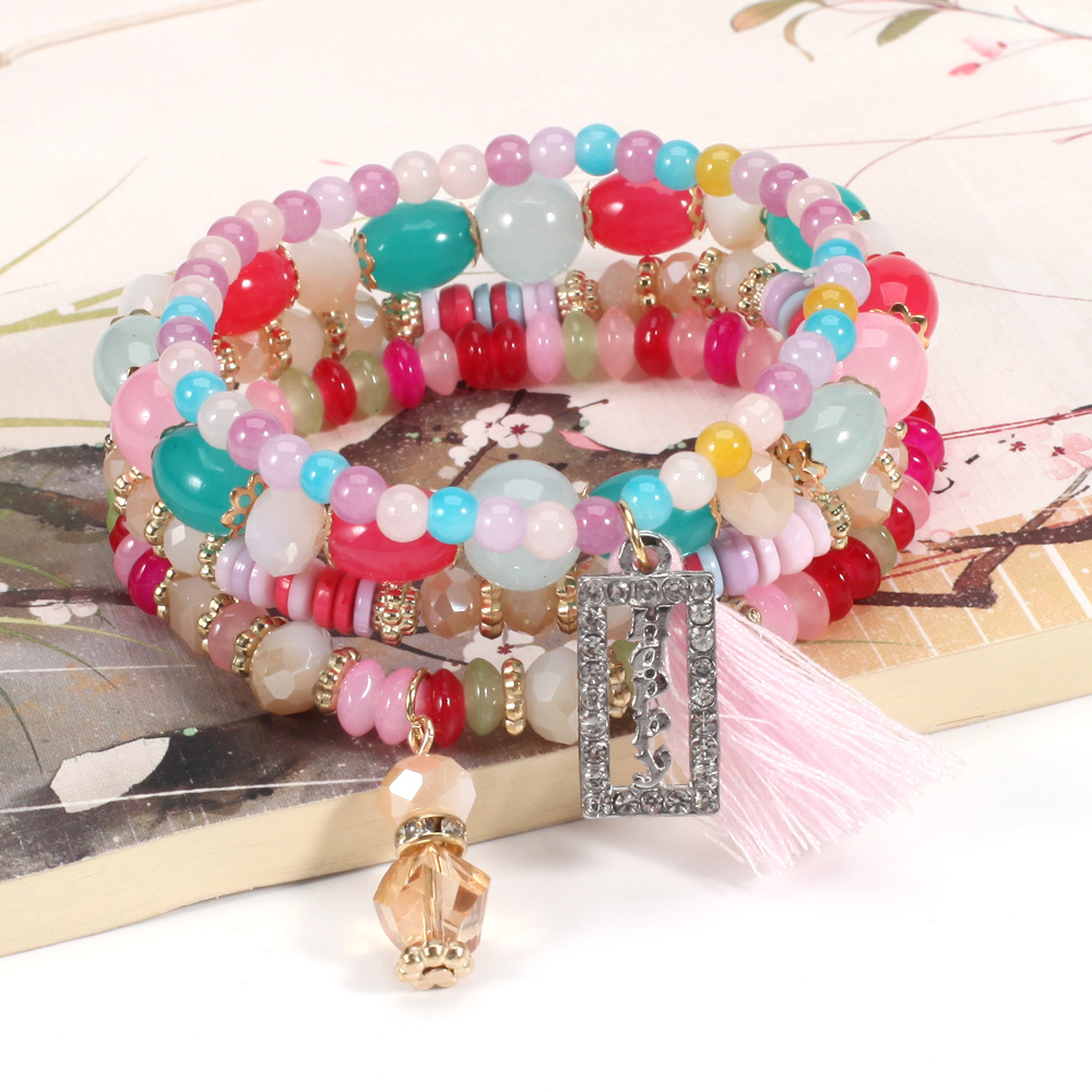 Bohemian HAPPY tassel crystal pendant multi-layer bracelet wholesale New retro beaded bracelet