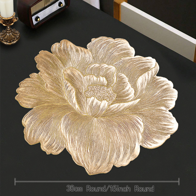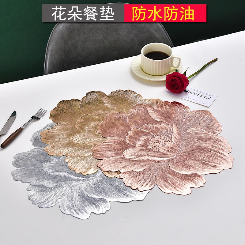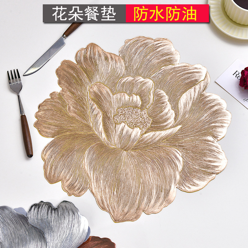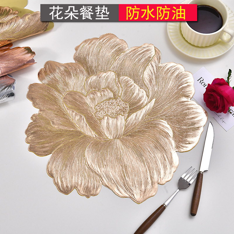 cross-border light luxury bronzing pvc waterproof western-style placemat flower nordic thermal shielded table mat oilproof and heatproof high-grade placemat