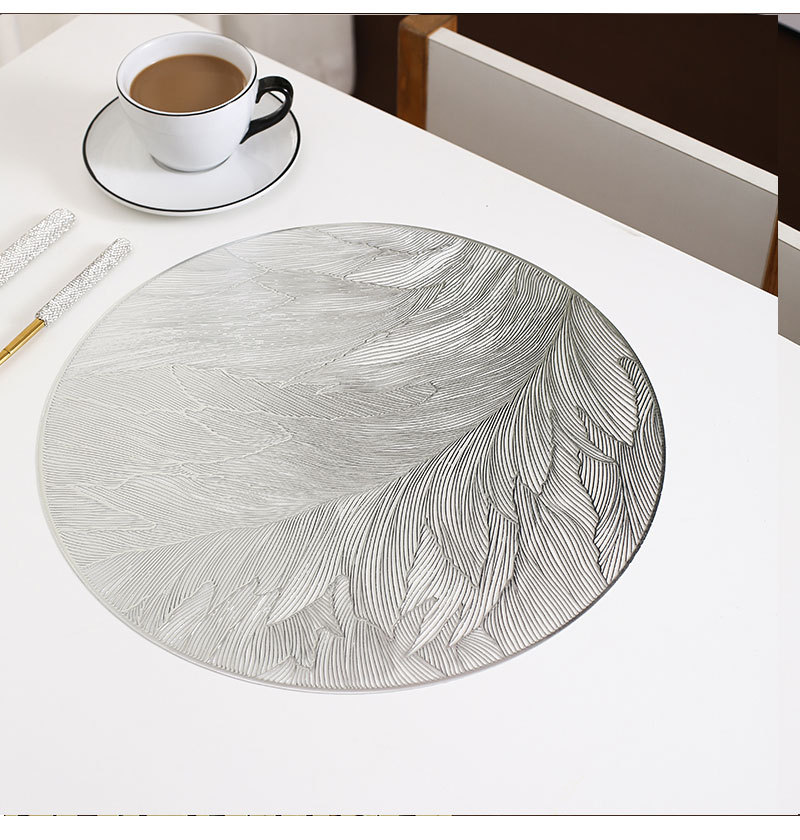 silver [feather] placemat, 38cm diameter