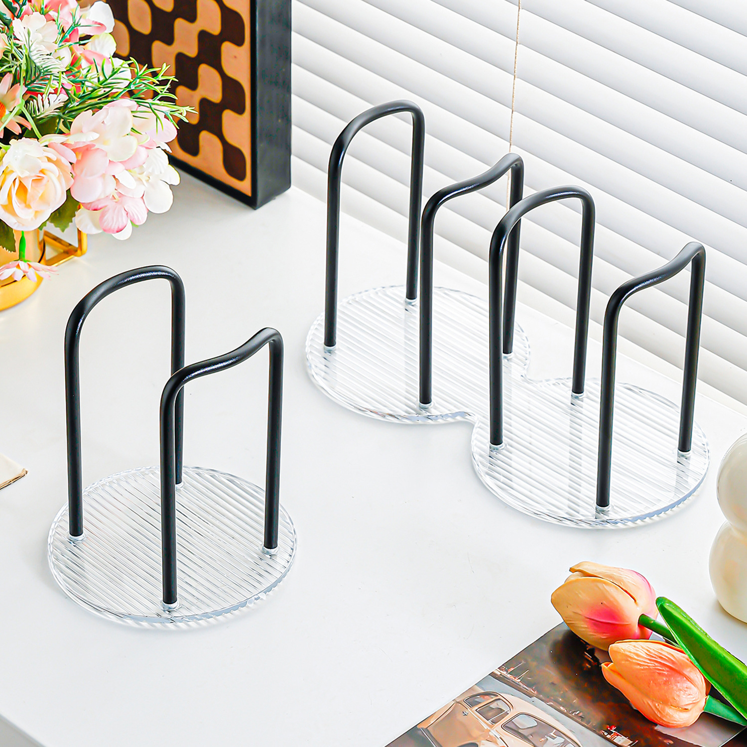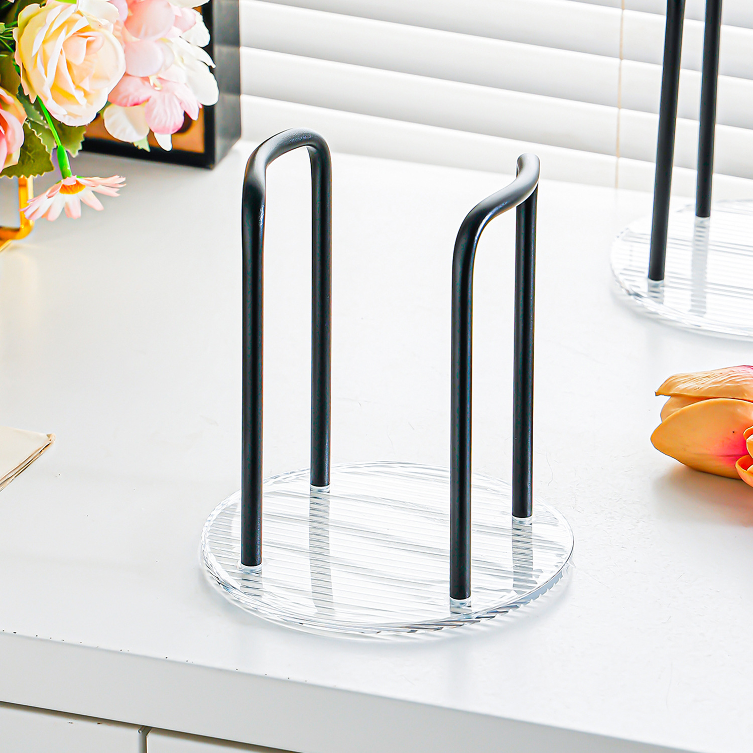 black single-seat striped cup holder