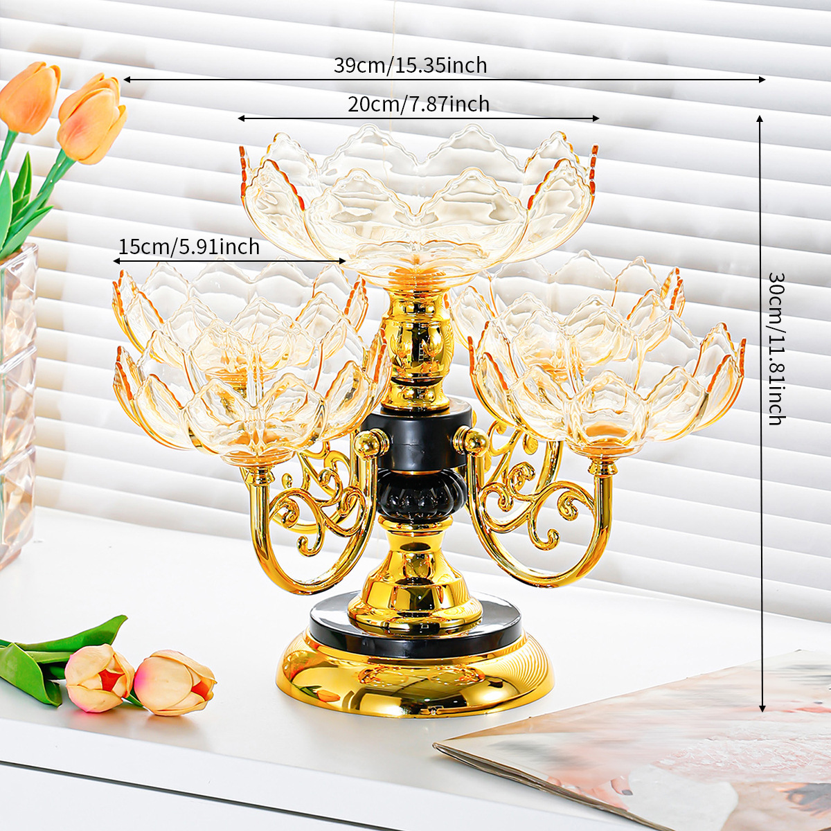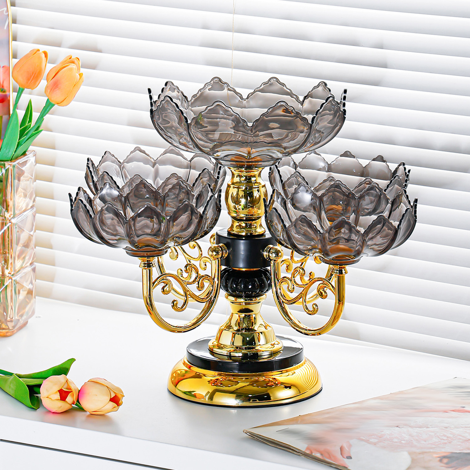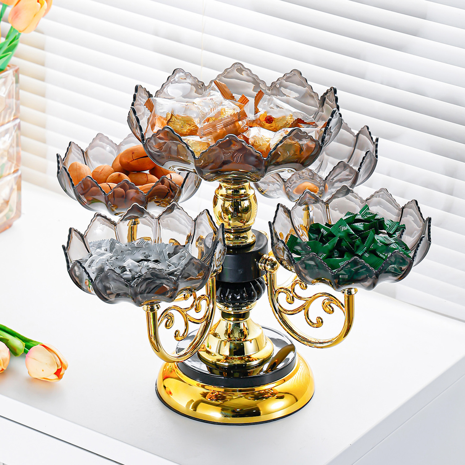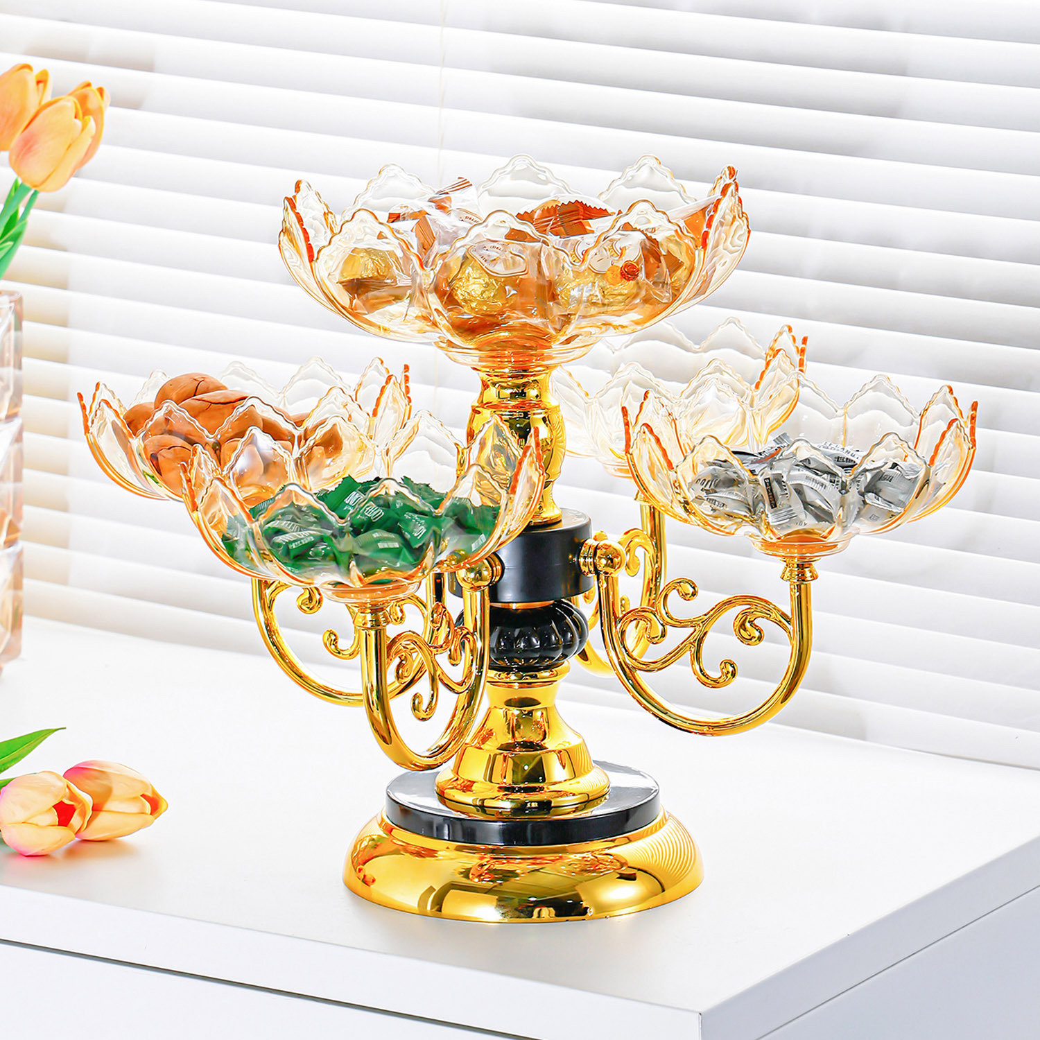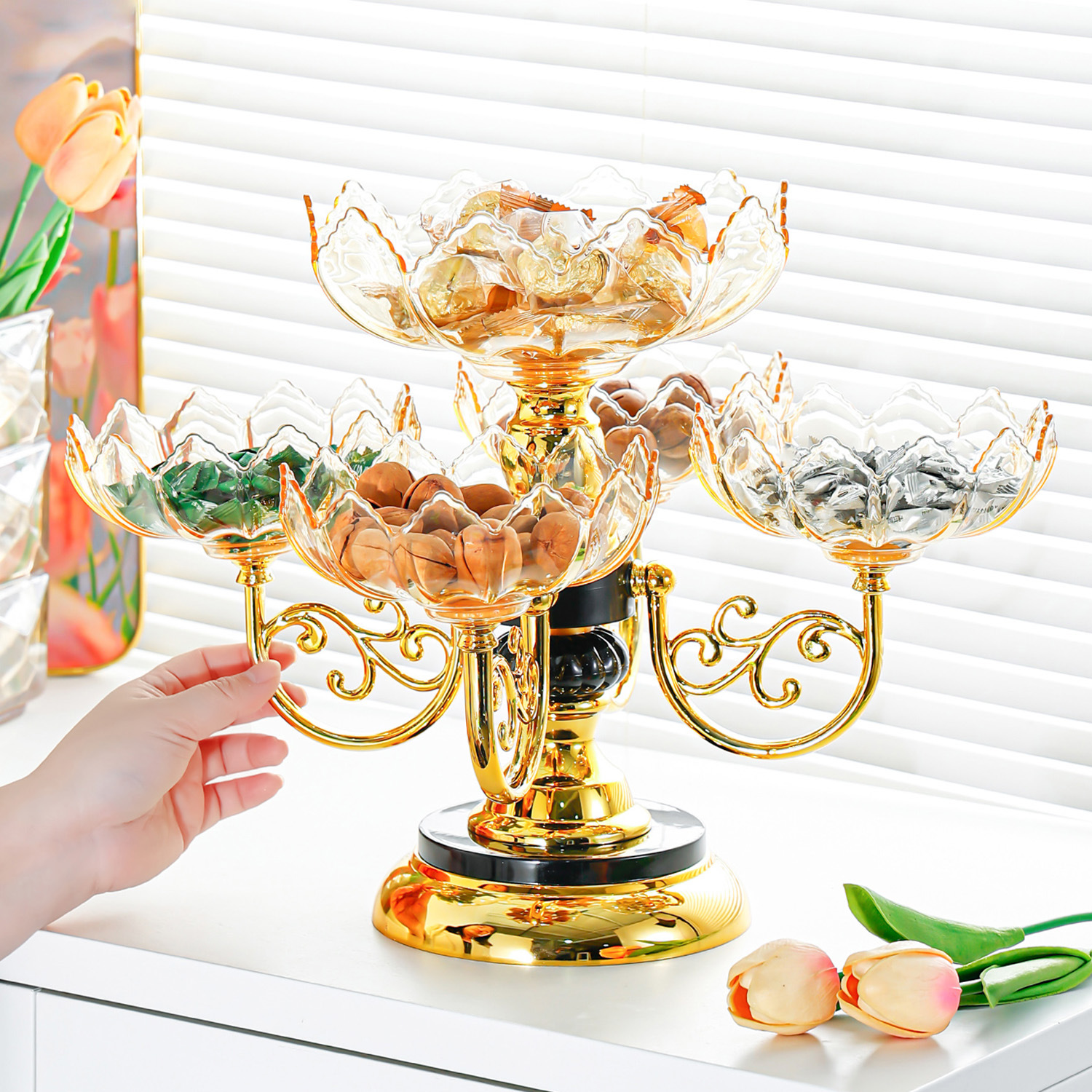 crystal yellow [luxury gold-plated, rotatable] five-compartment tray