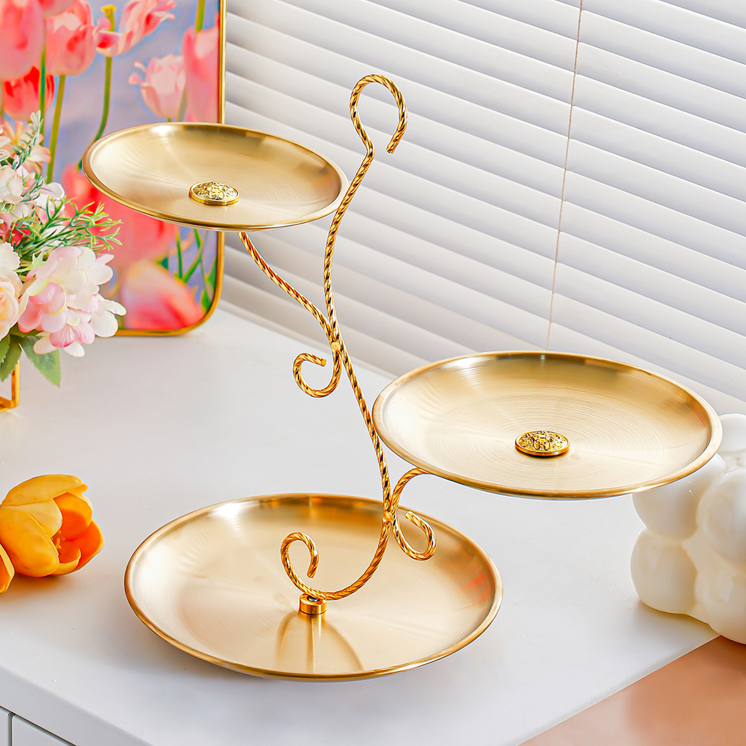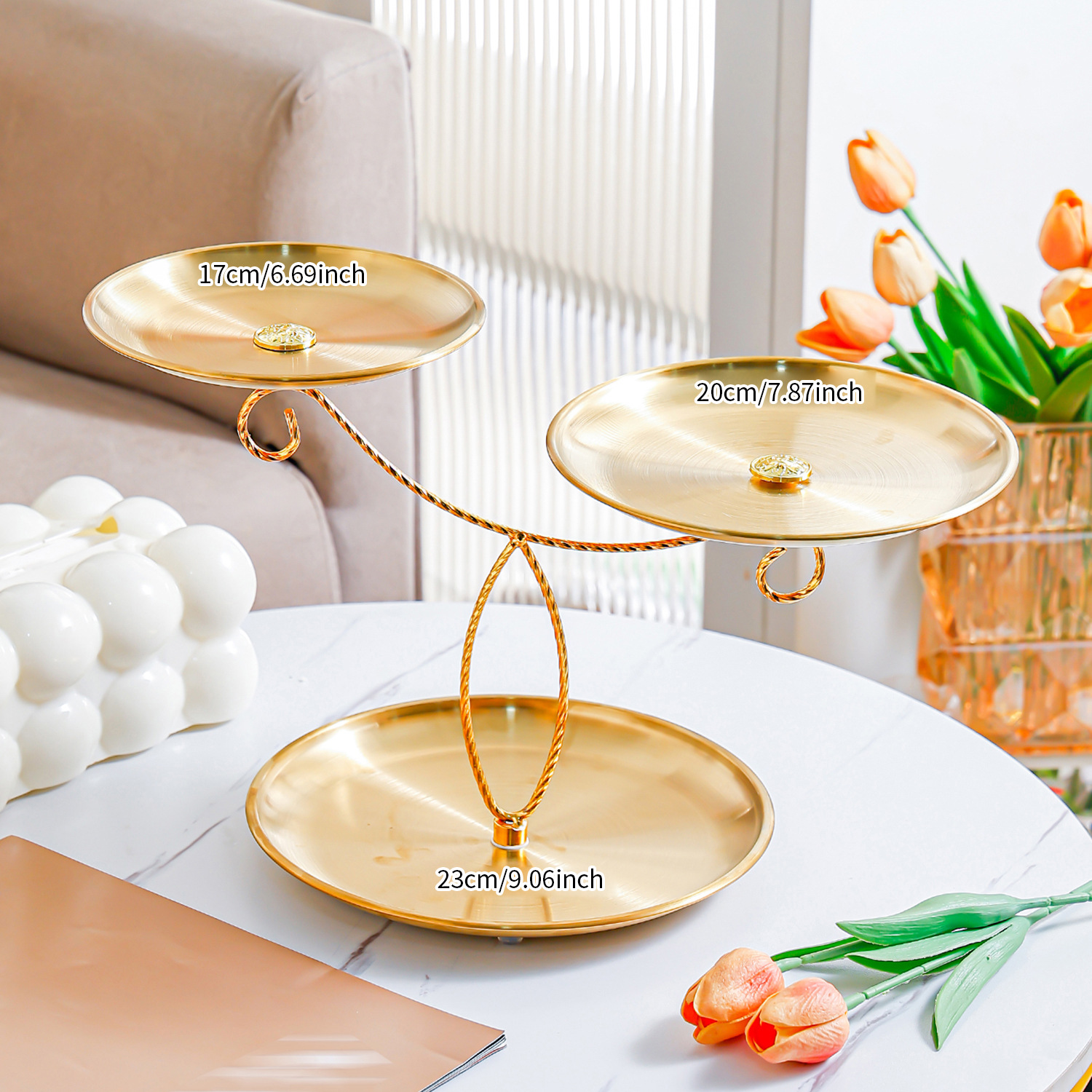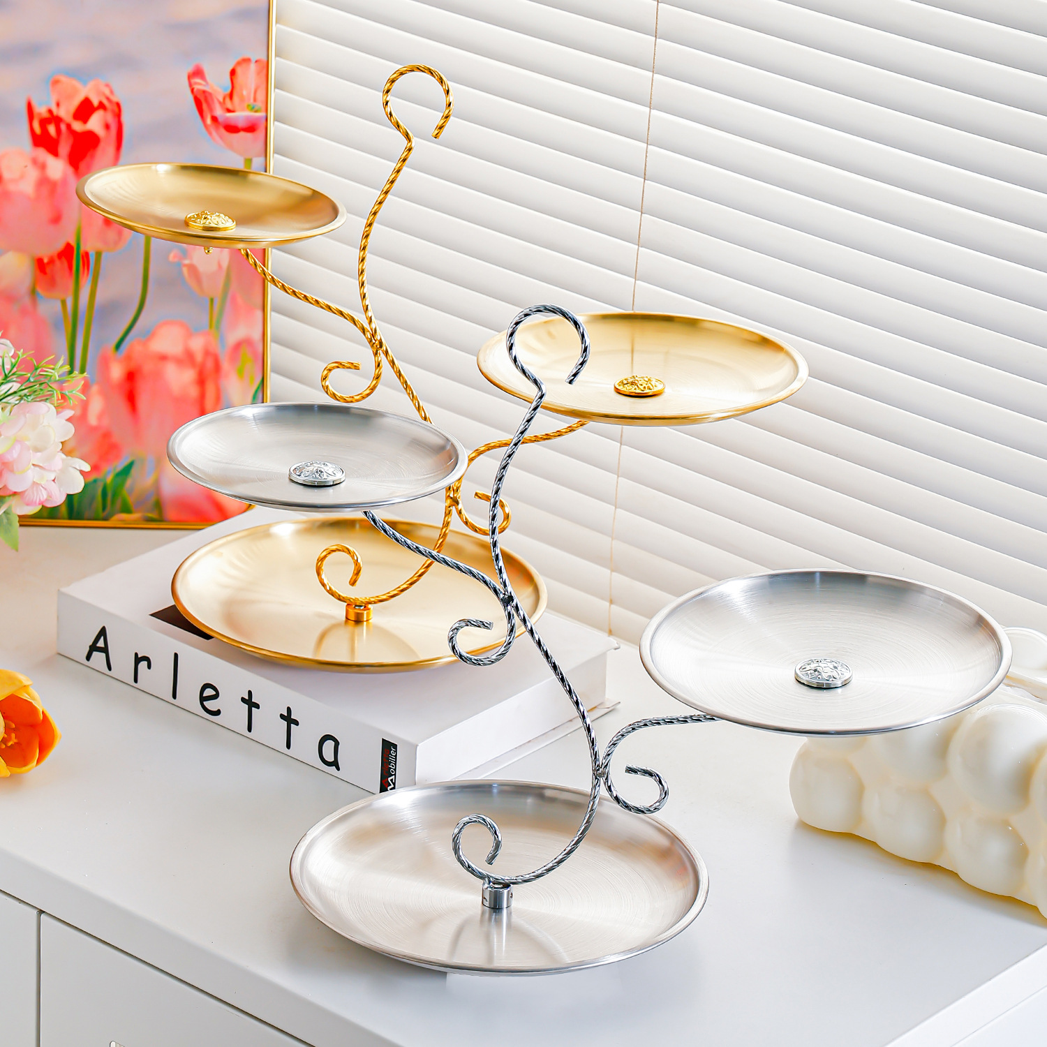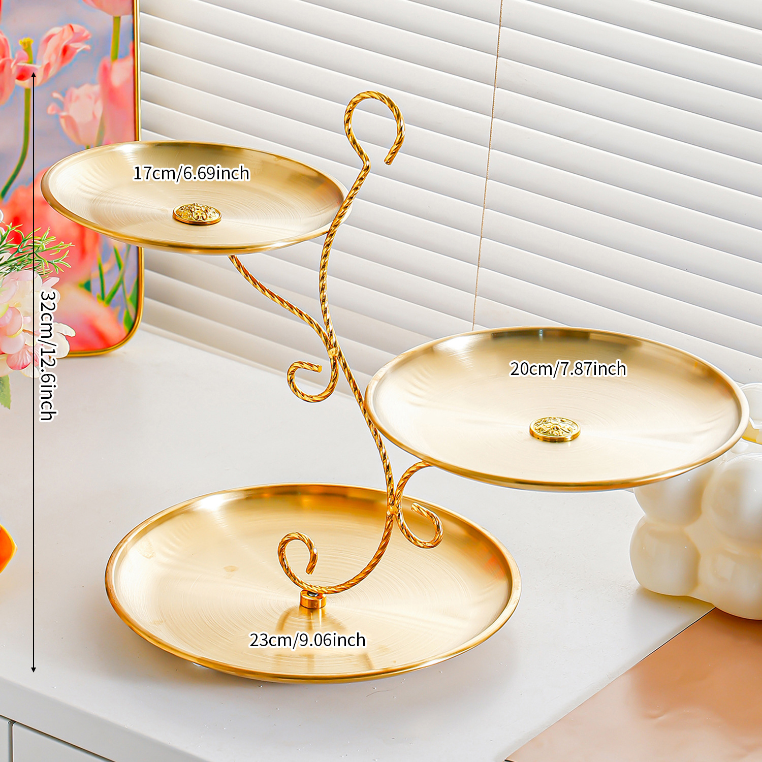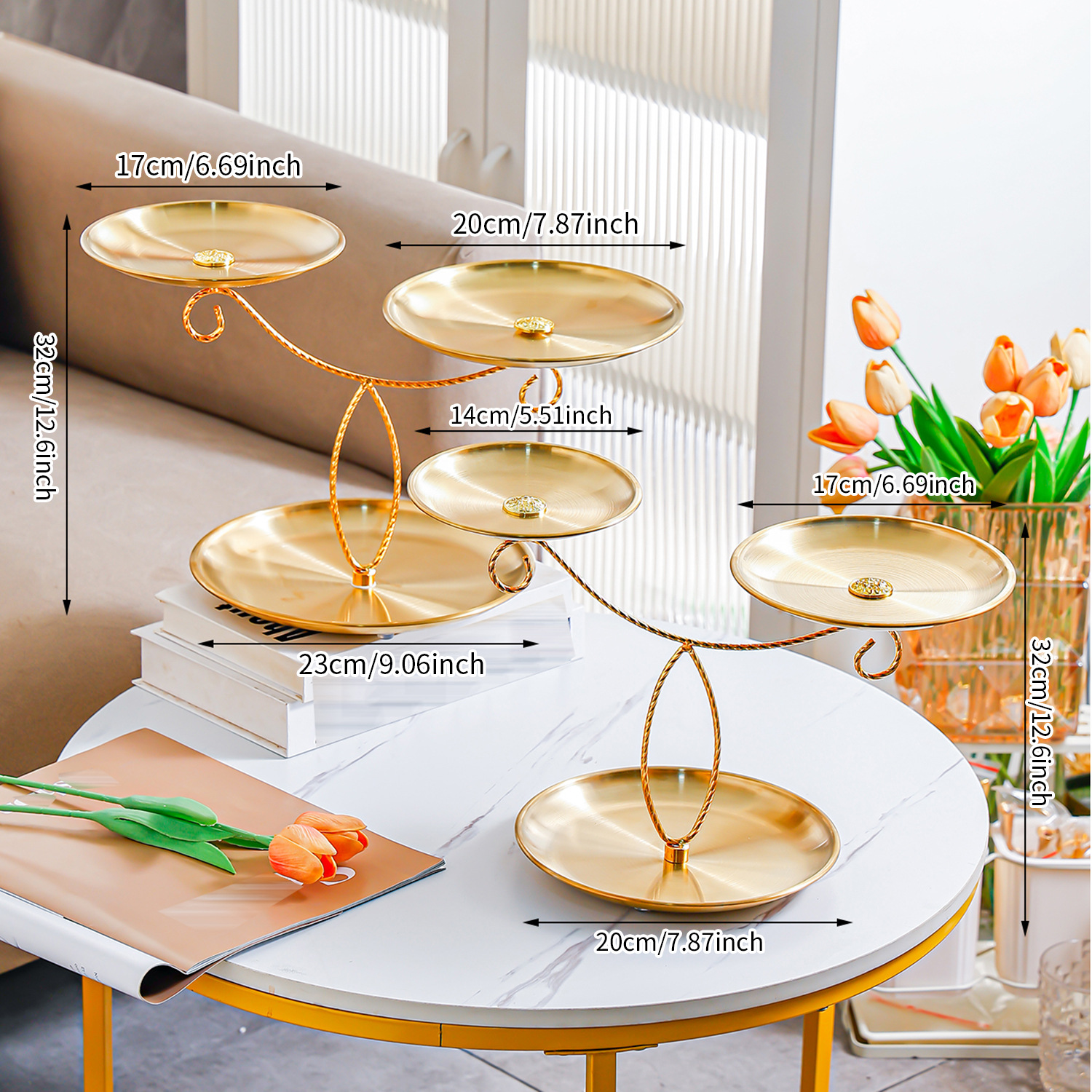 golden stainless steel plate 17+20+23 fruit plate + three-layer ballet