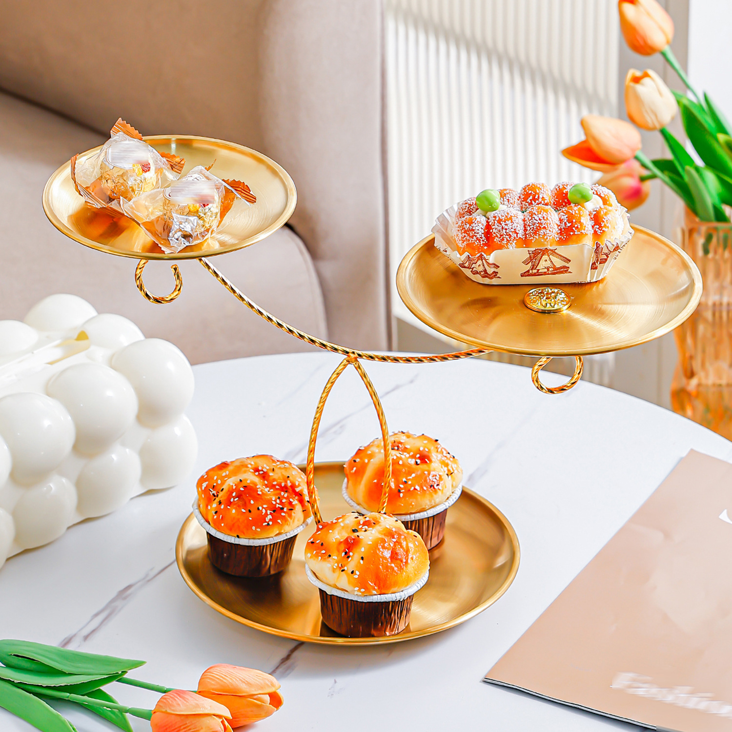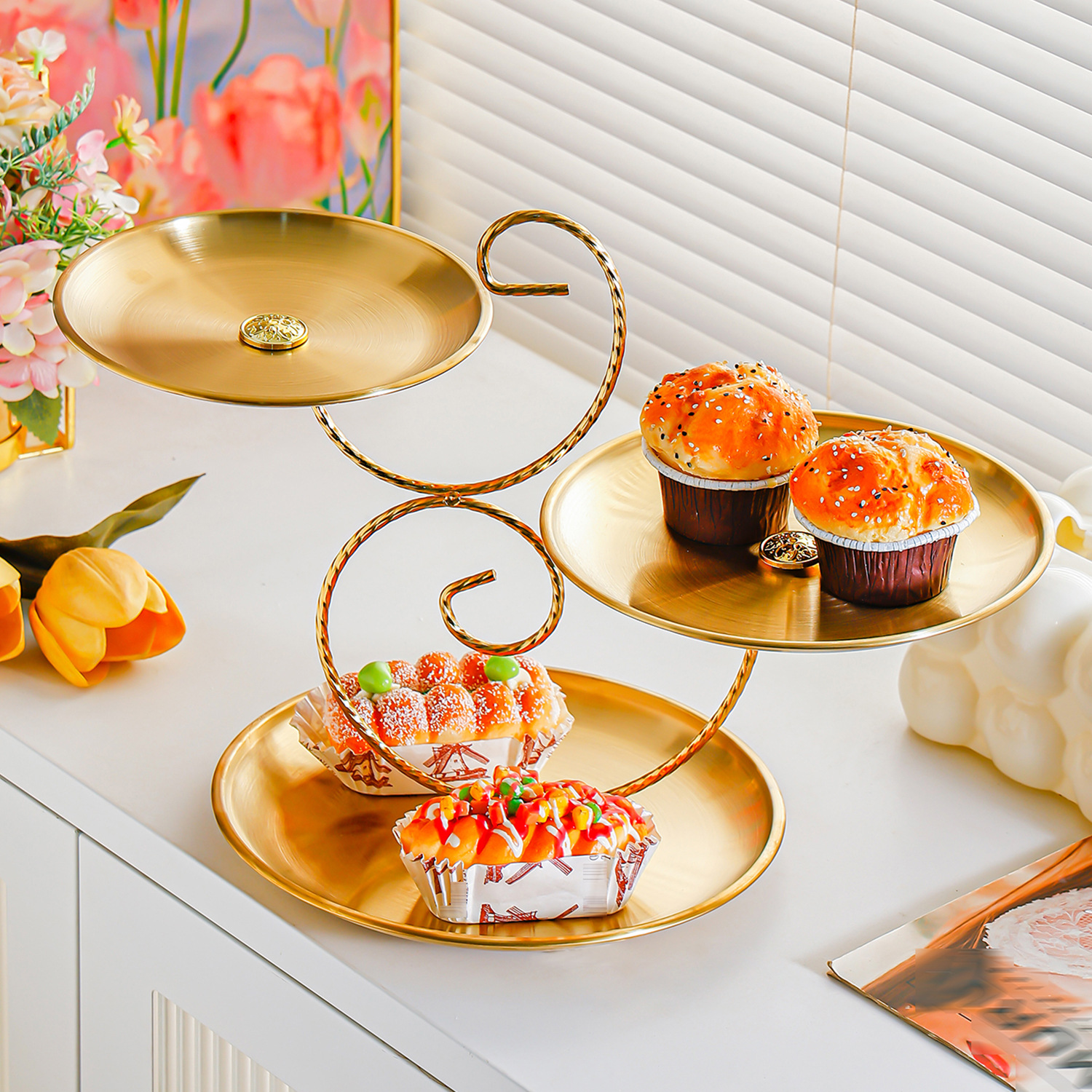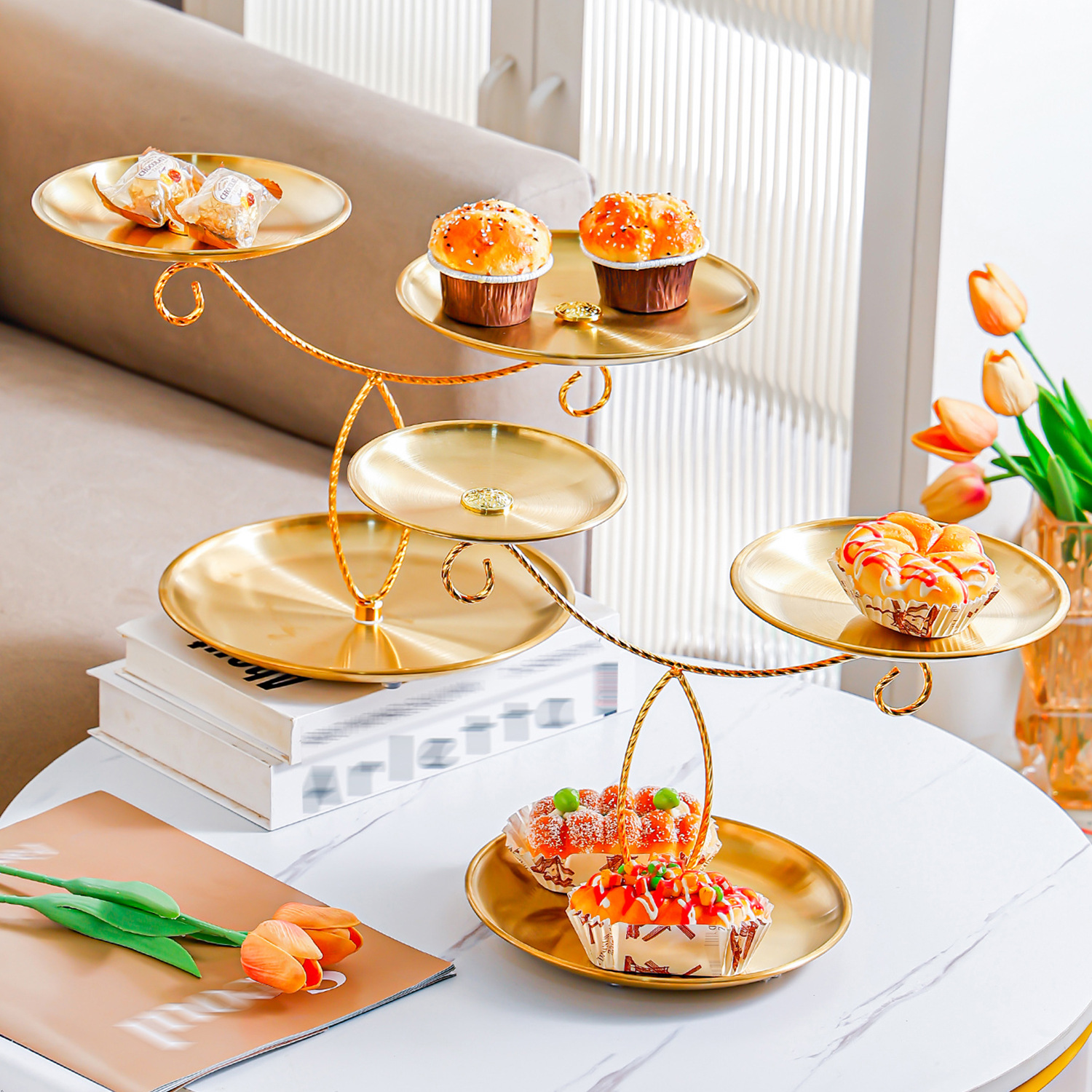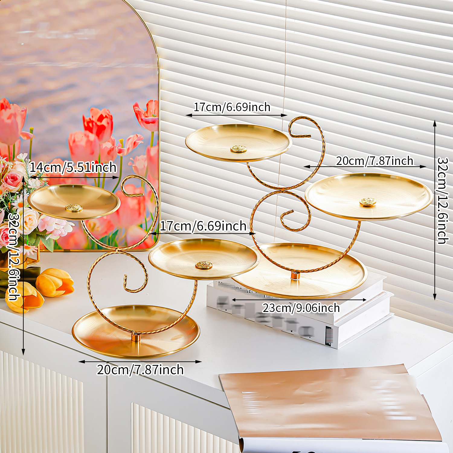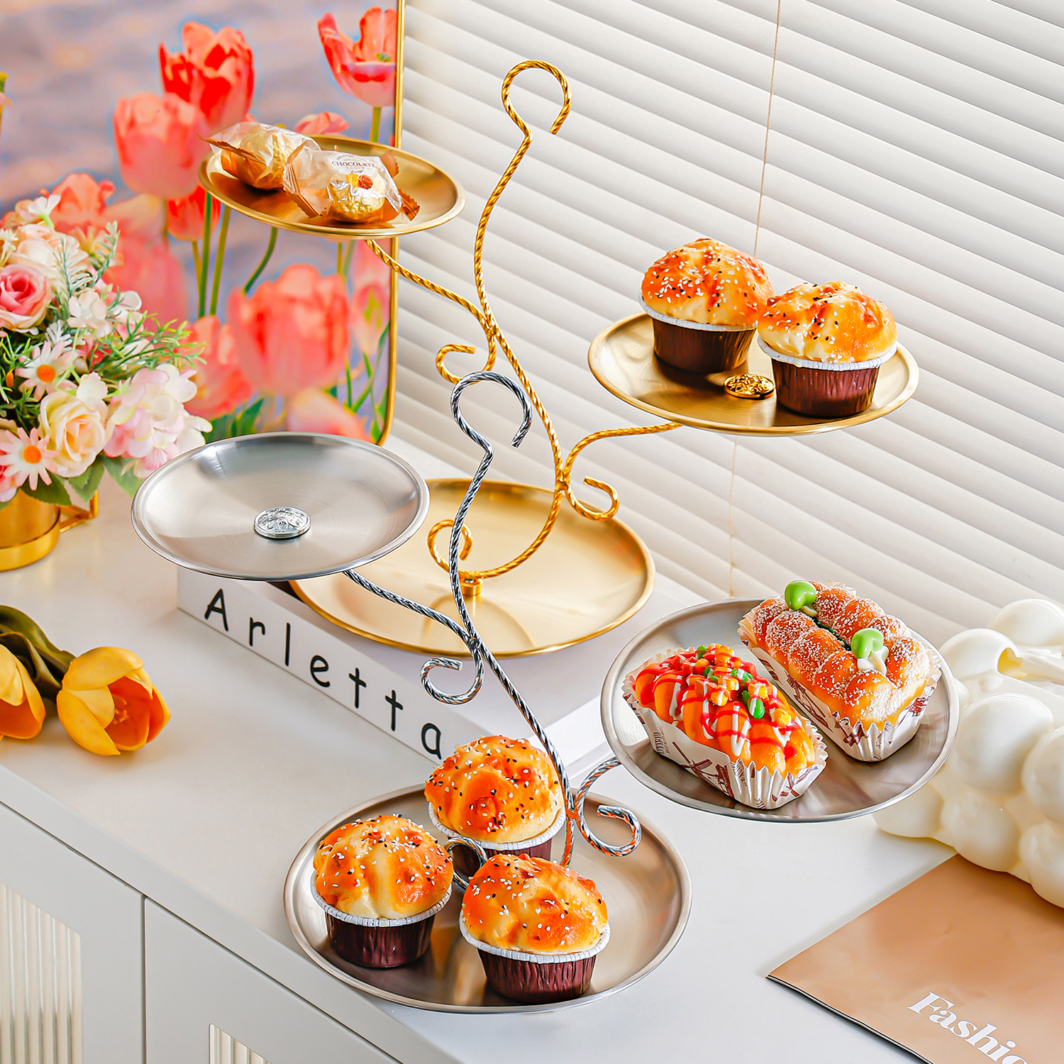 golden stainless steel plate 17+20+23 fruit plate + three-layer ballet