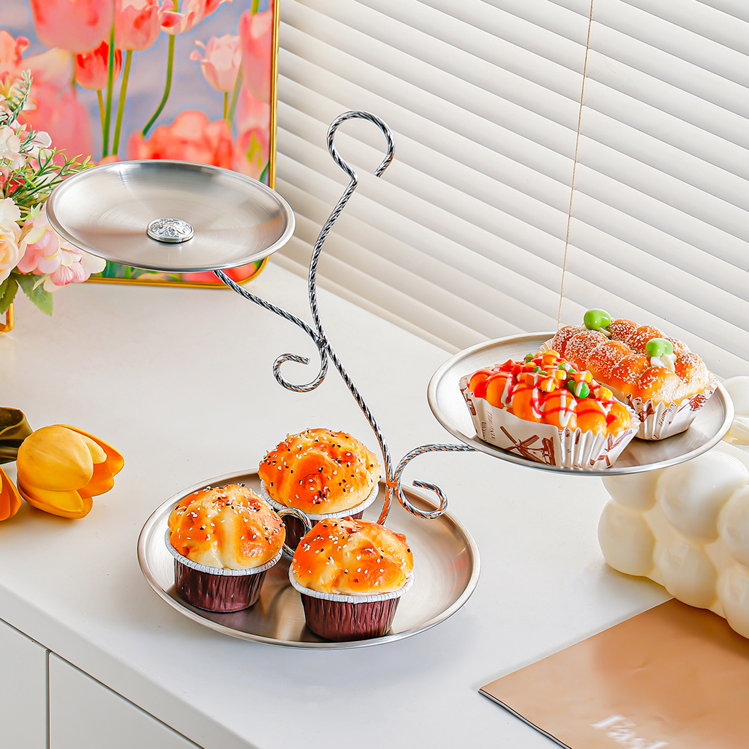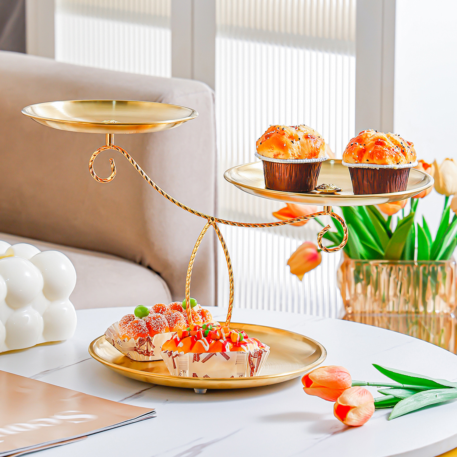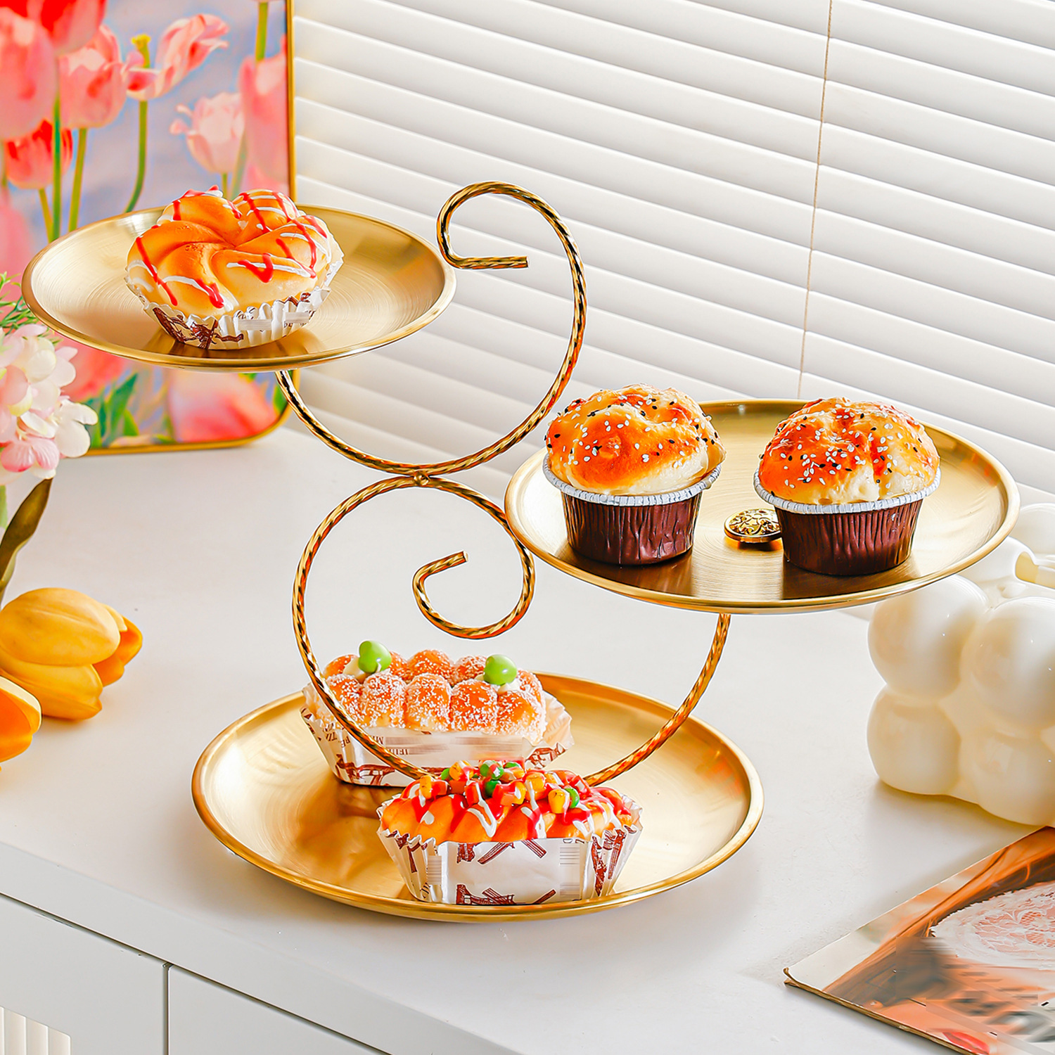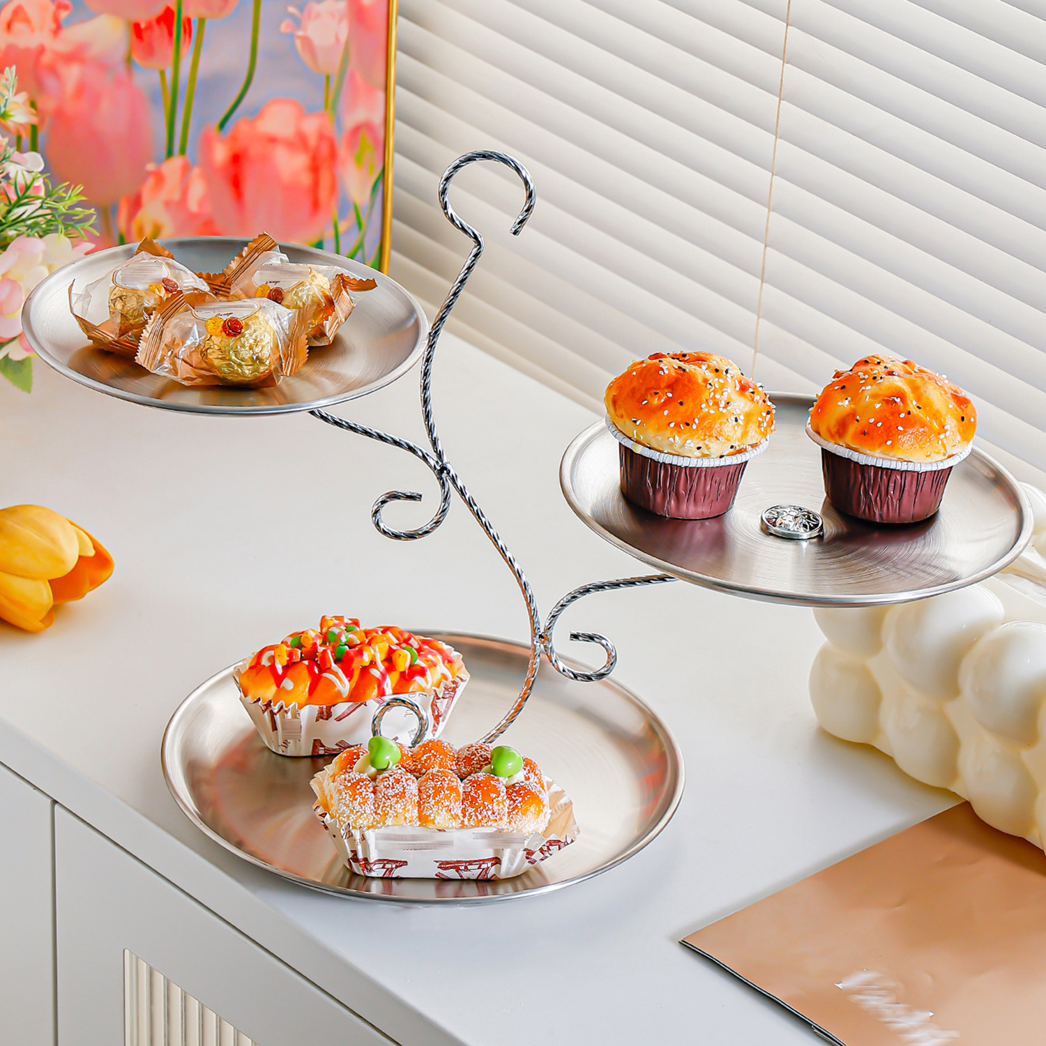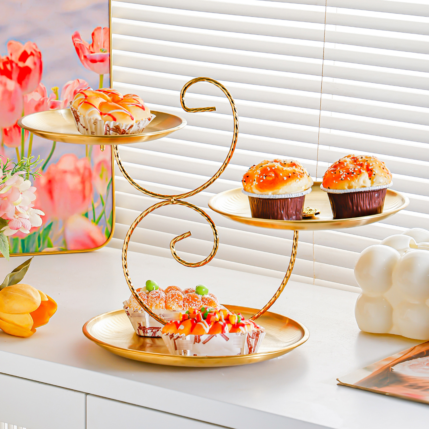 golden stainless steel plate 17+20+23 fruit plate + three-layer ballet