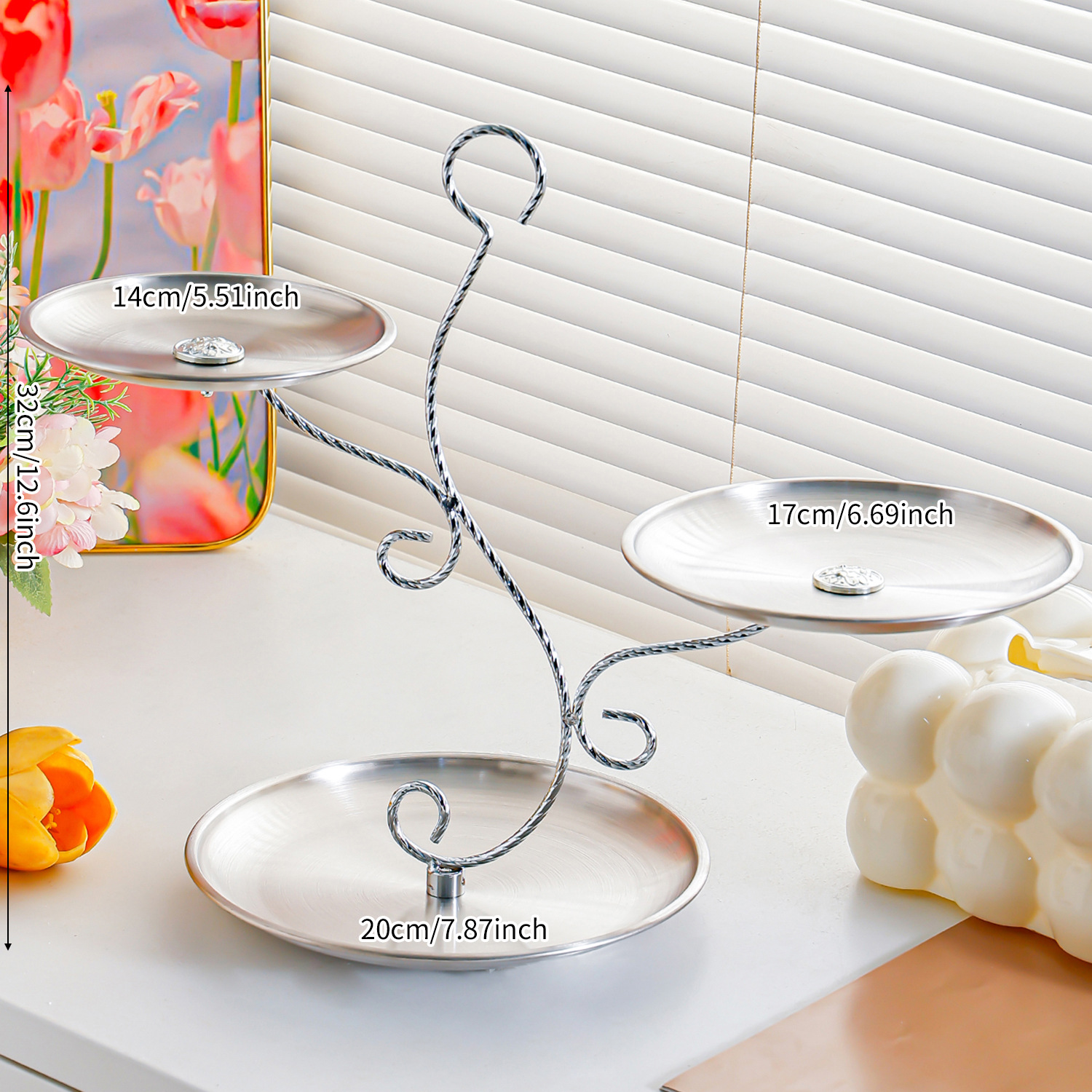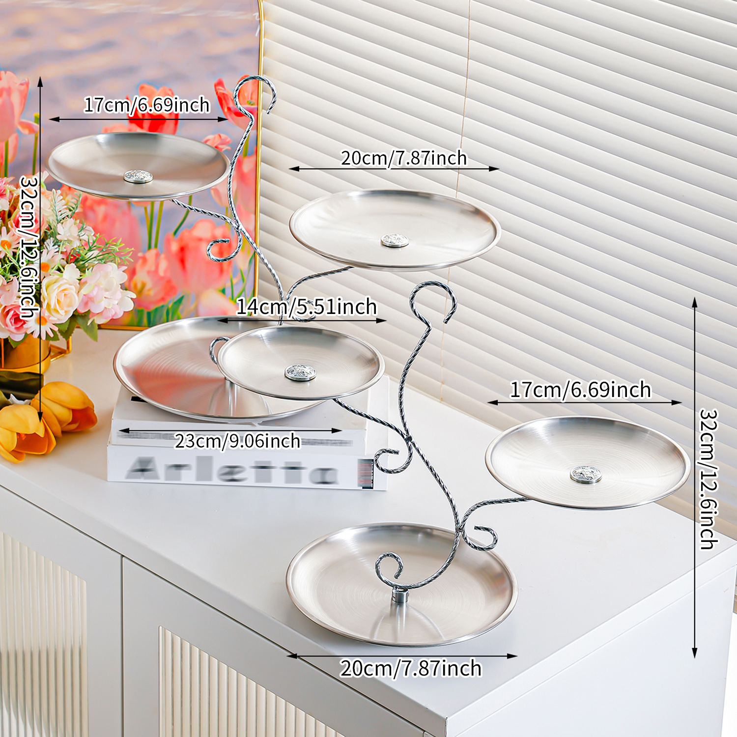 silver stainless steel plate 14+17+20 fruit plate + tree branch