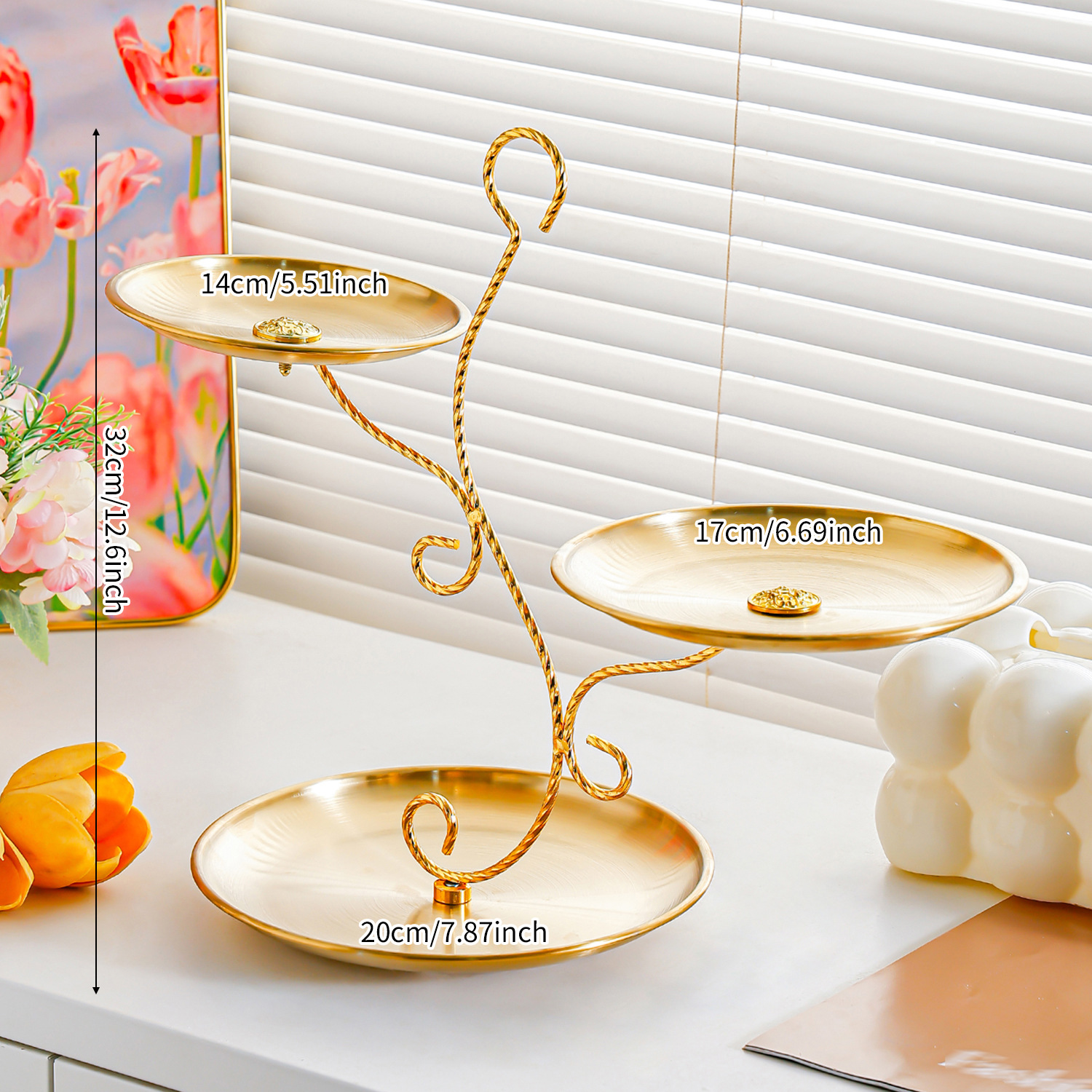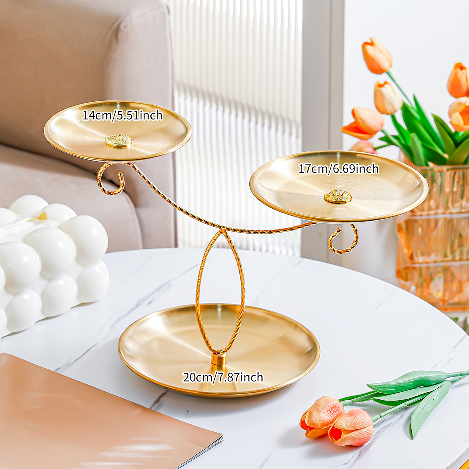 golden stainless steel plate 14+17+20 fruit plate + three-layer double hook