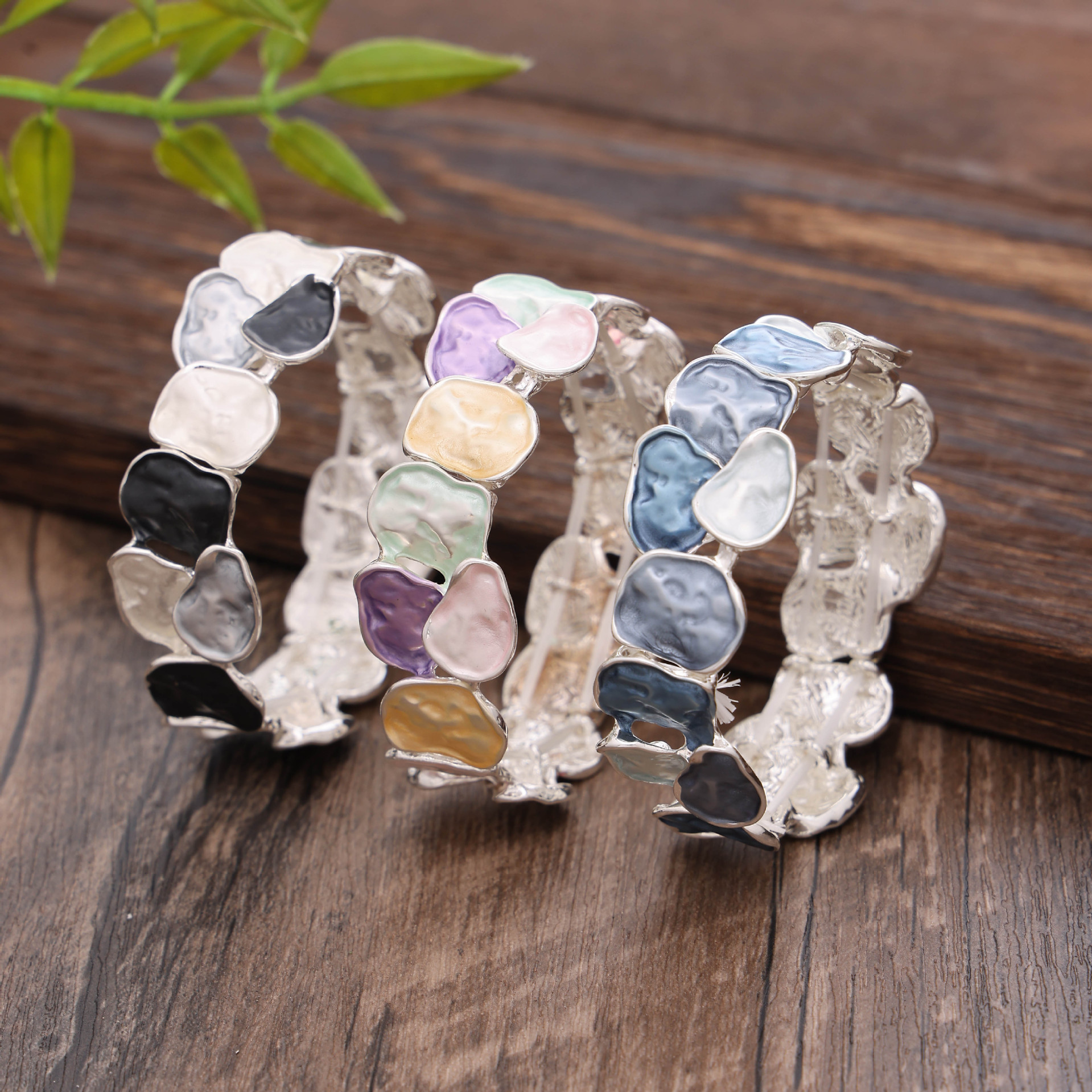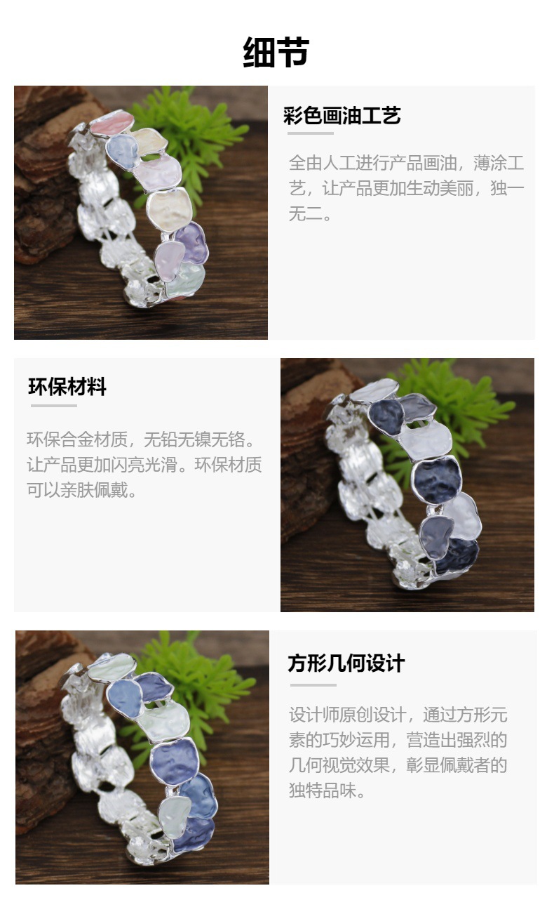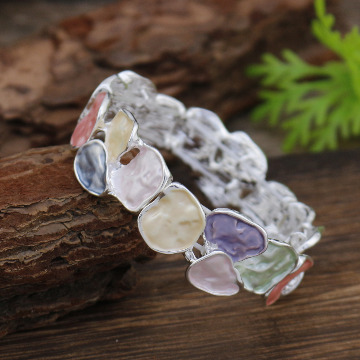 colorful geometric square bracelet-silver