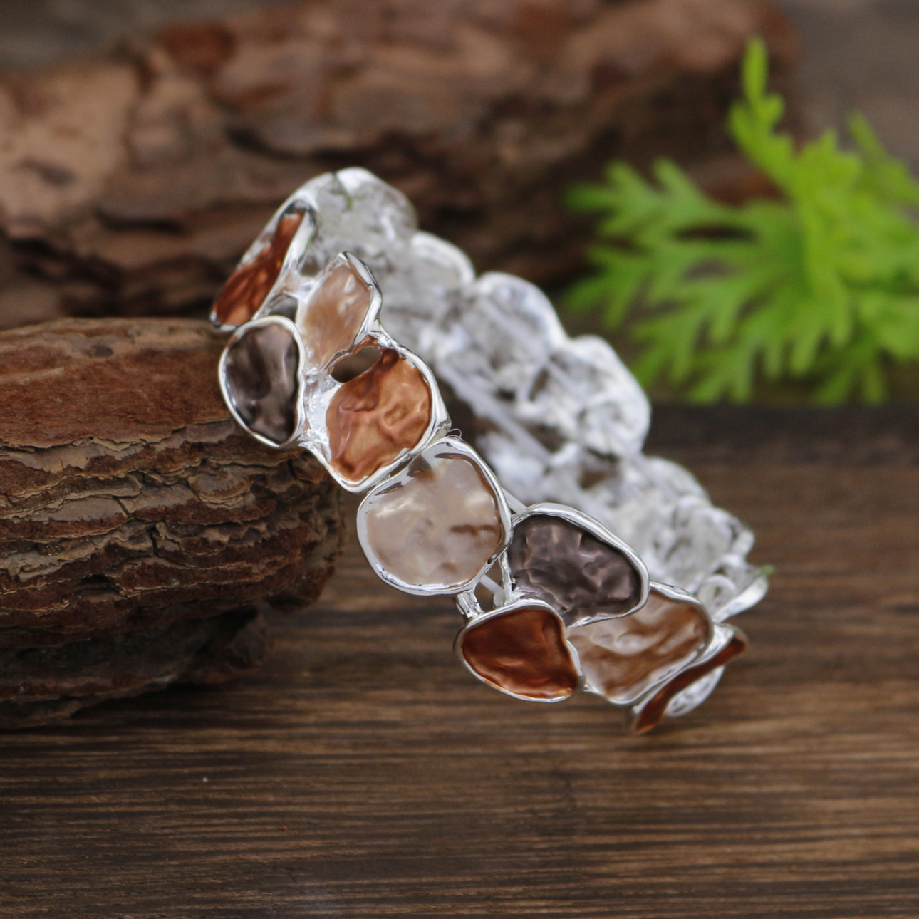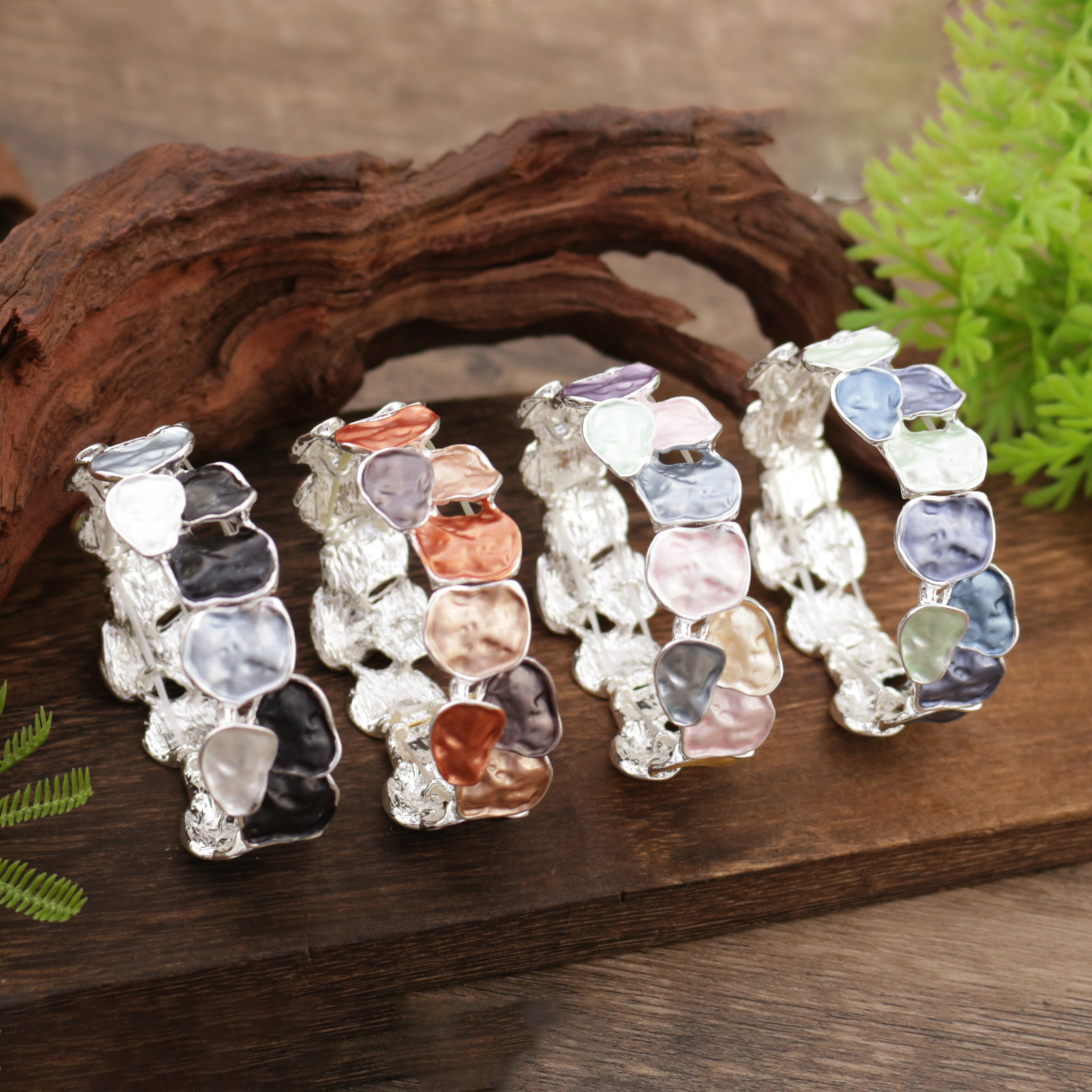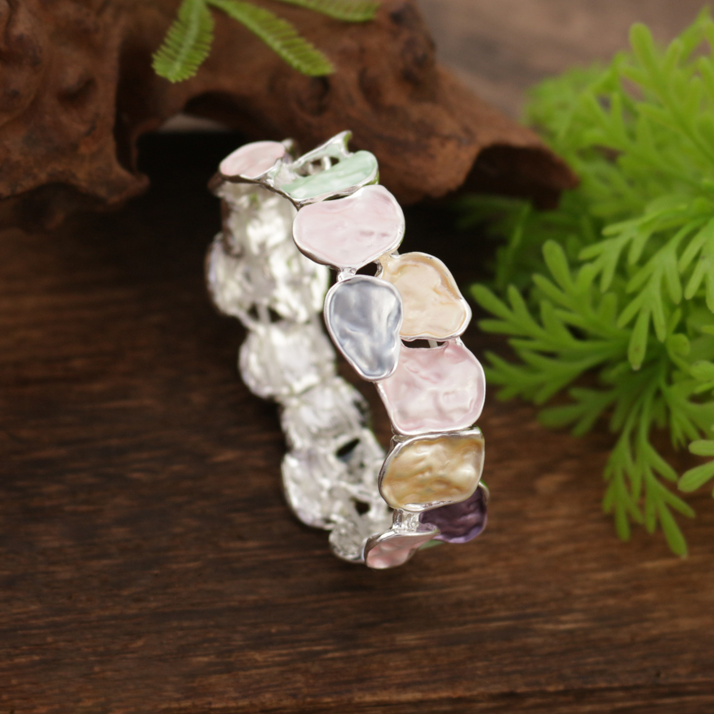 colorful geometric square bracelet-silver